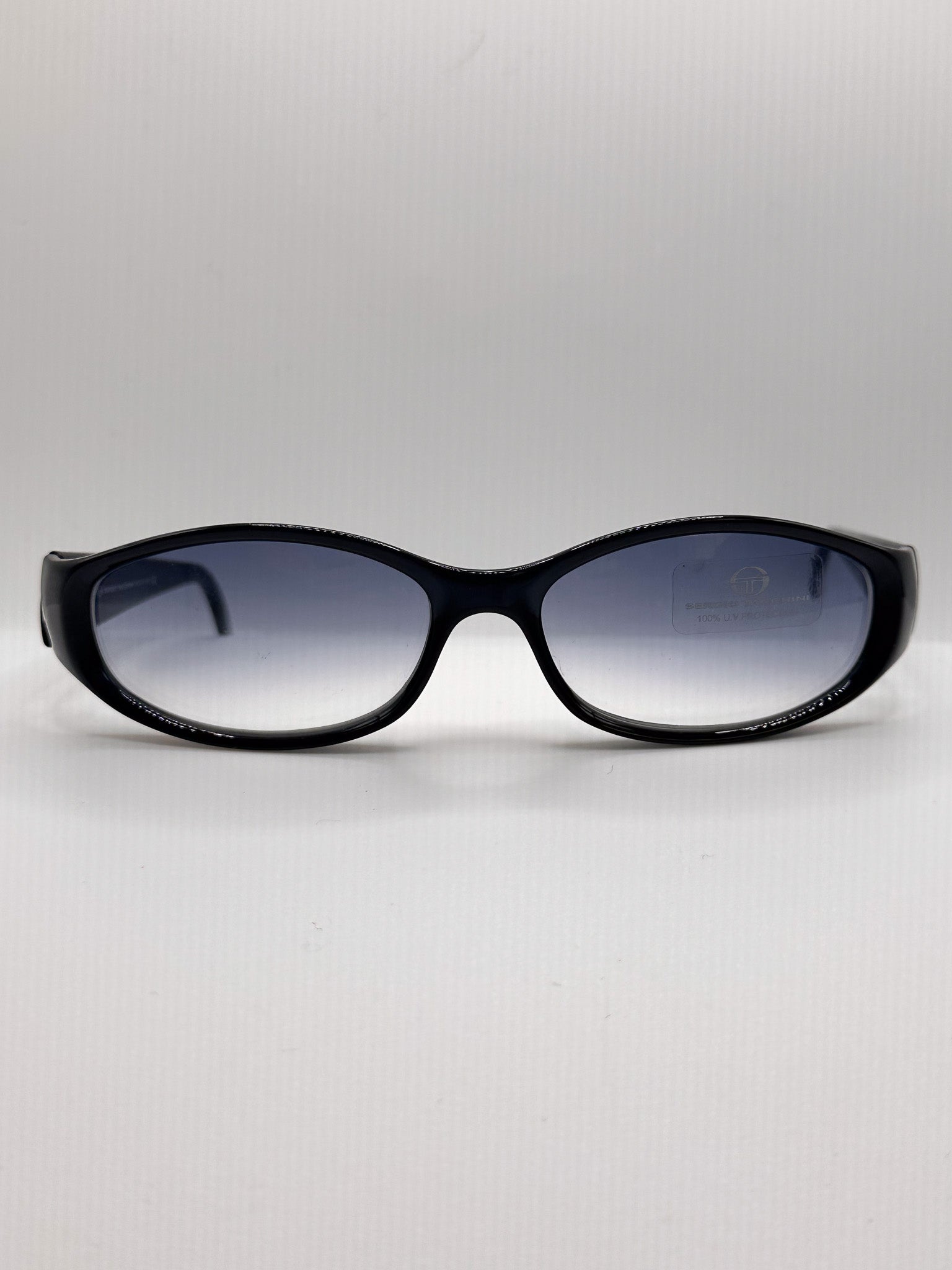 Sergio Tacchini wrap-around 1990s black oval sunglasses with black gradient lenses. Unisex! Stand out with this stylish vintage eyewear.