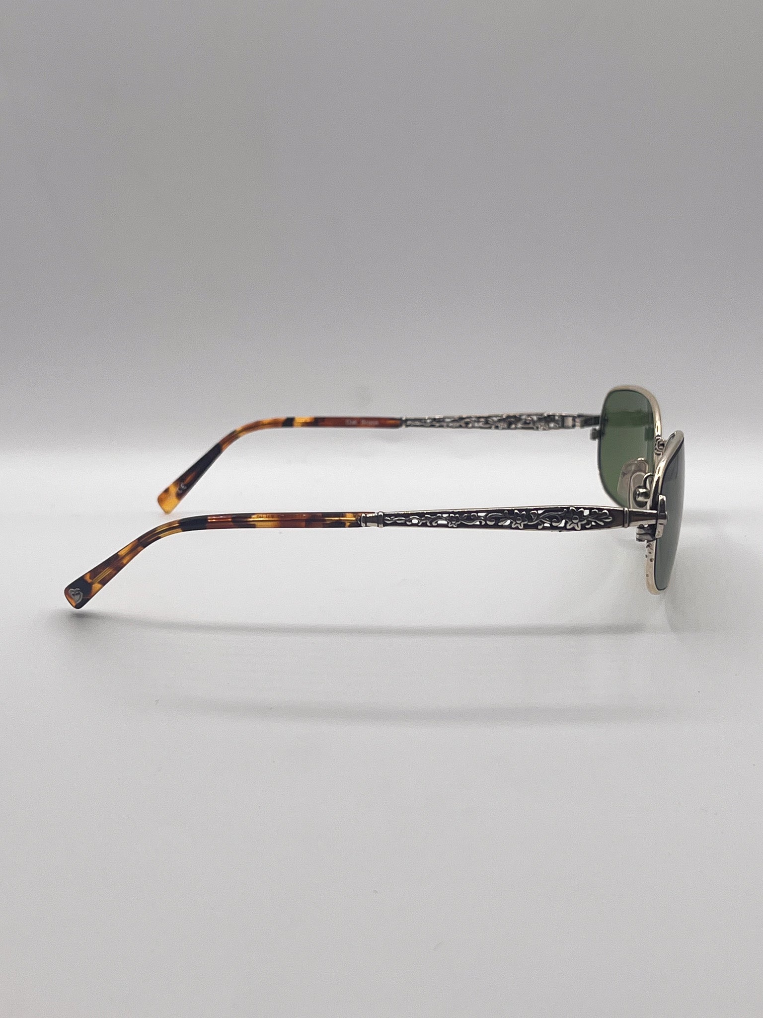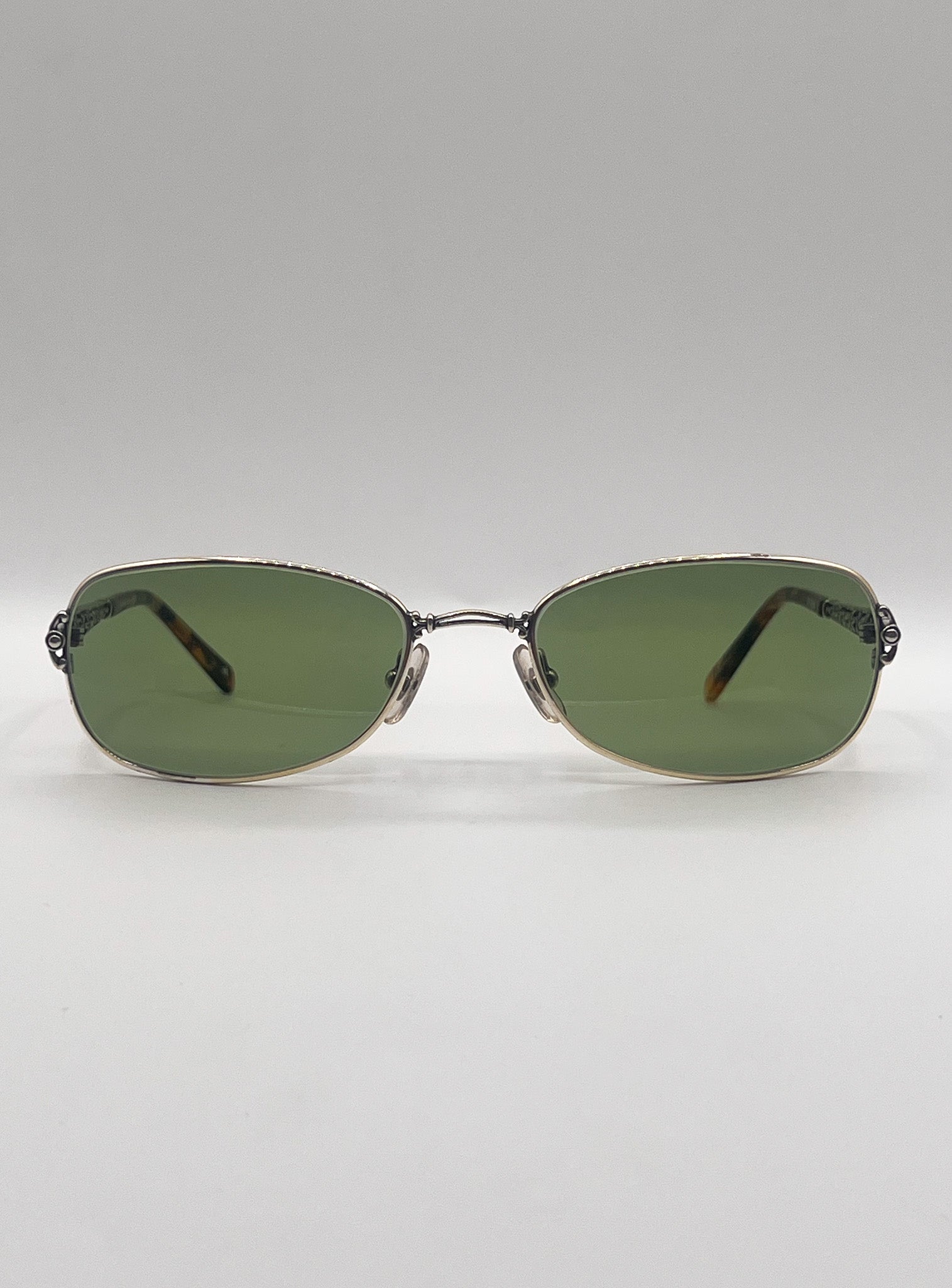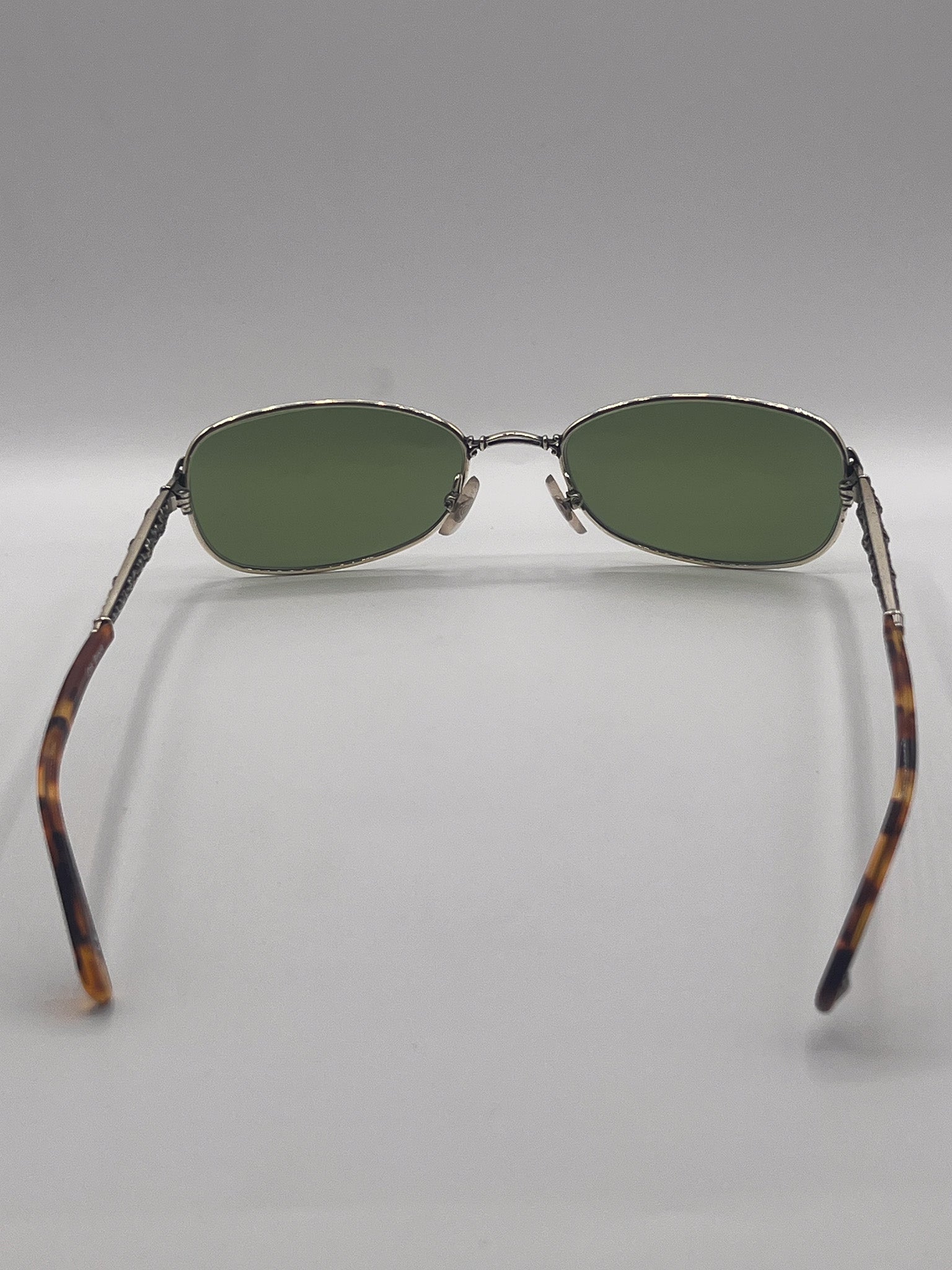 Beautiful detail! 1990s handmade butterfly style rounded frames. Silver flower adornments cover the ear pieces till the hinge, where it turns to a tortoise acetate with heart details at each end. Plastic nose pieces.