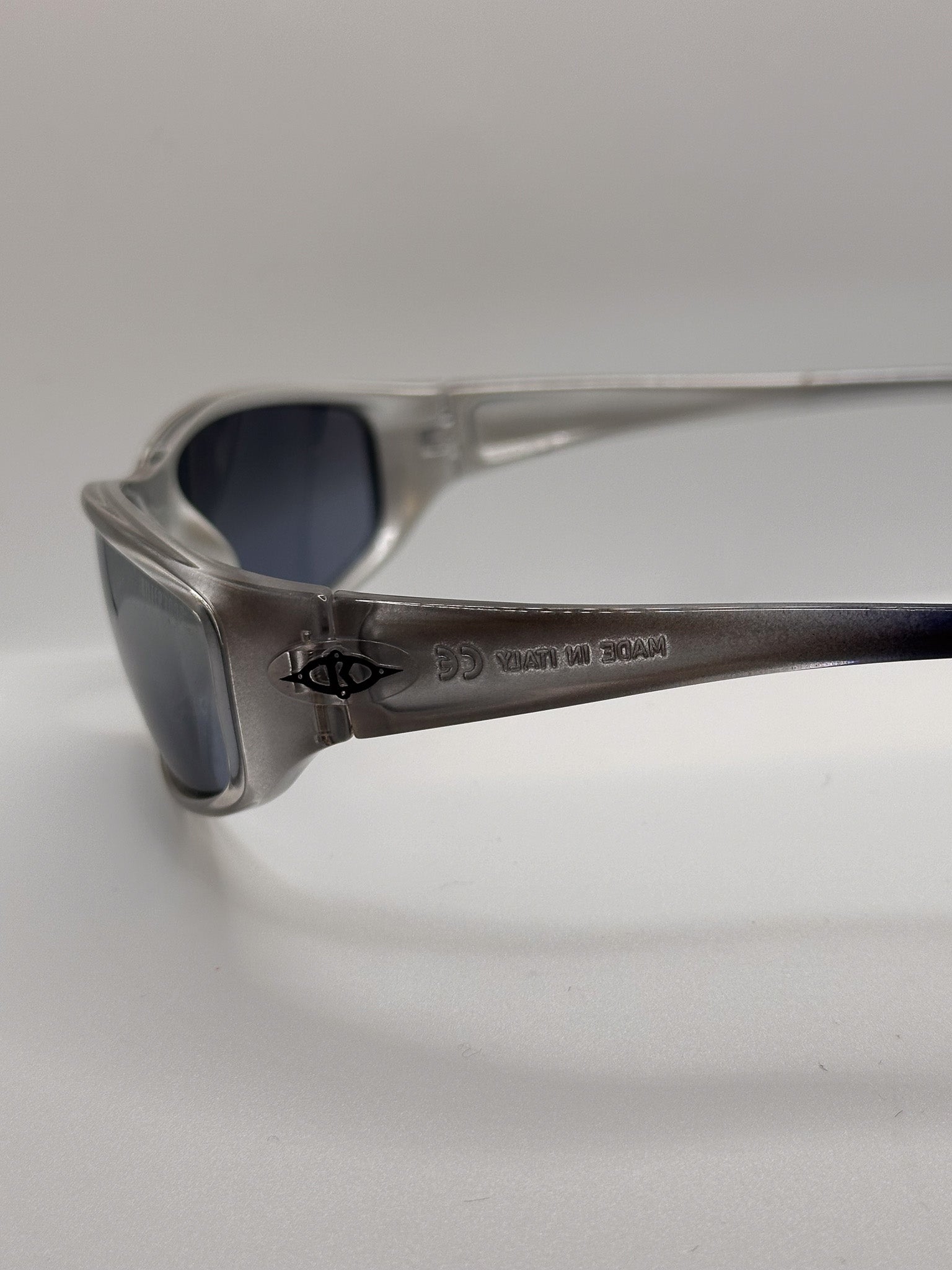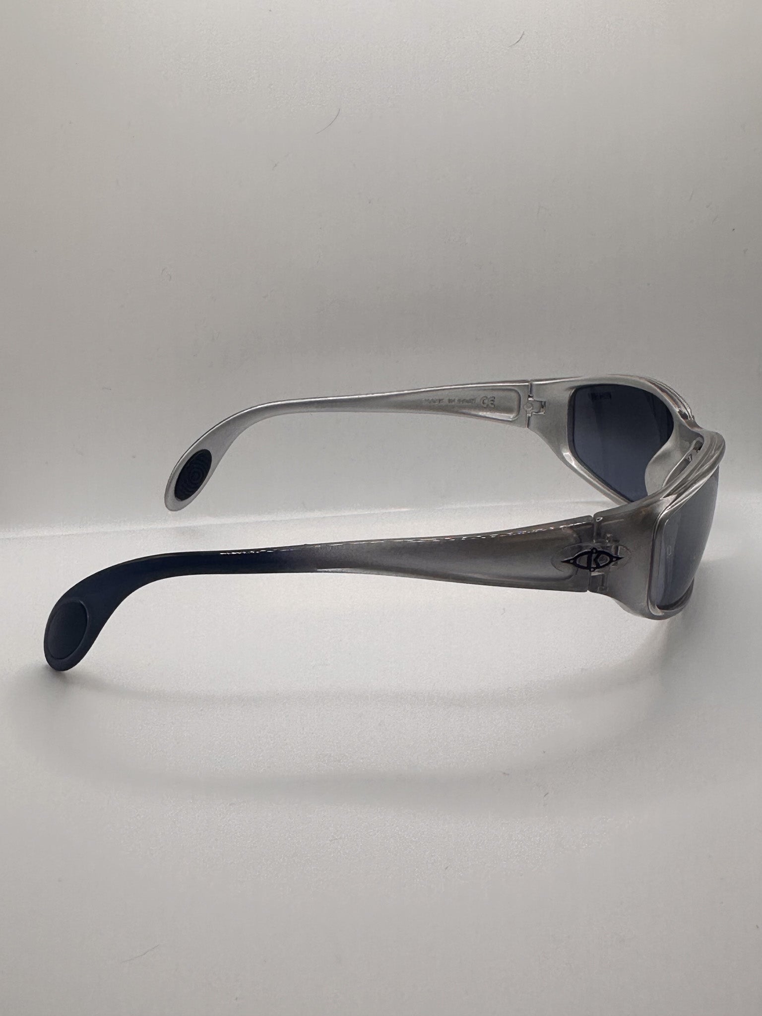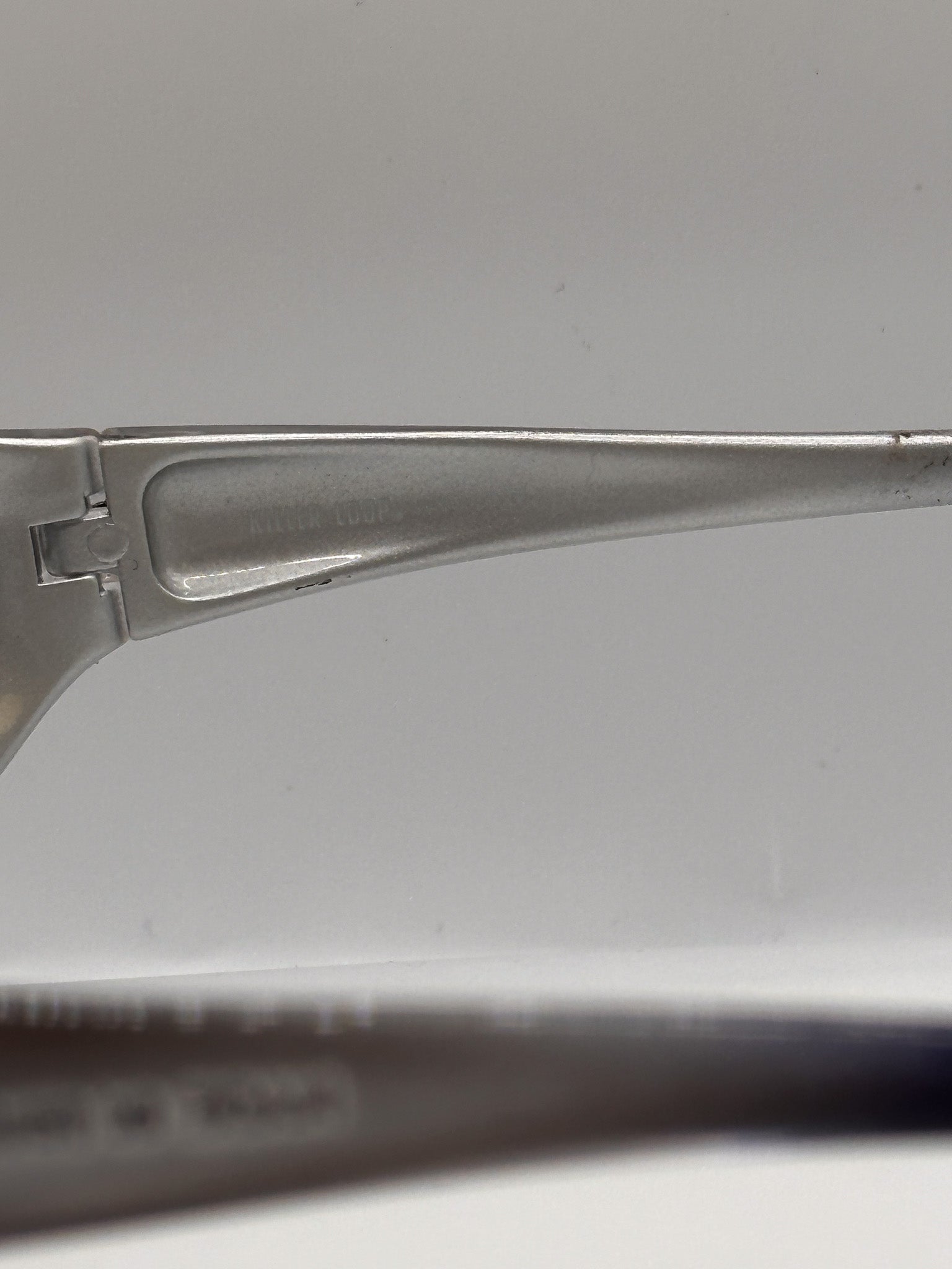 Killer Loop wrap-around 1990s silver sunglasses with polarized lenses. Padded temple pieces to provide utmost comfort. Unisex! Stand out with this stylish vintage eyewear.