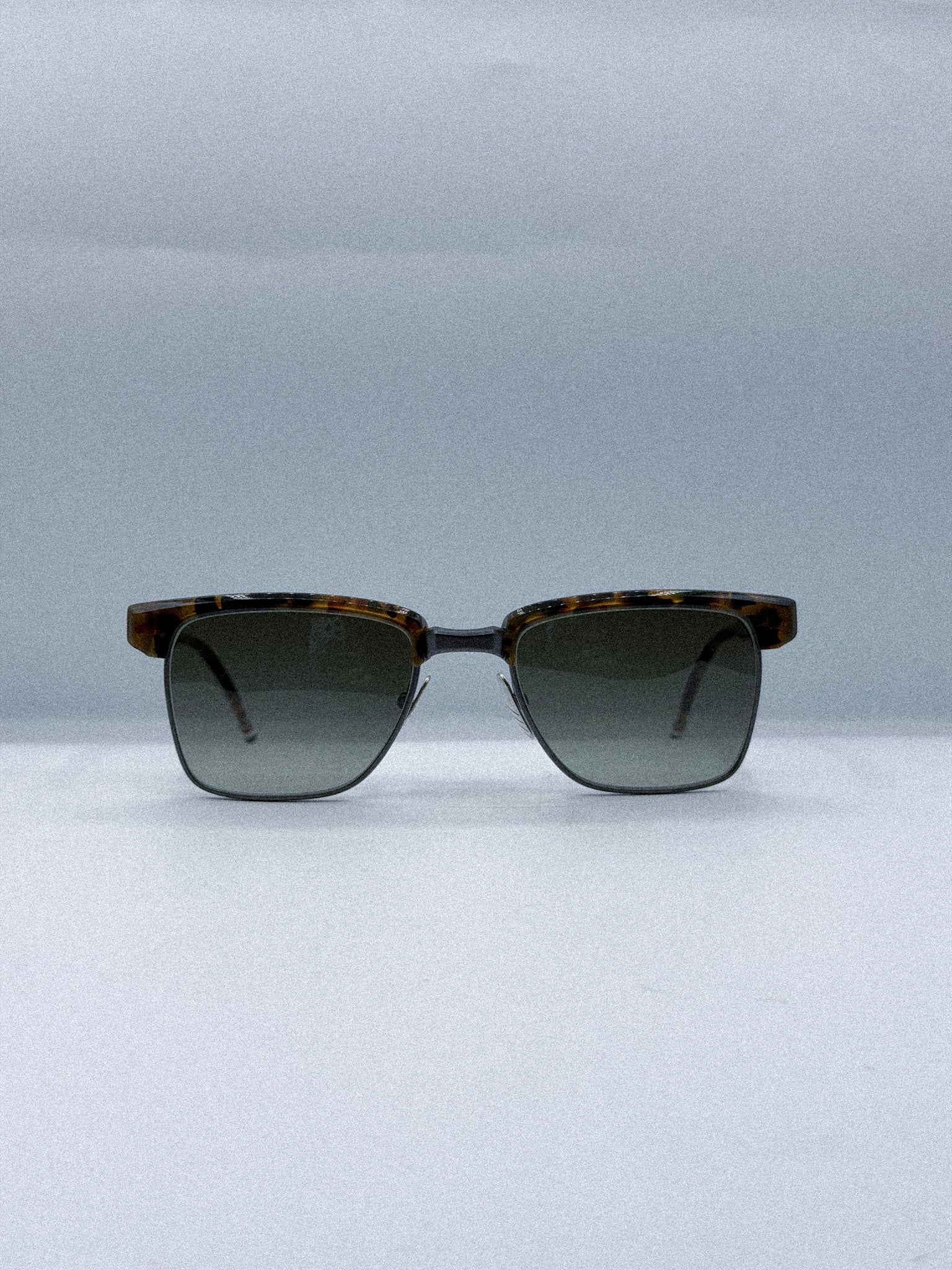 A disciplined take on 1990s understatement, this Thom Browne square frame blends sharp lines with rich tortoiseshell plastic. The structured brow and clean, geometric lenses create a studied balance, while the new gray lenses introduce a cool, contemporary contrast.