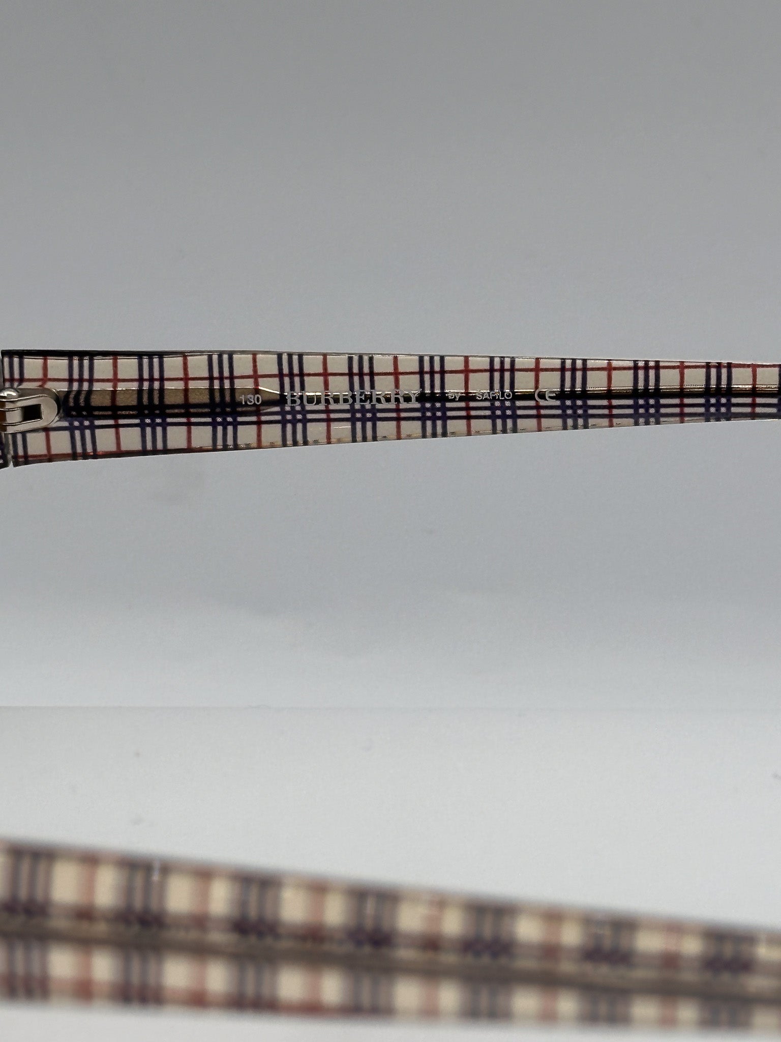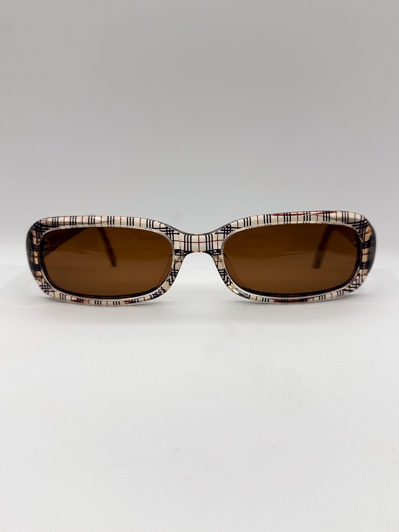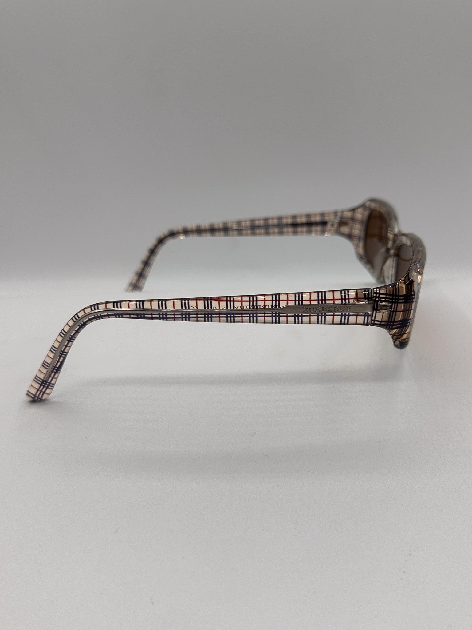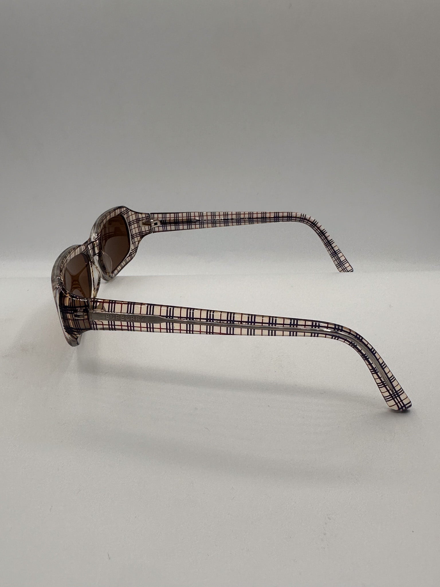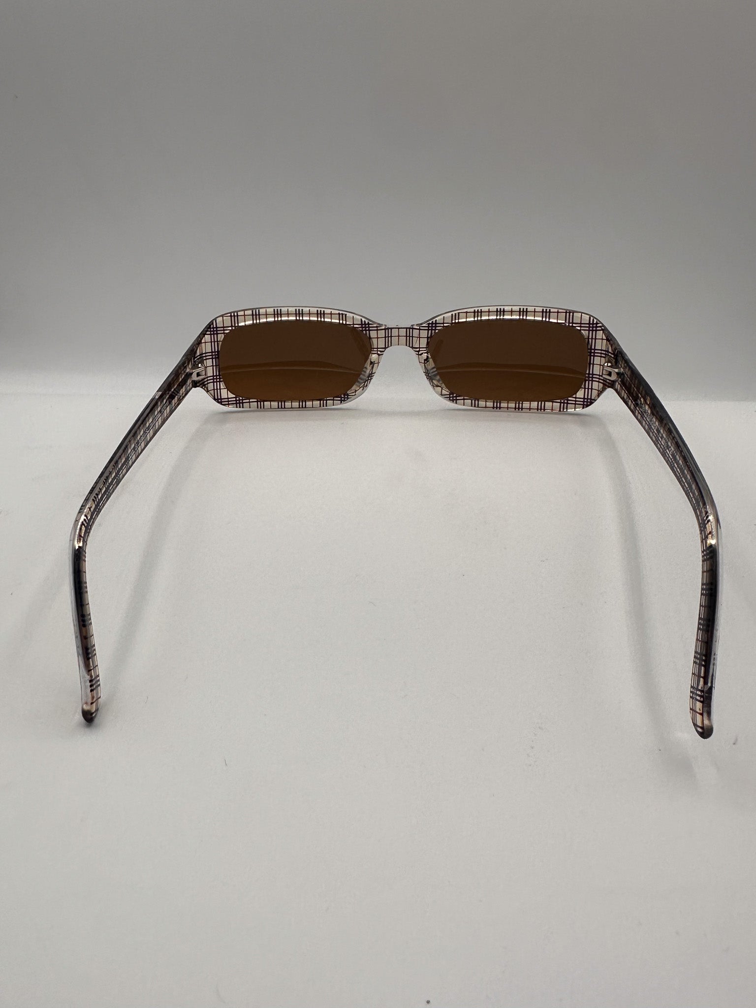 Gorgeous green/beige classic Burberry novacheck pattern decor this rectangle plastic frame with rounded edges. Finished with brand new green polarized lenses.