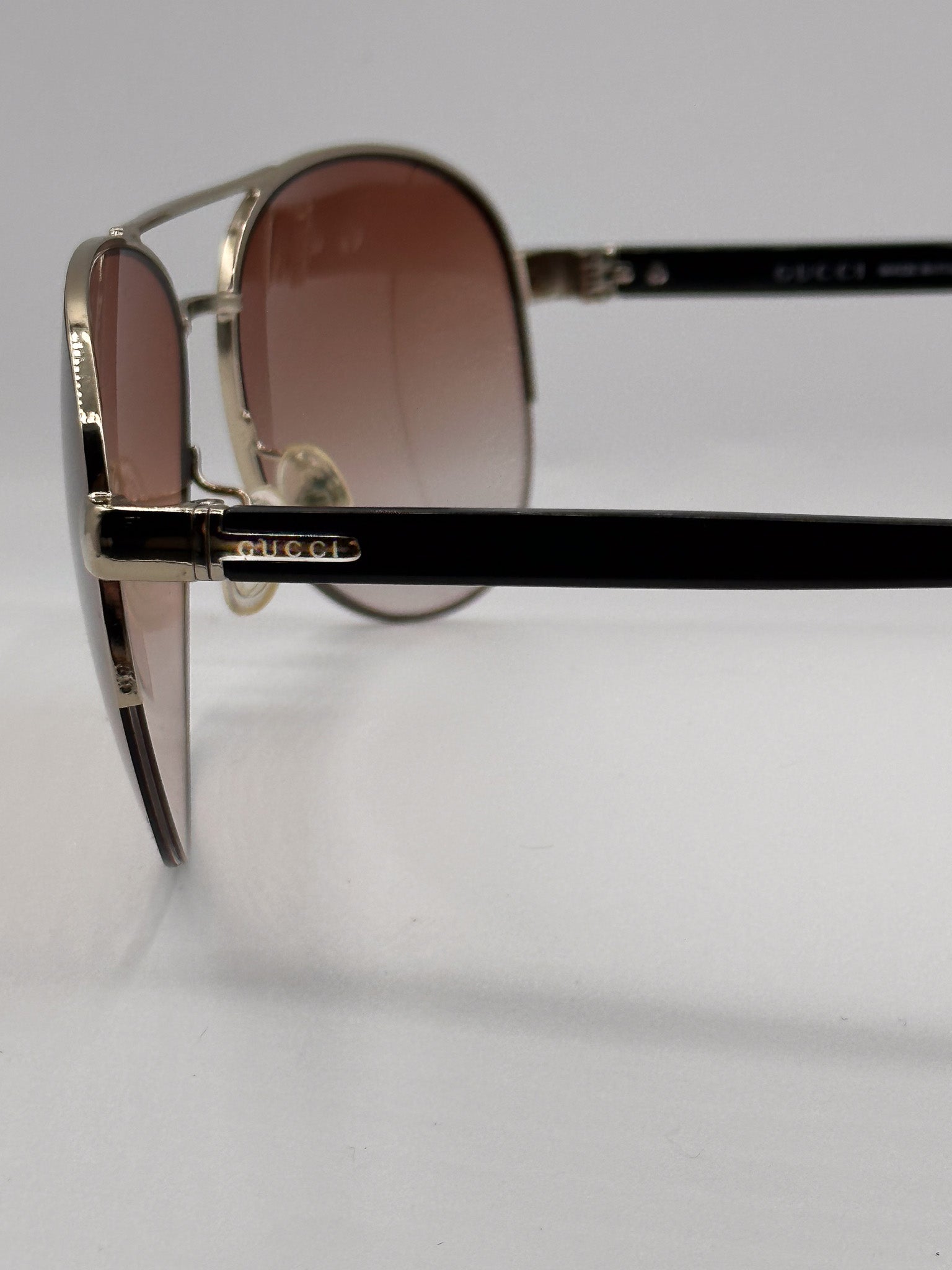 Vibrant Gucci half-rim aviator frame with newly replaced CR-39 gradient lenses. Made in Italy.