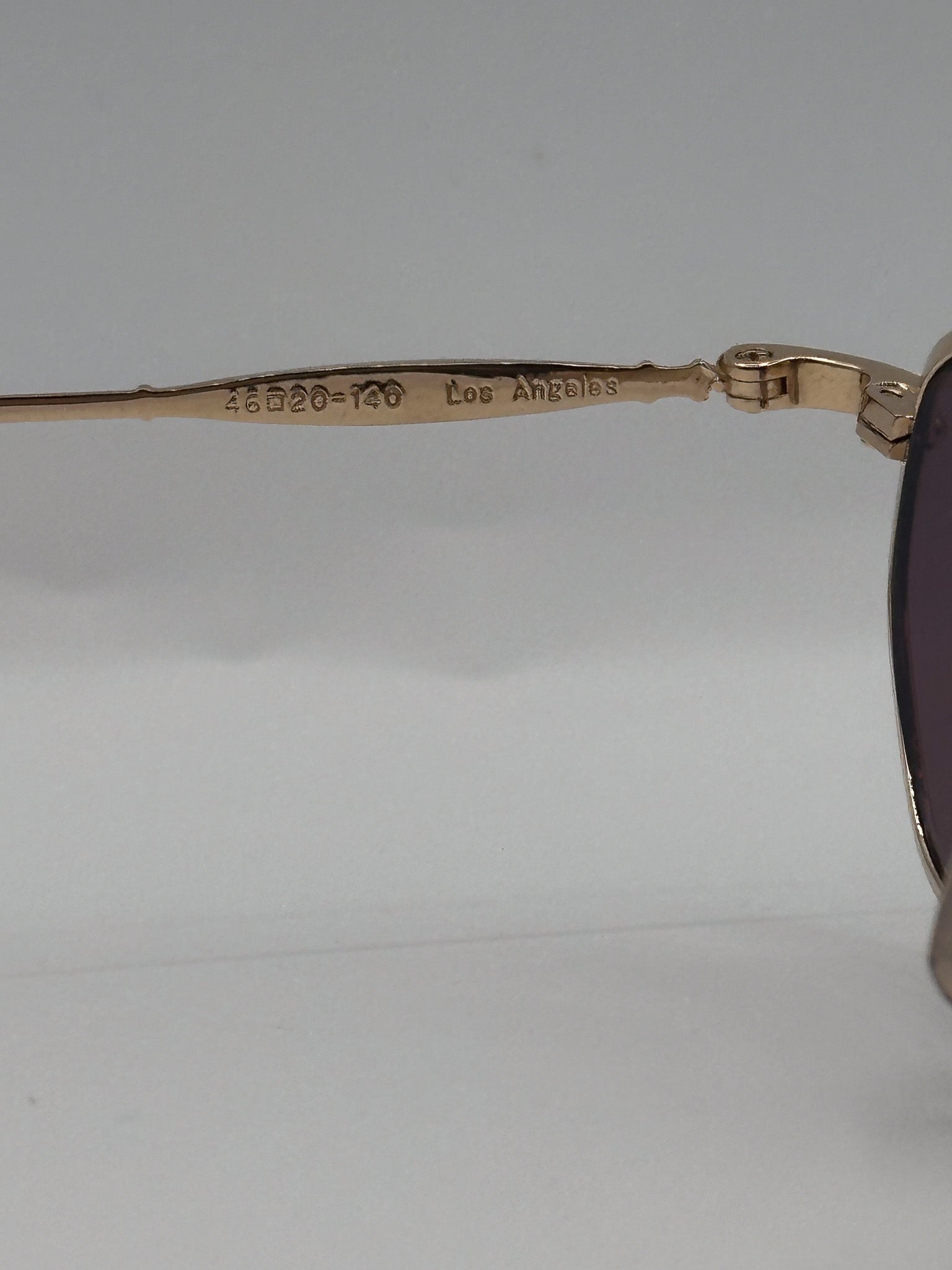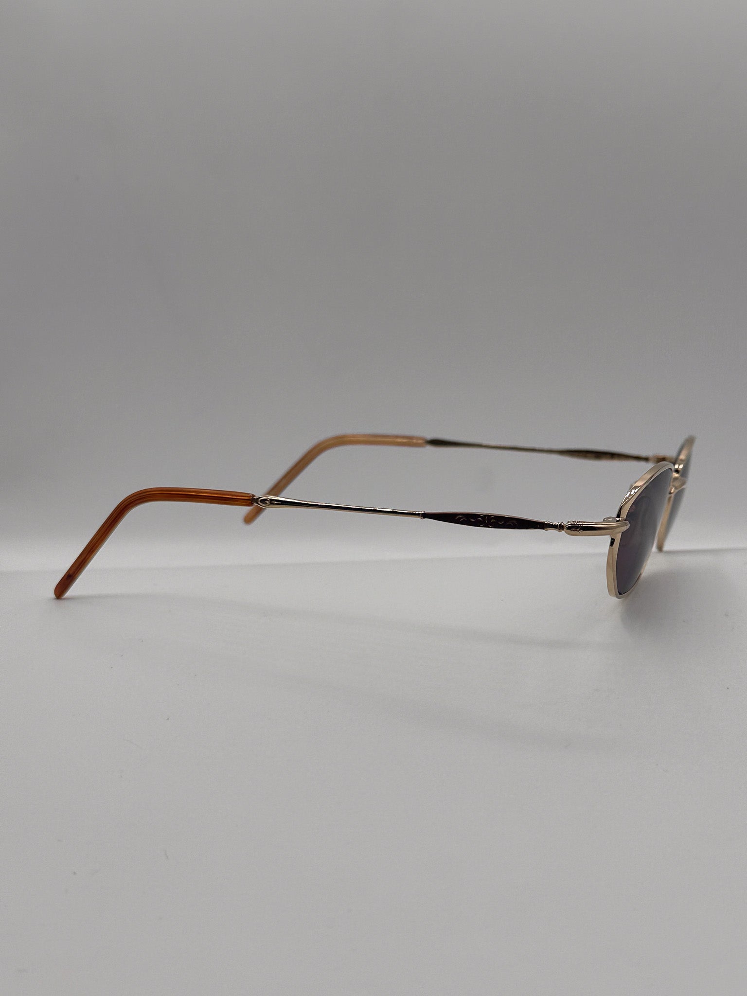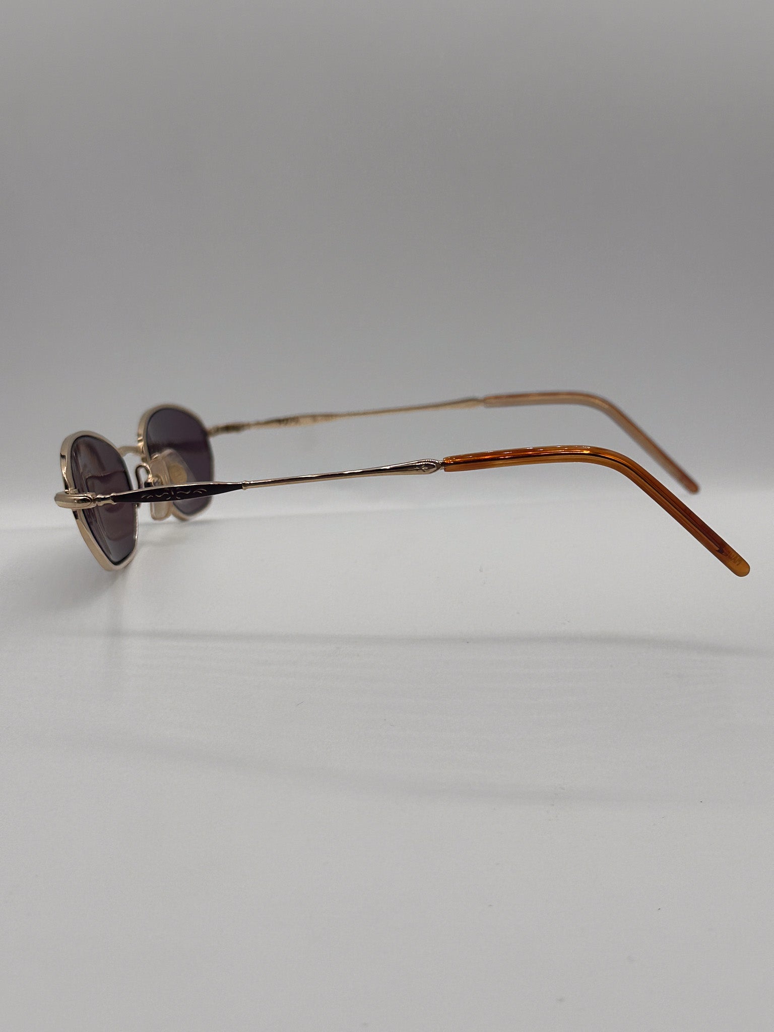 Small, gold-plated Bada titanium wire frame with diamond-shape black, polarized lenses.