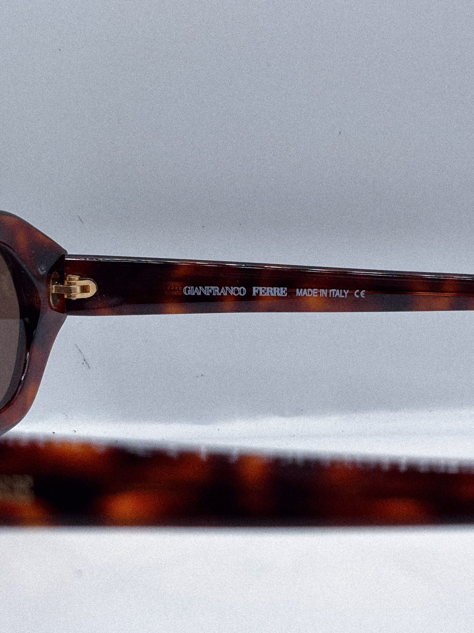These 1990s Gianfranco Ferré sunglasses reflect the designer’s signature architectural approach to fashion. Crafted in Italy with a rich tortoiseshell acetate, the oval frame strikes a bold yet elegant balance between structure and softness. A timeless silhouette that radiates understated power.