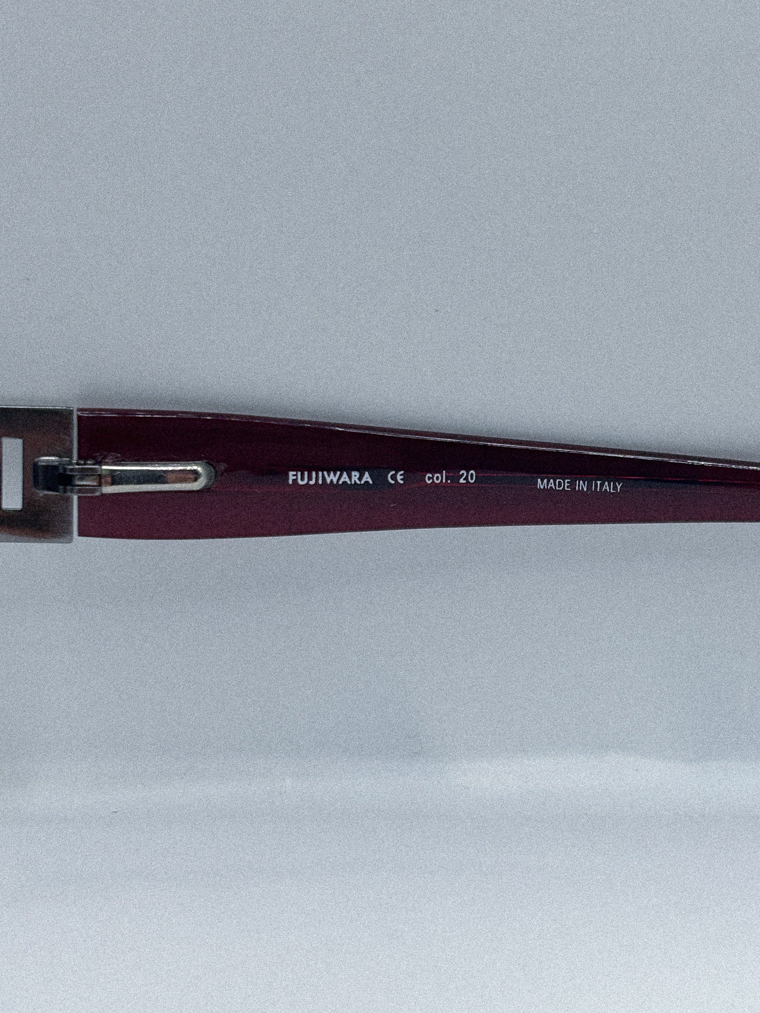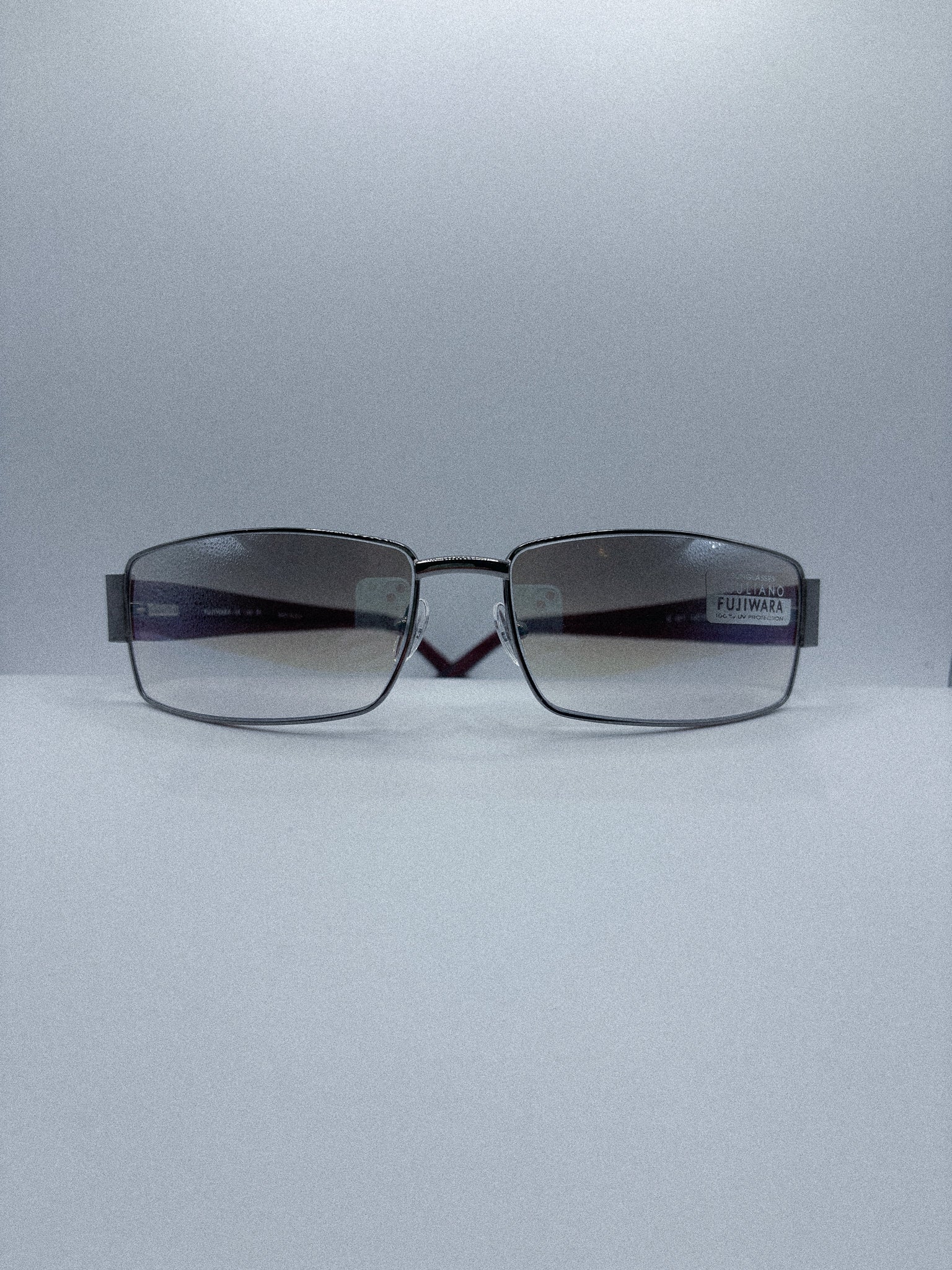 From the minimalist wave of the 1990s, these Fujiwara frames distill precision into wearable architecture. Gunmetal rectangular frames balance clean geometry with sculptural temple arms, where matte black acetate wraps around brushed metal in a study of contrasts.