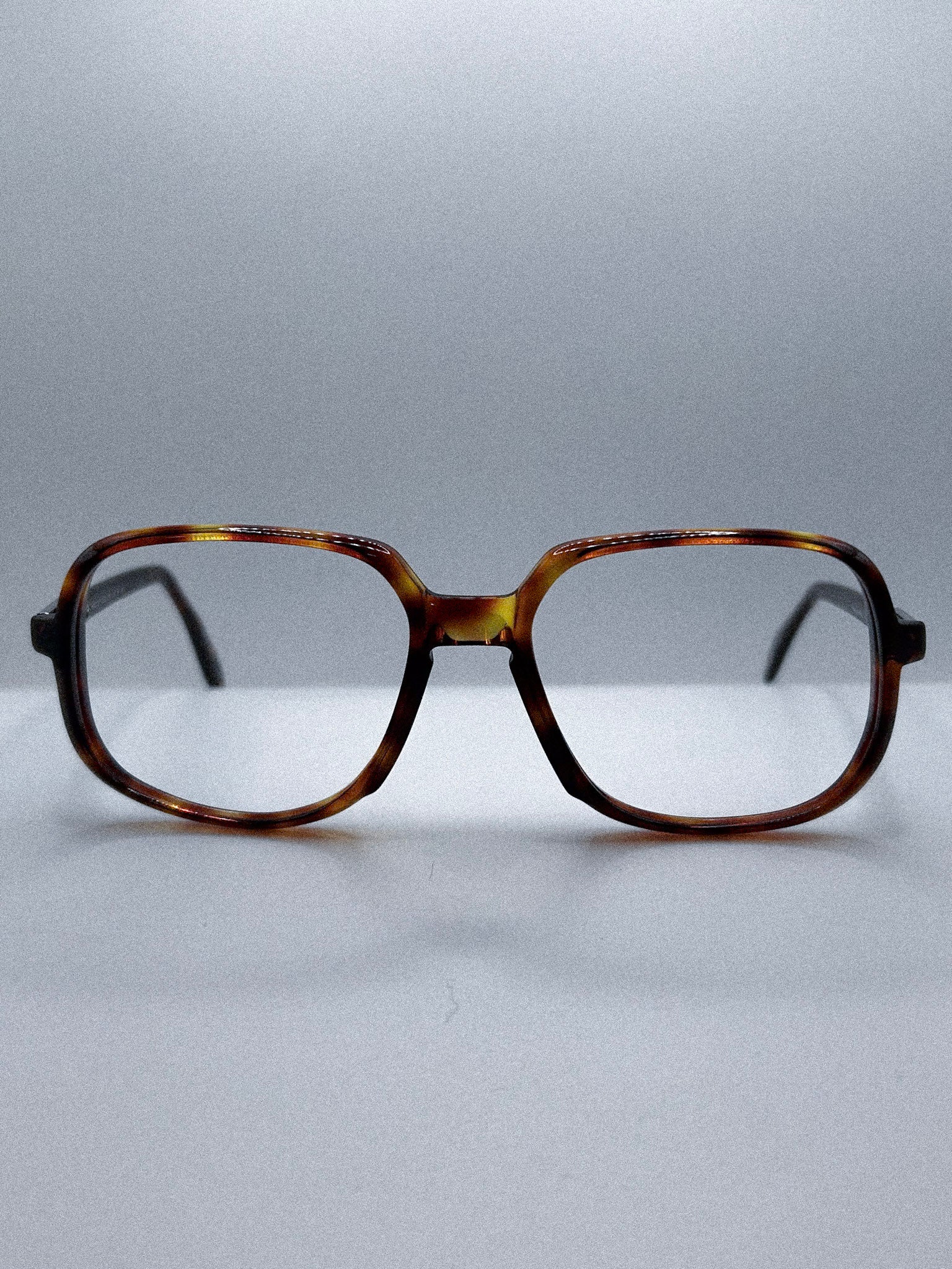 These 1980s Silhouette frames reflect the warm energy and geometric experimentation of the decade. The orangey tortoiseshell acetate carries a luminous blend of amber, honey, and deep brown, giving the frame a soft glow that shifts with the light.