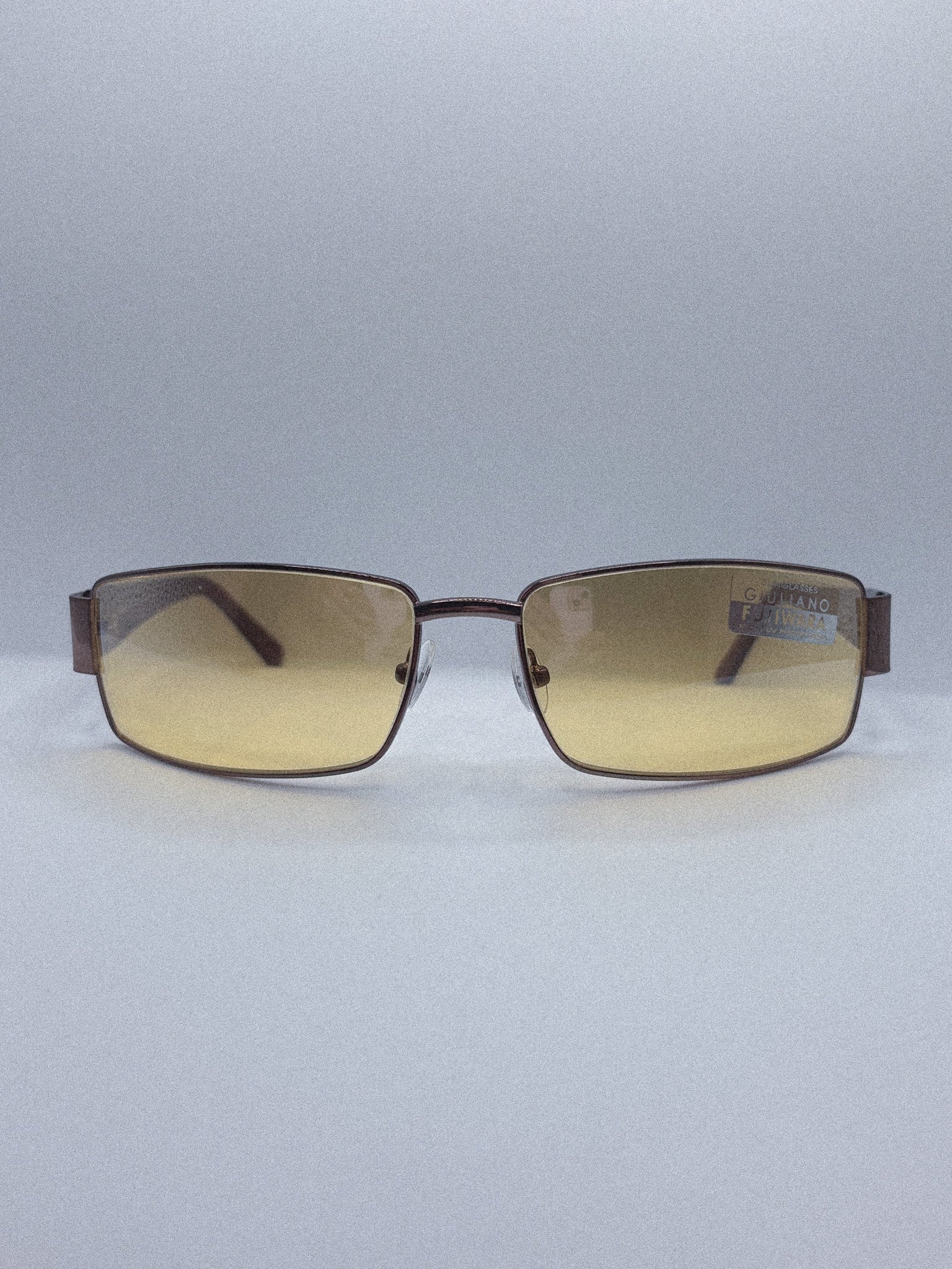 These 1990s Giuliano Fujiwara sunglasses exemplify the brand’s quiet precision and architectural design ethos. The slim rectangular silhouette, crafted in lightweight metal with amber-tinted lenses, evokes a balance of intellect and ease—hallmarks of Fujiwara’s understated luxury.