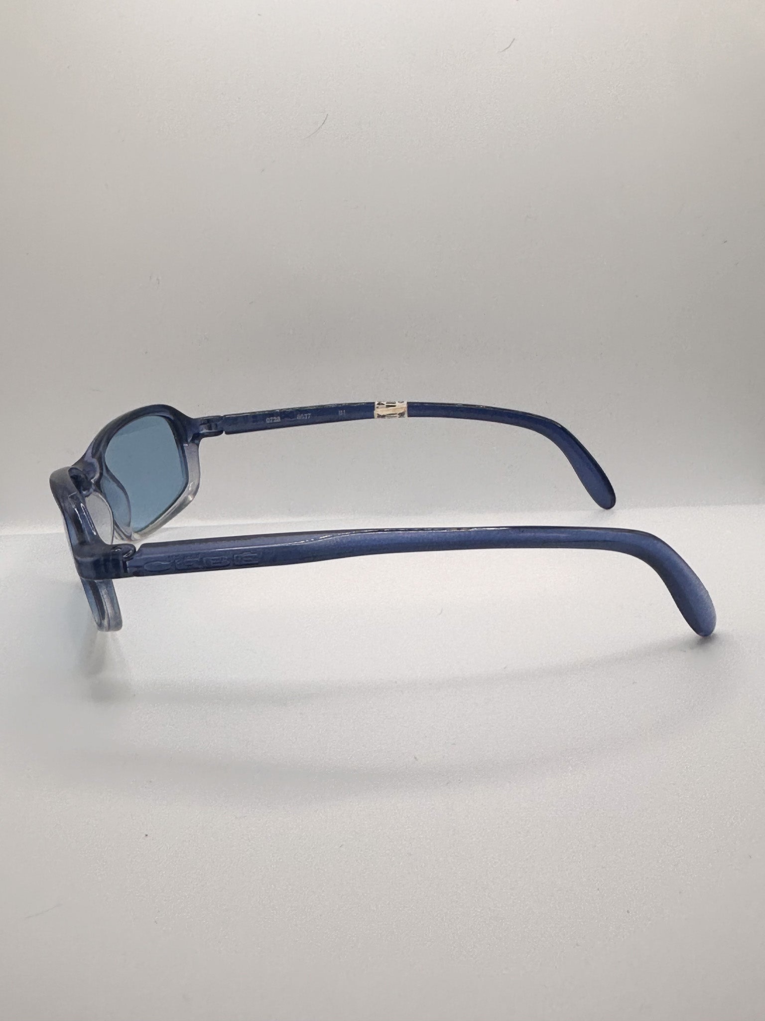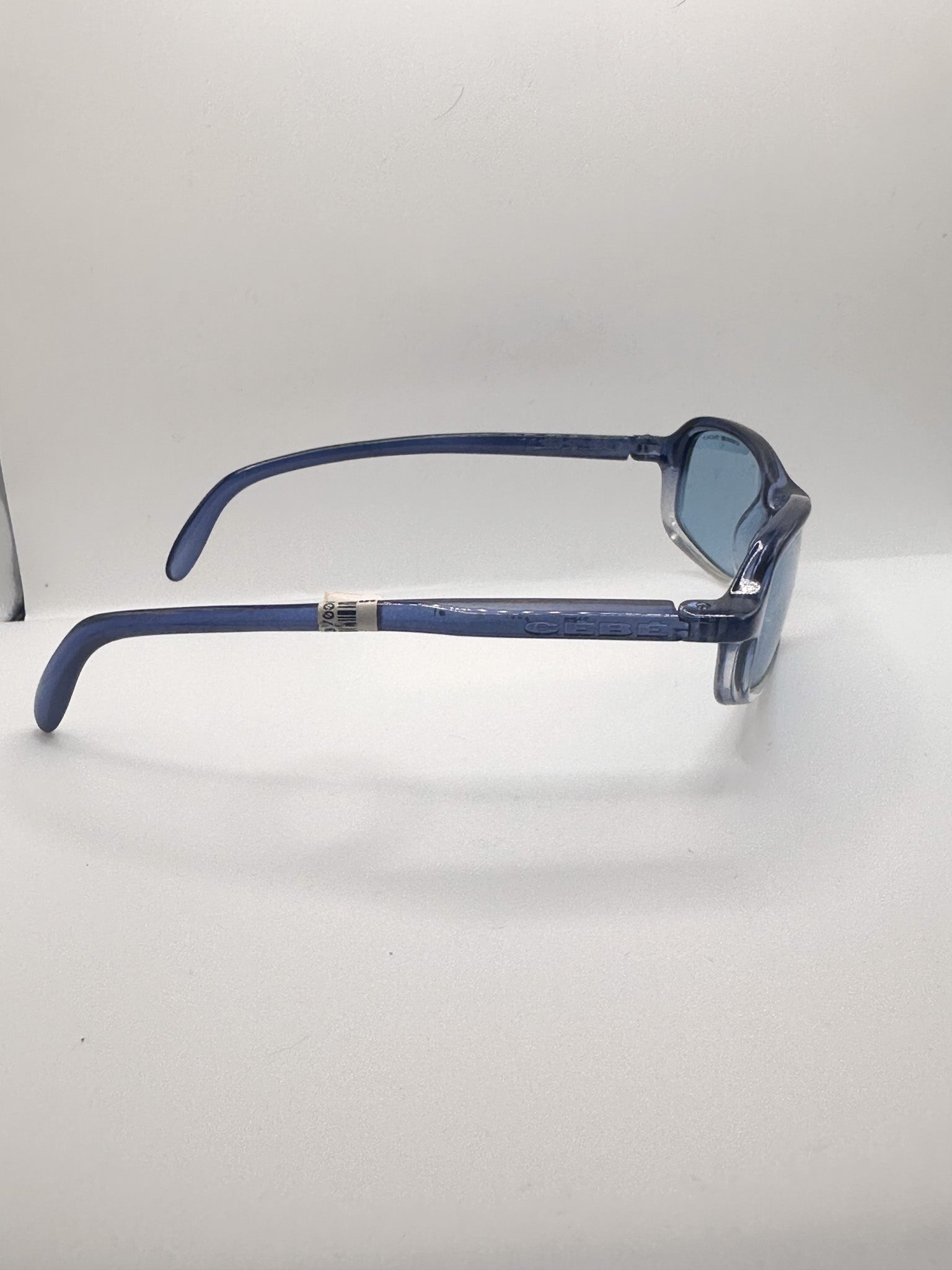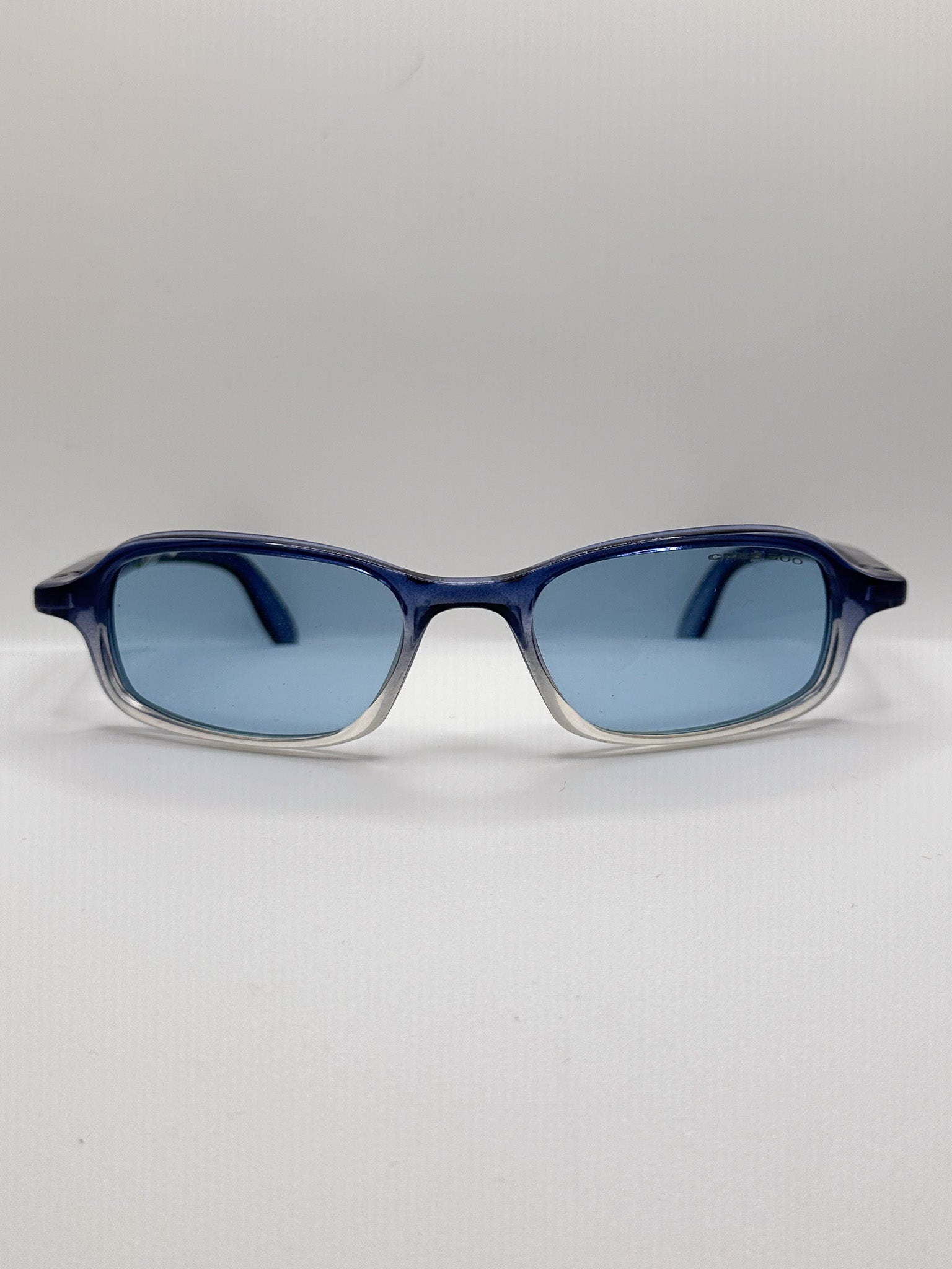 Cebe rectangle sunglasses with a blue/clear gradient frame and blue lenses. Made in France.