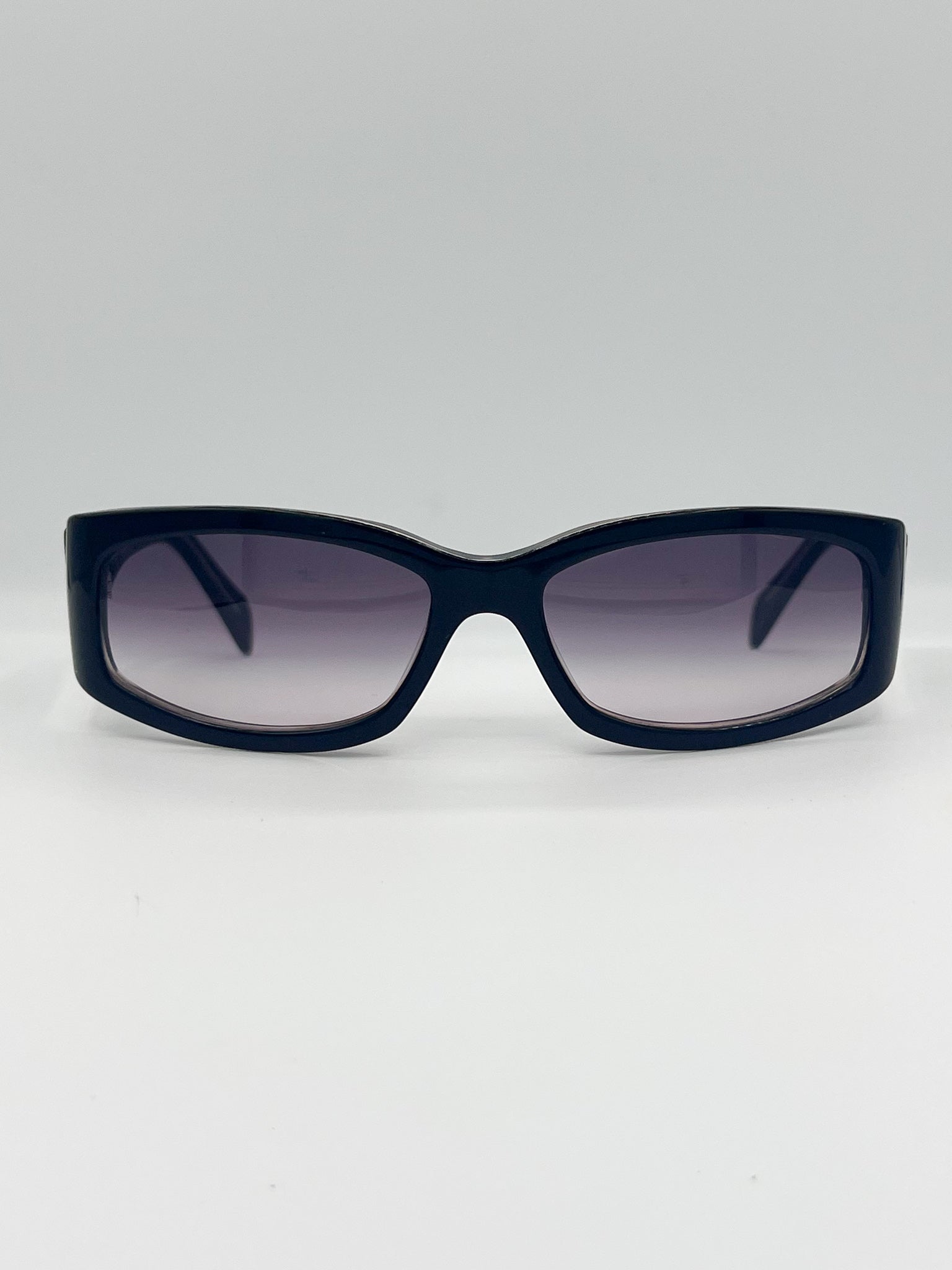 Around since 1984, Donna Karan revolutionized fashion in the 80s. These 1990s acetate rectangle frames are complete with brand-new black gradient lenses.