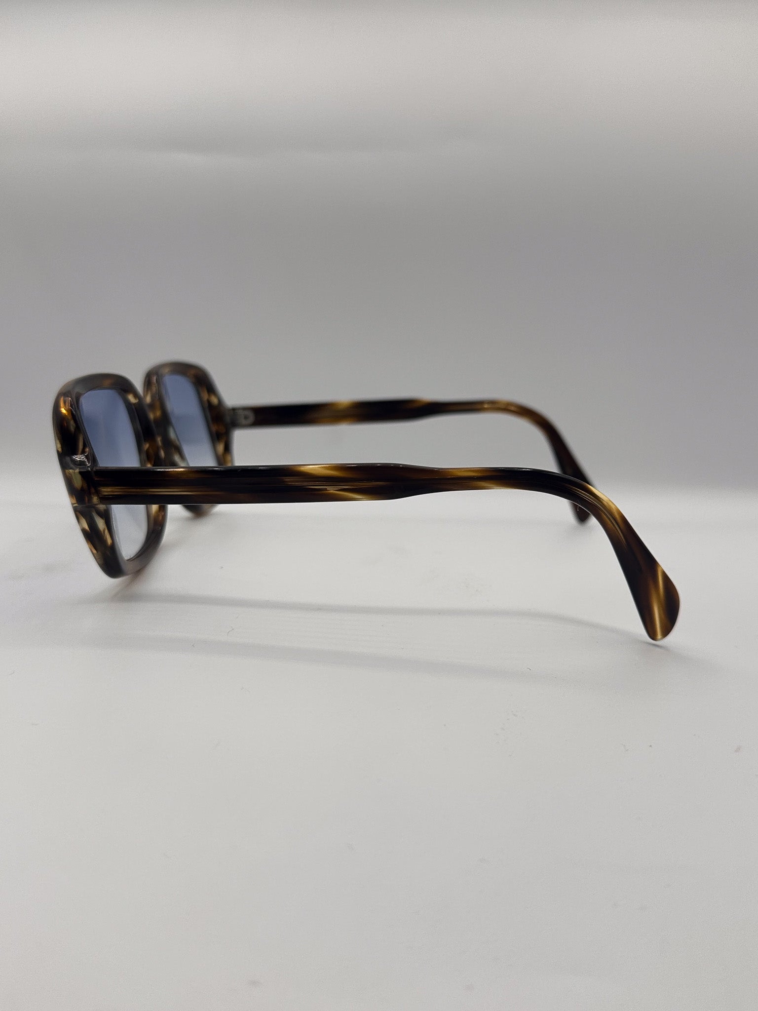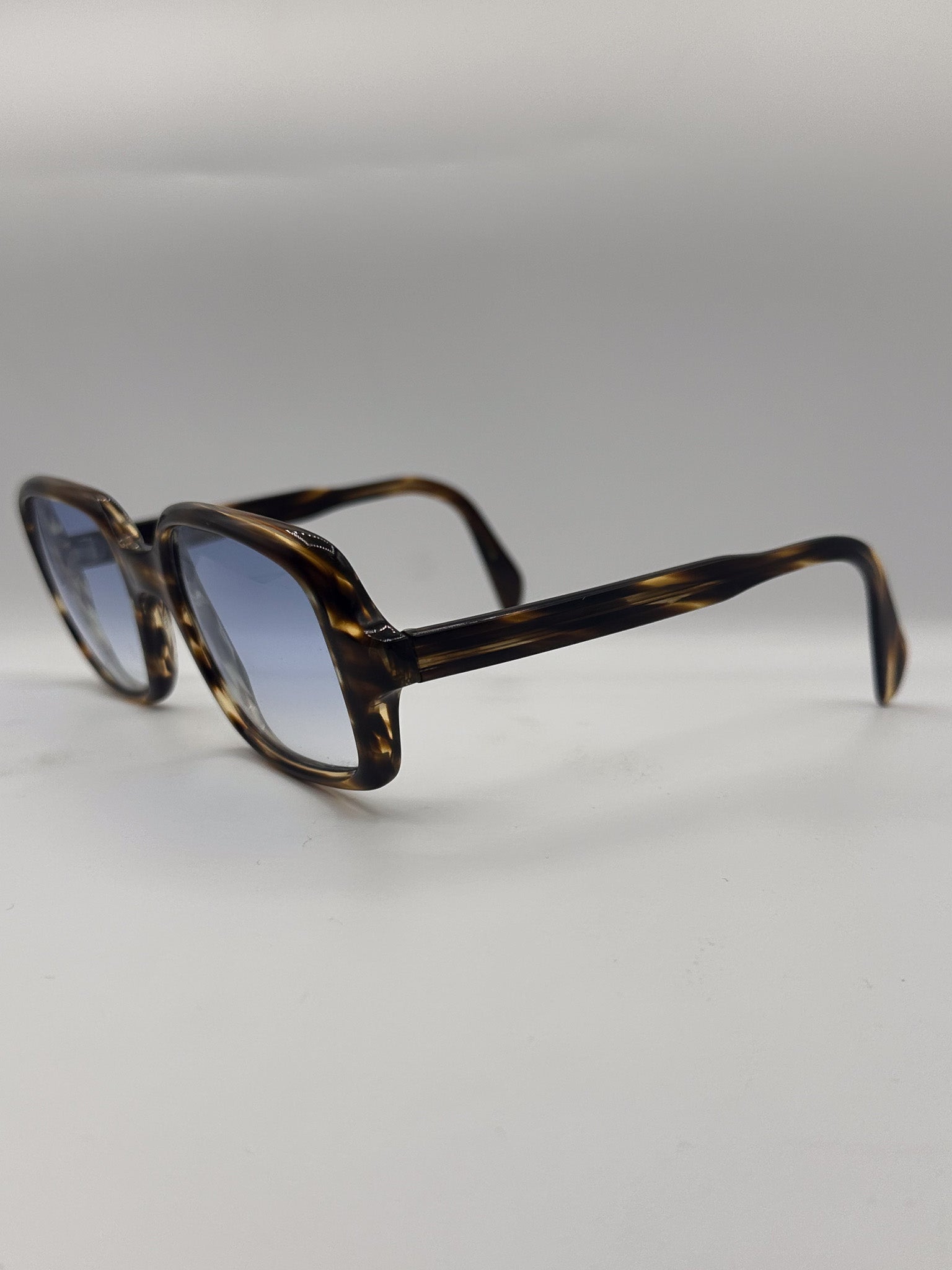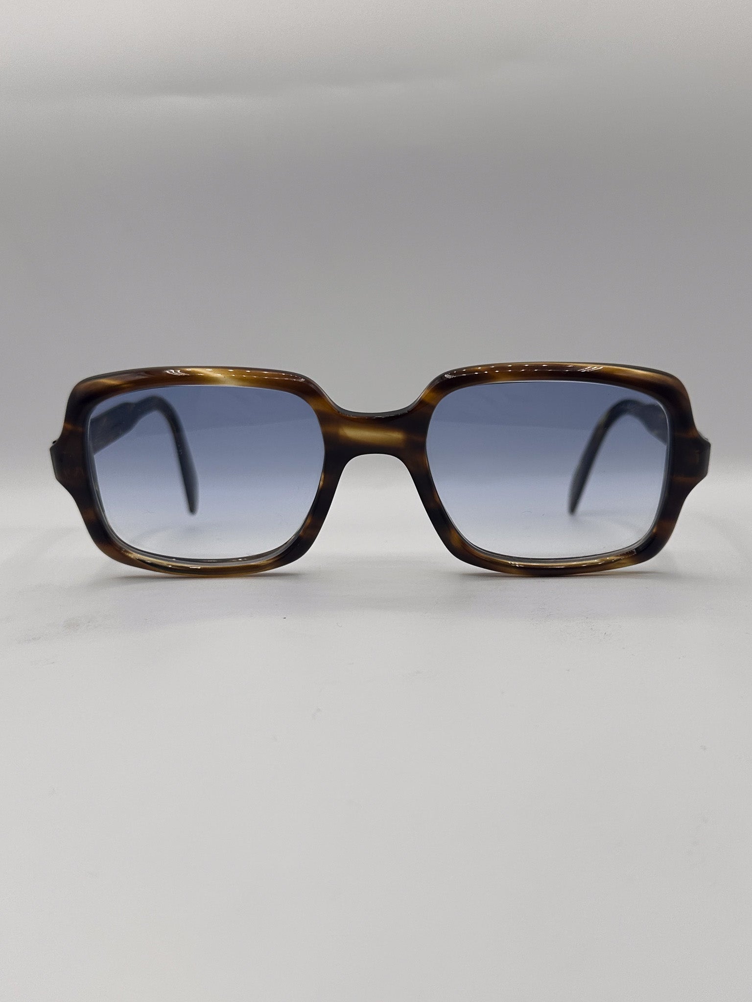 A subtle tortoise, bluntly square frame. Makes a statement, but the gradient on the lens keeps it subtle.