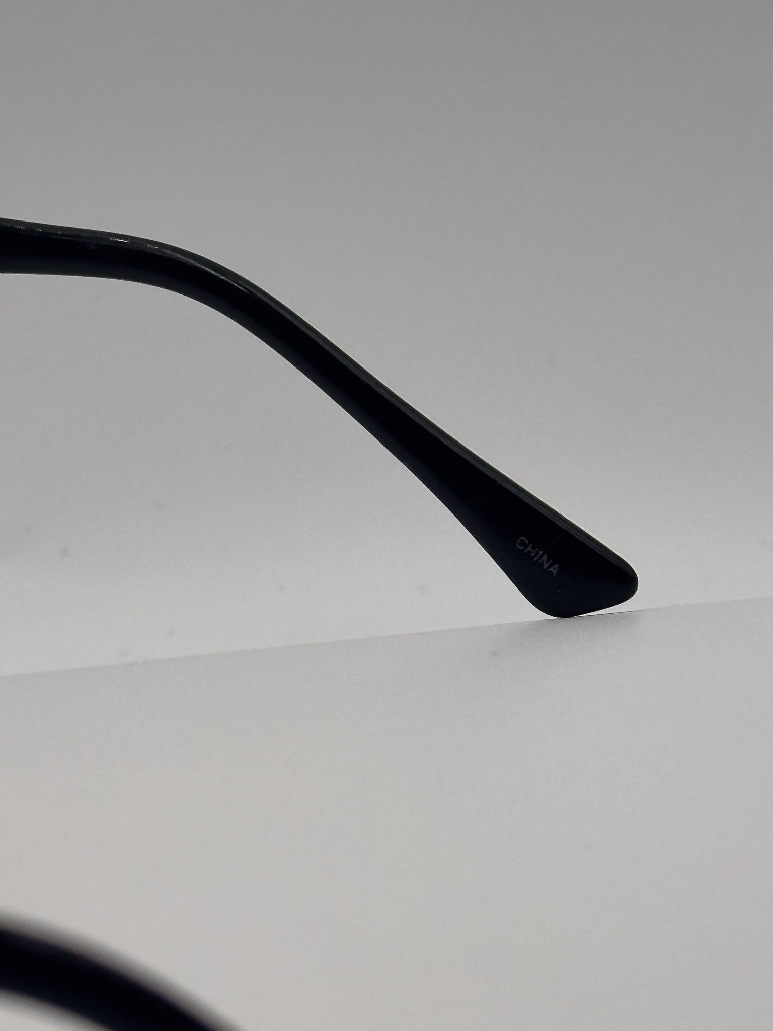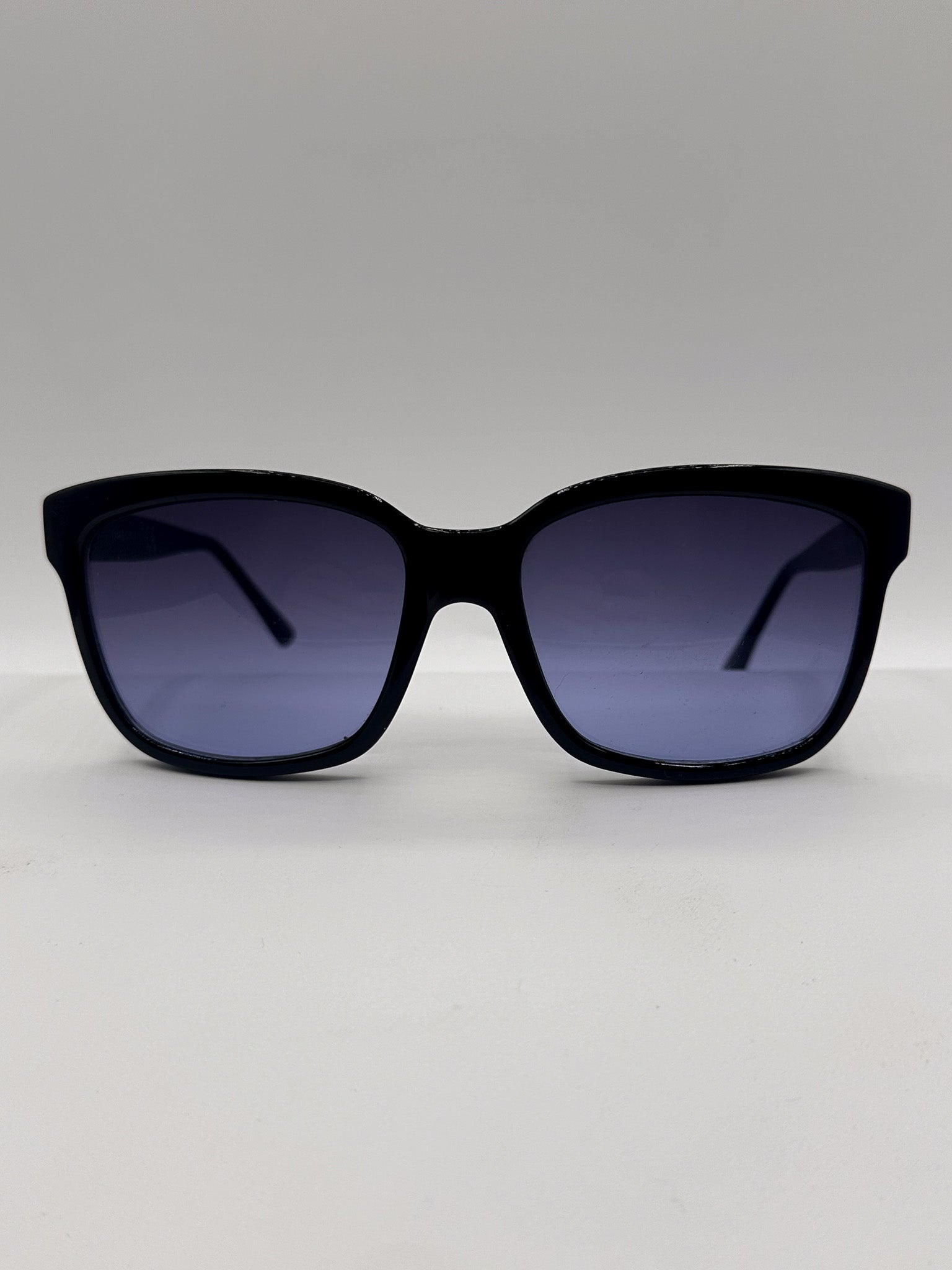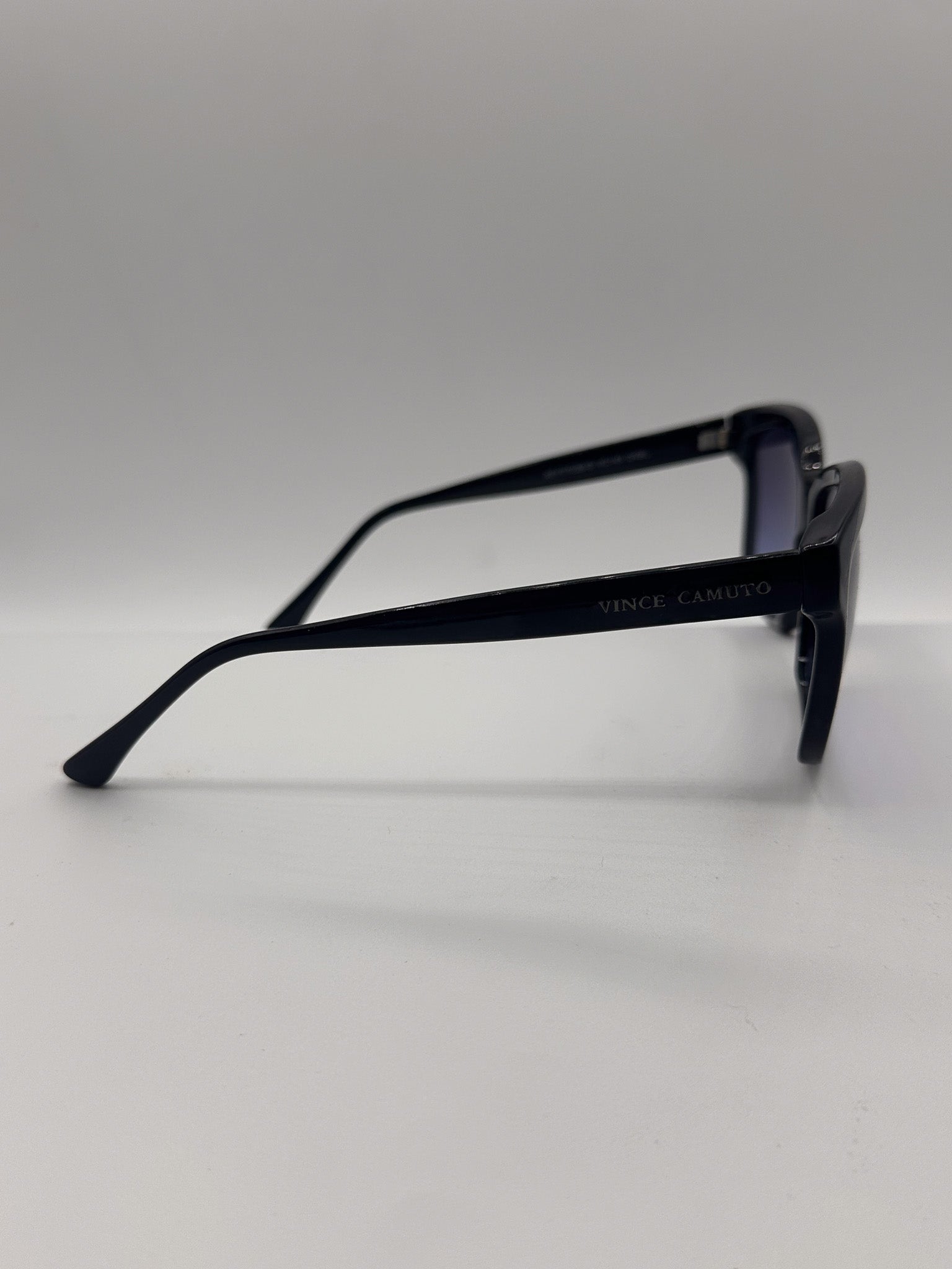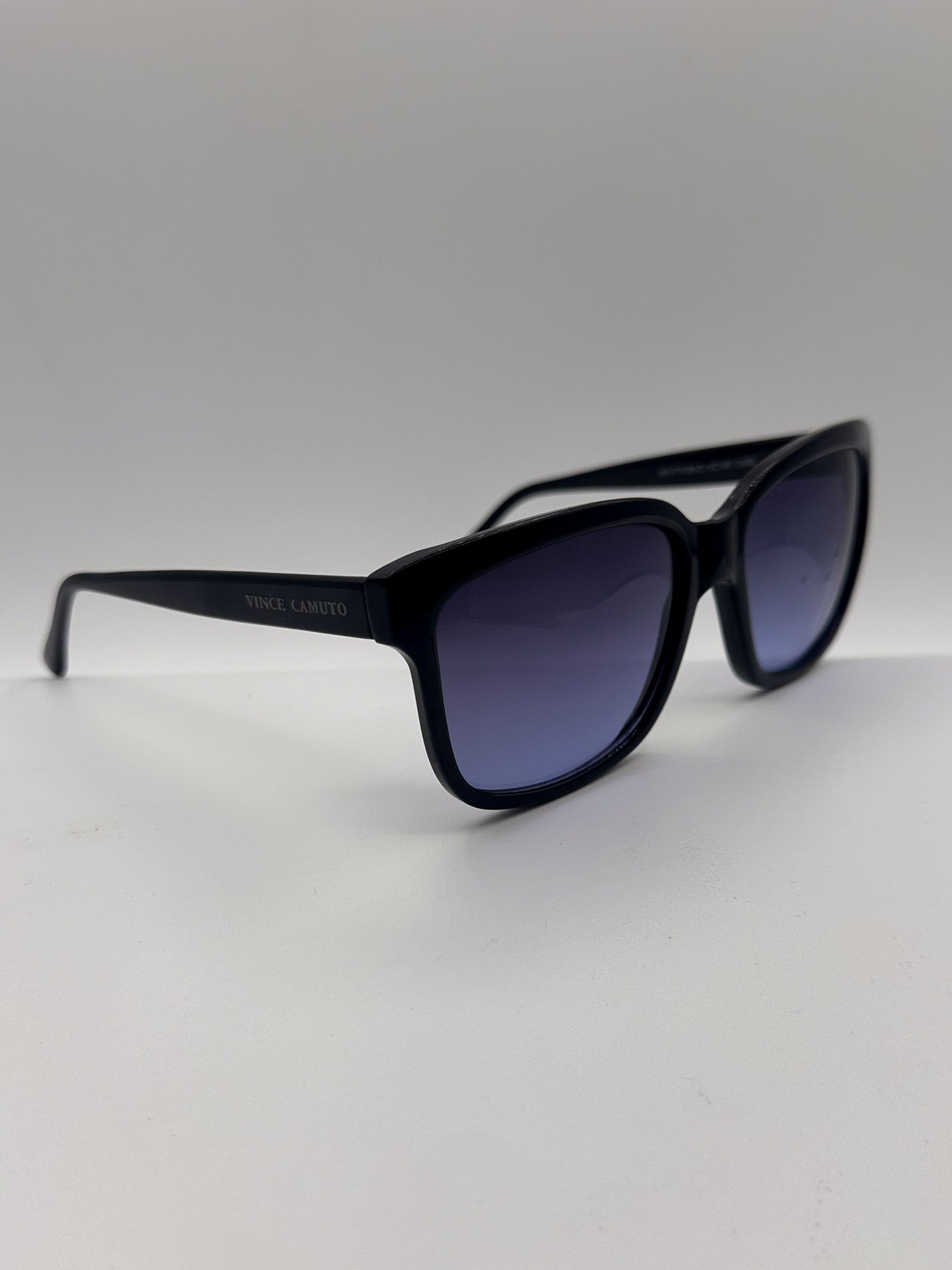 Huzzaaaah! Black wayfarer/horn-rimmed style frame screams glamour. These 2000s Vince Camuto frames are finished with blue gradient lenses, dark enough to be subtle but sure to make a statement when analyzing closely. Made in China.