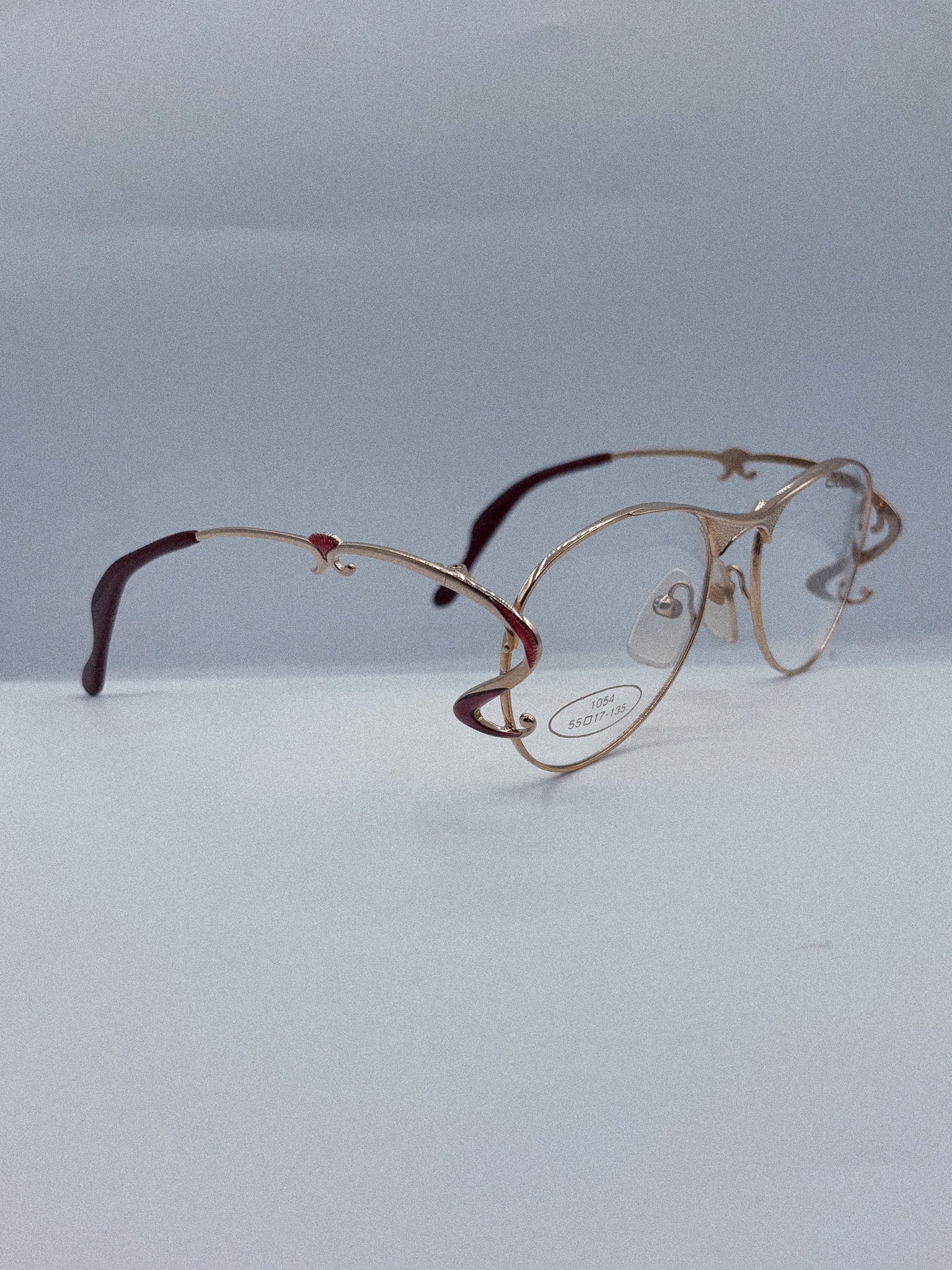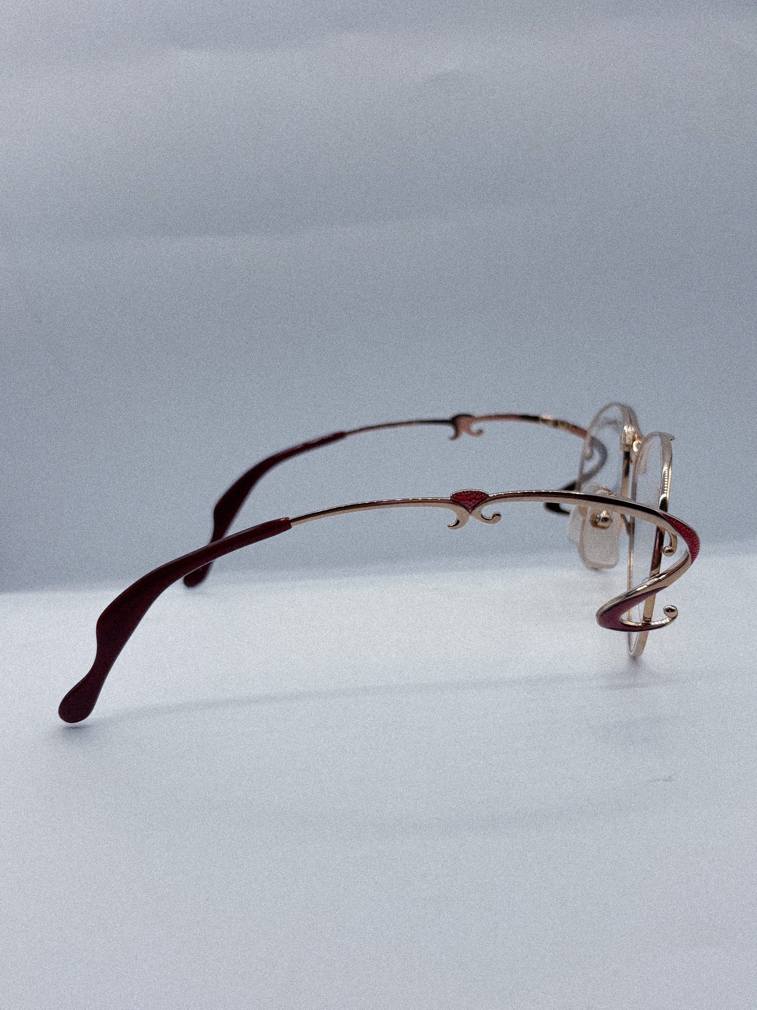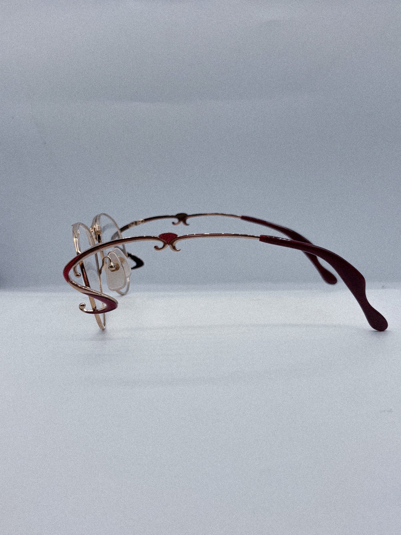Frame Model: Sculpted Rose Gold Wireframe with Red Enamel Scroll Temples