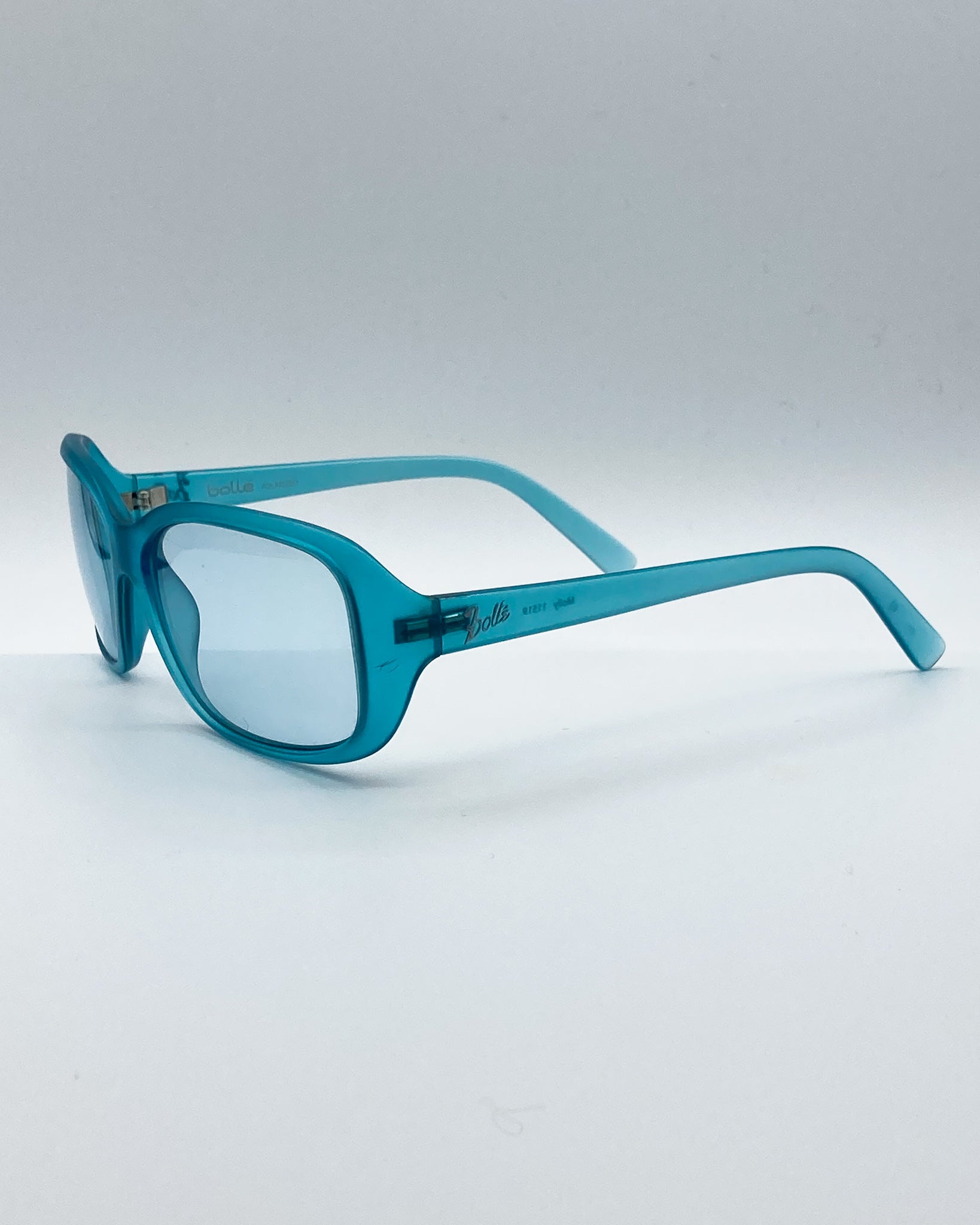 ORIGINALLY MADE IN ITALY BY BOLLE IN THE 1980S. THESE BEAUTIFUL AQUAMARINE FRAMES HAVE A MATCHING AQUA LENSE, MAKING THEM IRRESISTIBLY DESIRING.