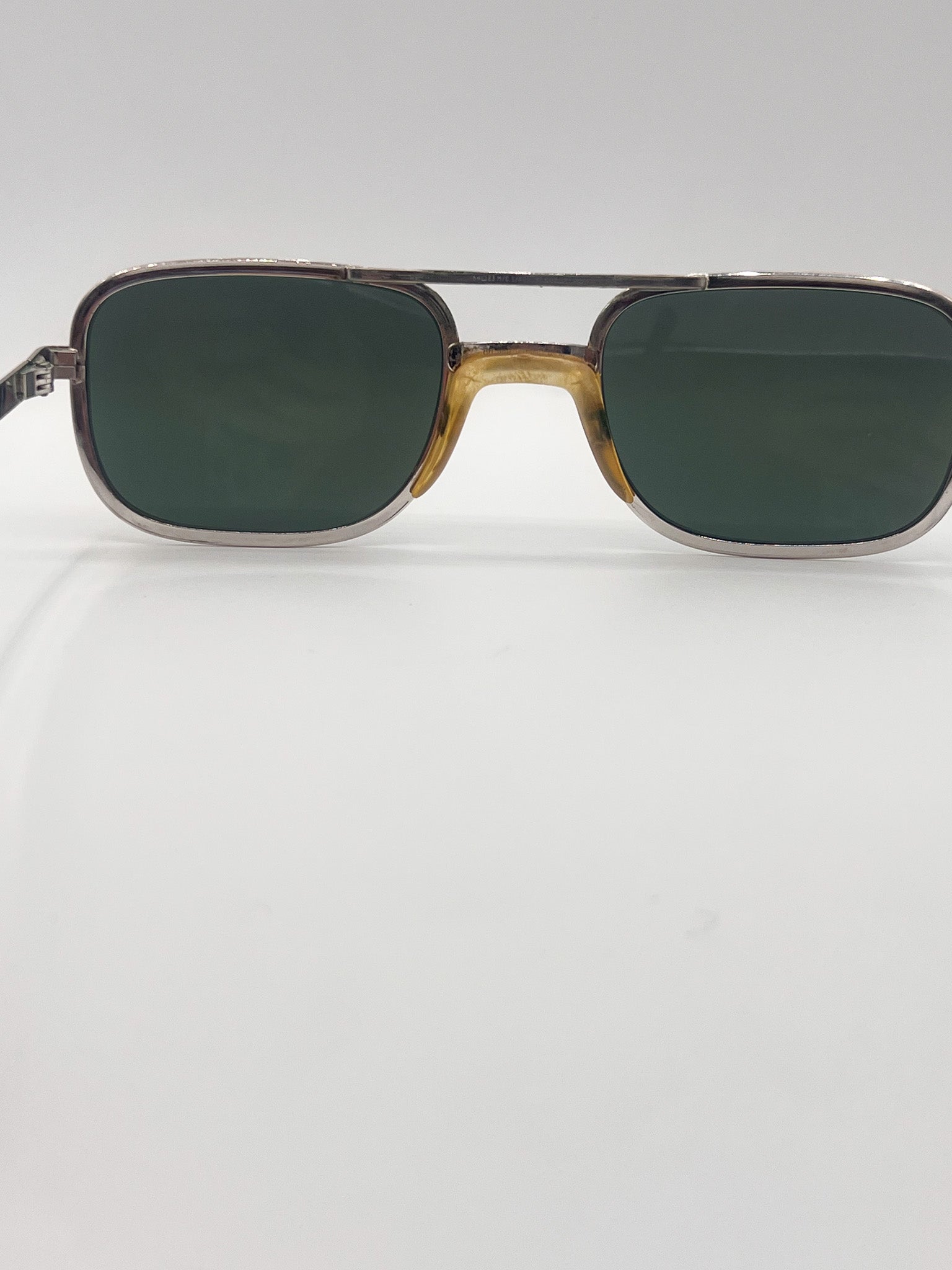Square aviators from the 1960s. 10k Rolled Gold — rolled gold is more valuable than gold-plated. It is a heavier material and contains more real gold.