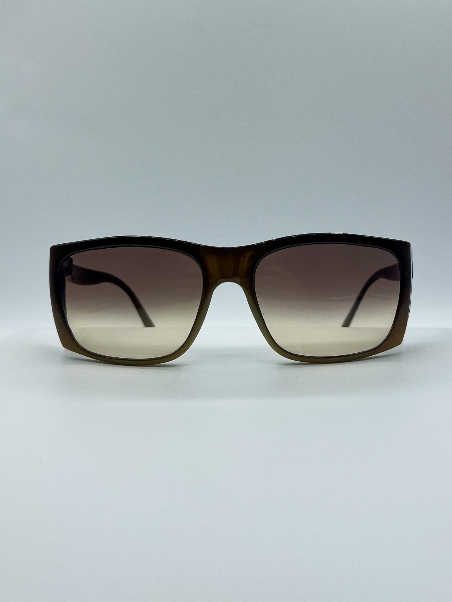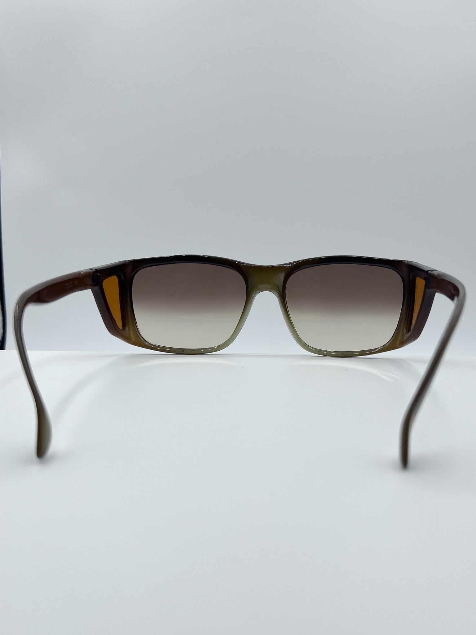 Brown acetate frames with side shields, wooden ribbed design in nose bridge & complete with brown gradient lenses.