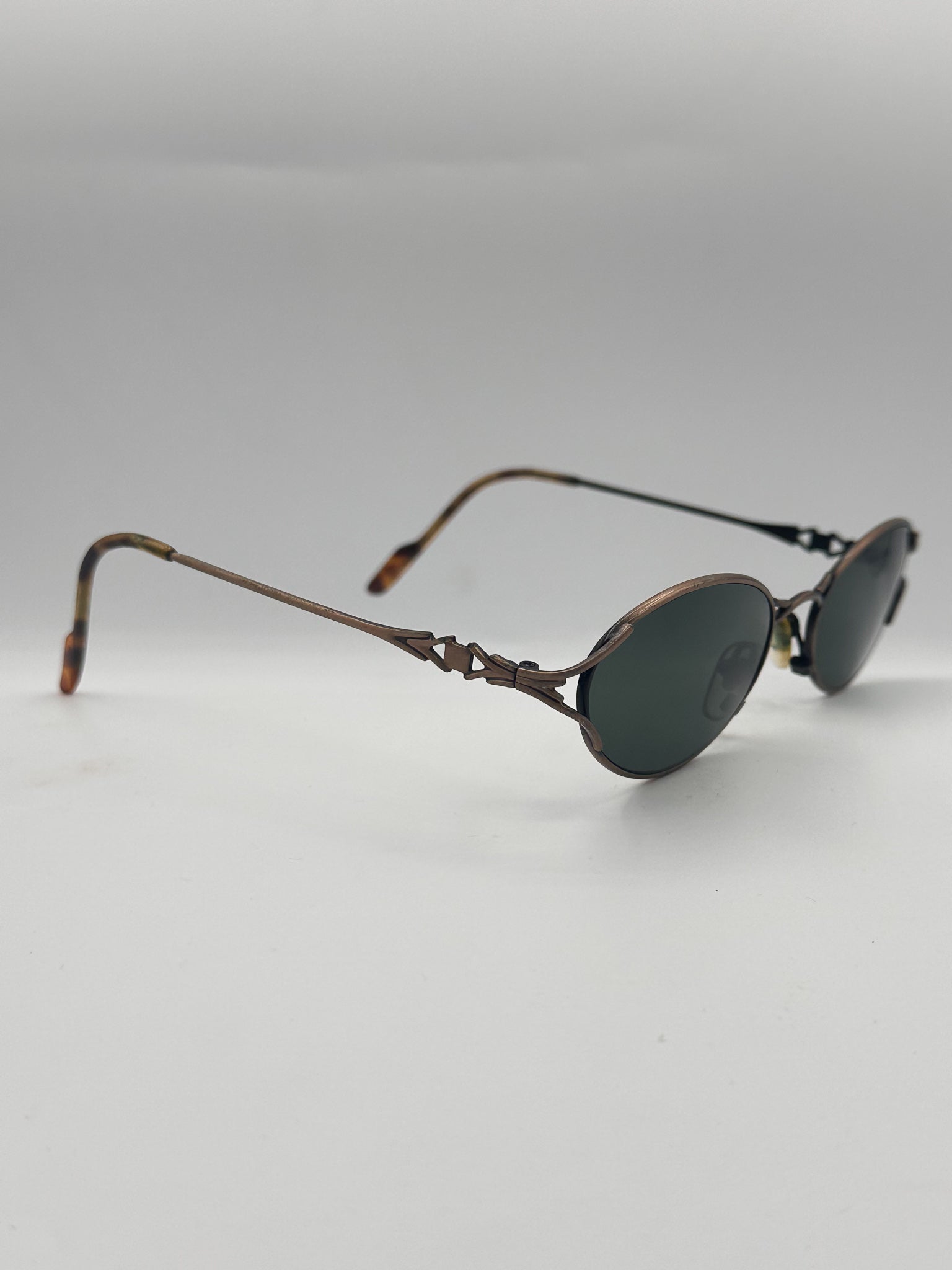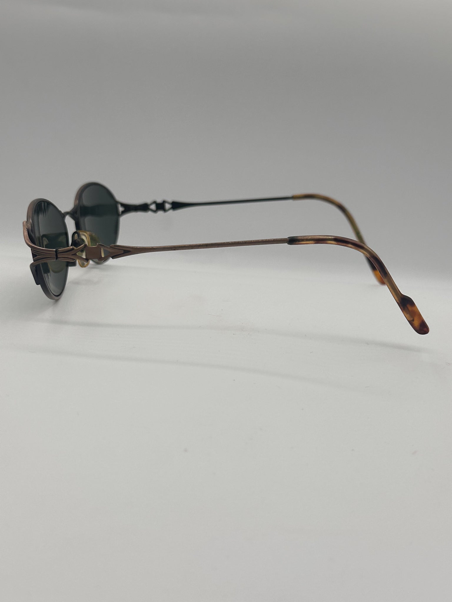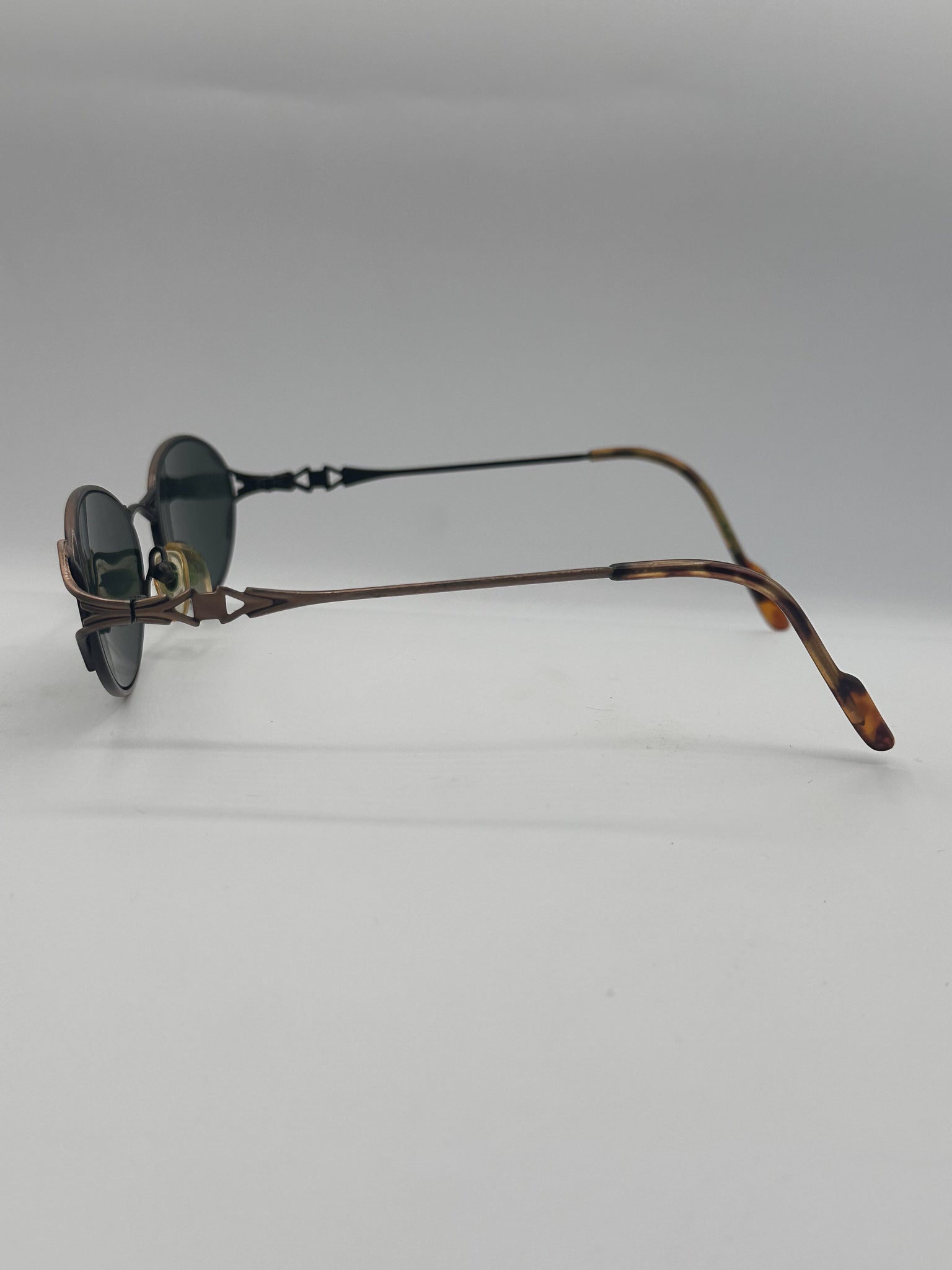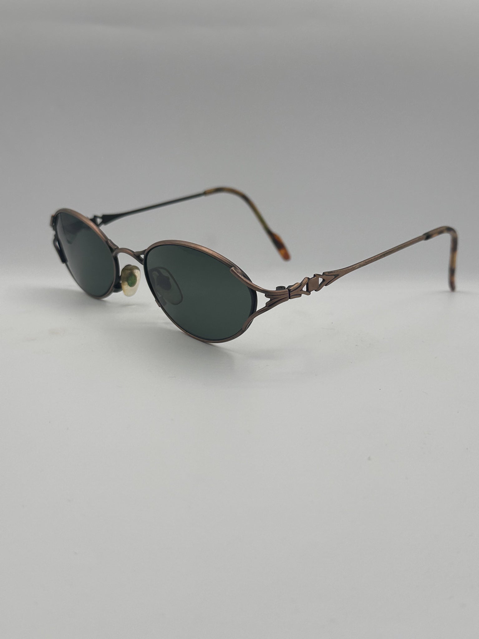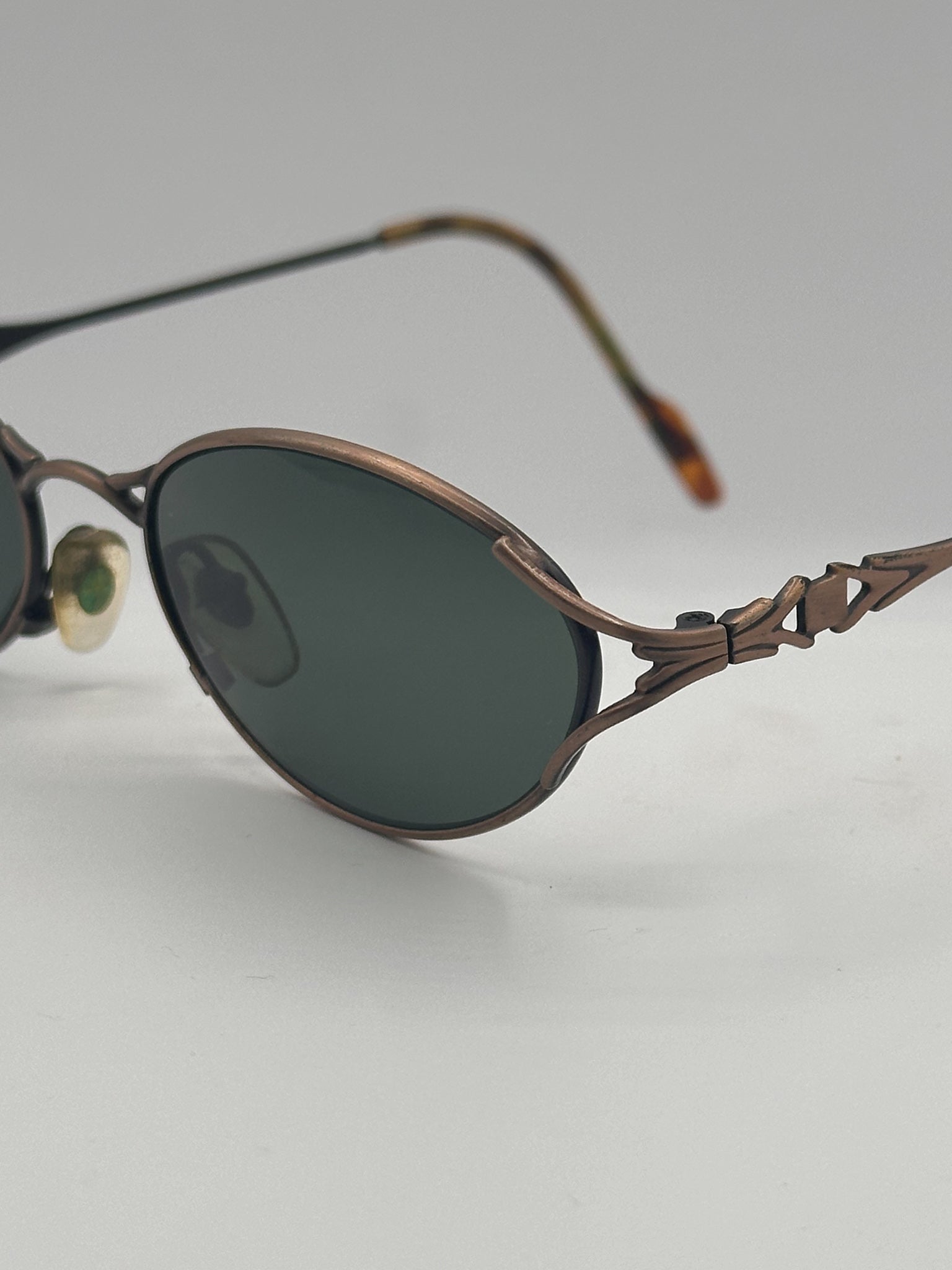 Beautiful detailing here on nose bridge and temples. Nice polarized lenses to give you the best UVA protection. High quality materials.