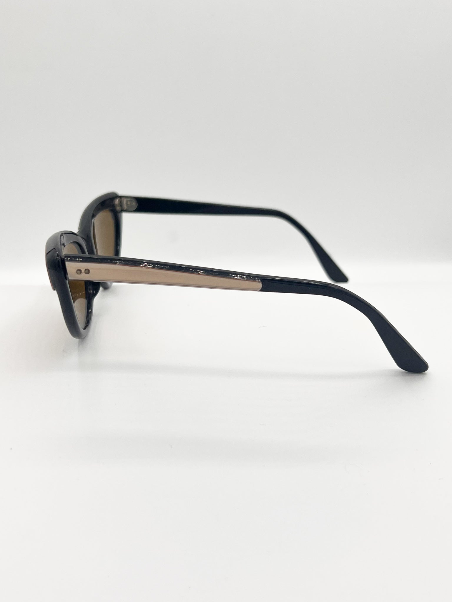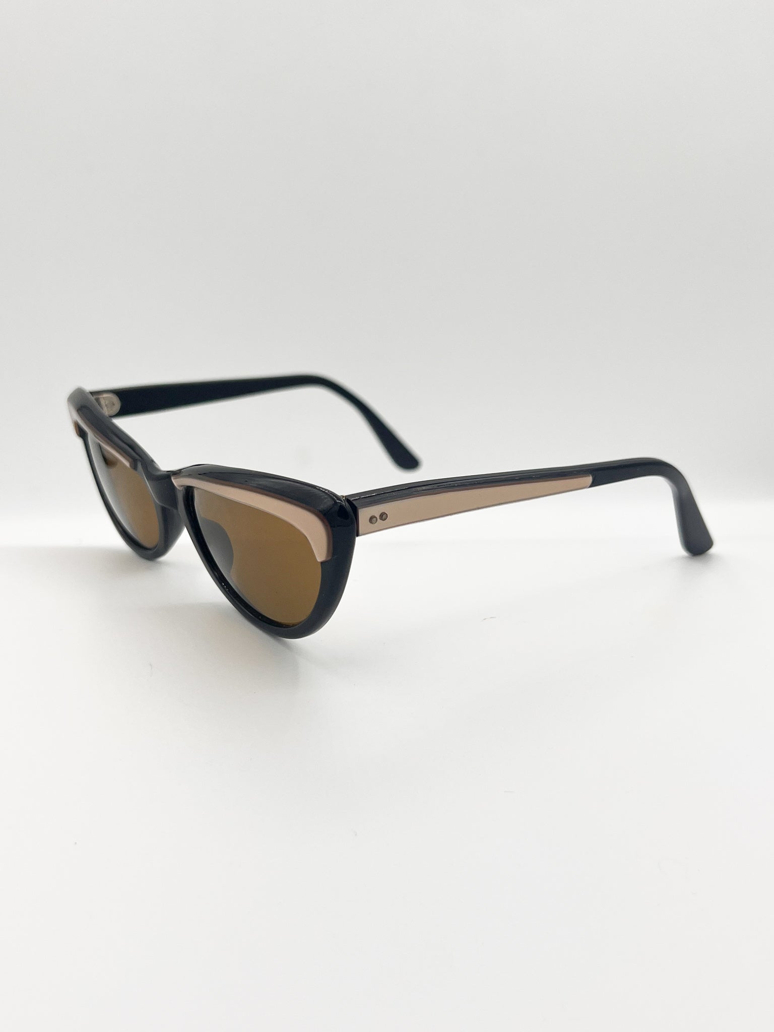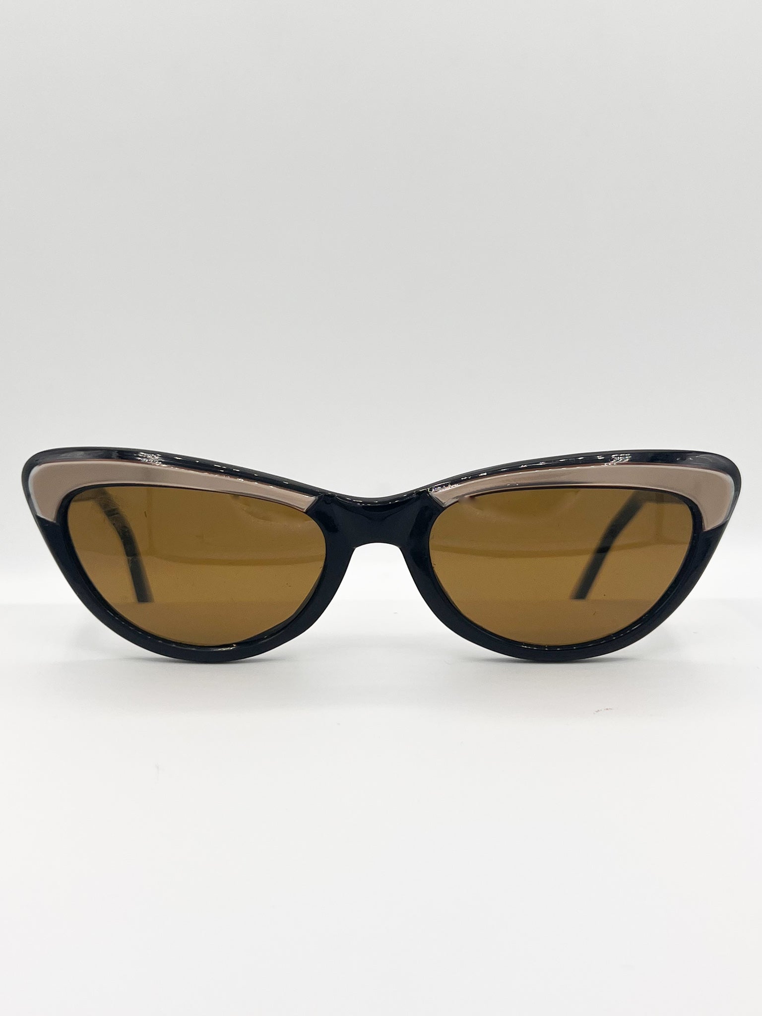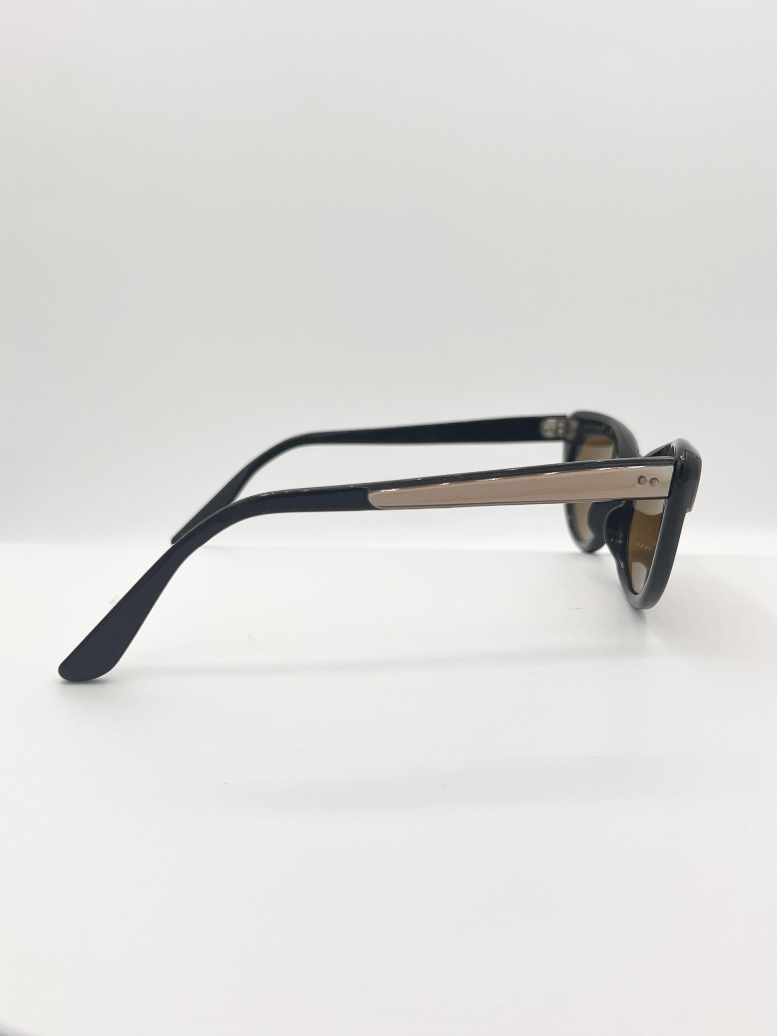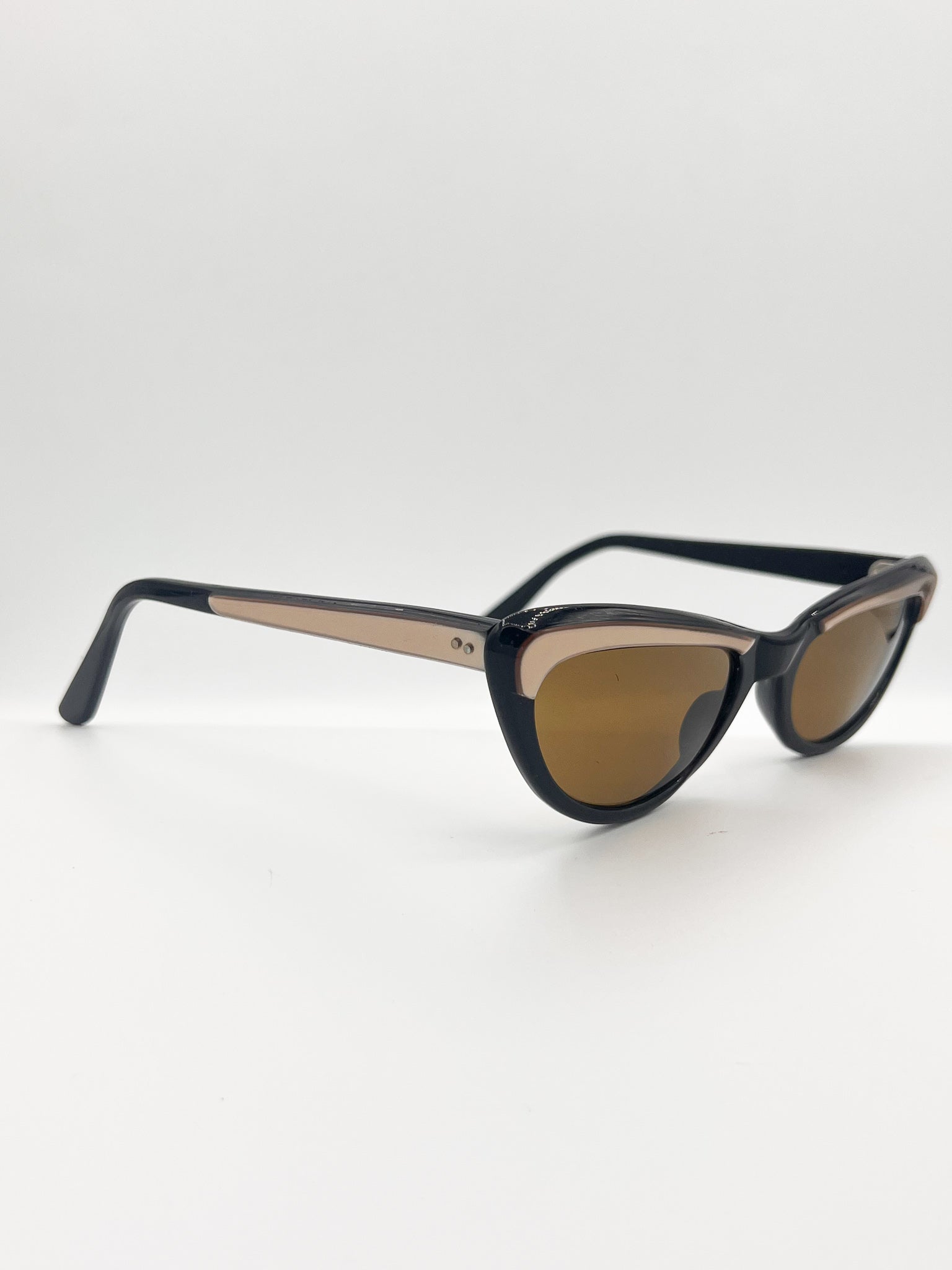 These acetate-layered frames were made in France in the 1950s. Cat eye with a brow line, two defining traits of the 1950s glasses era.