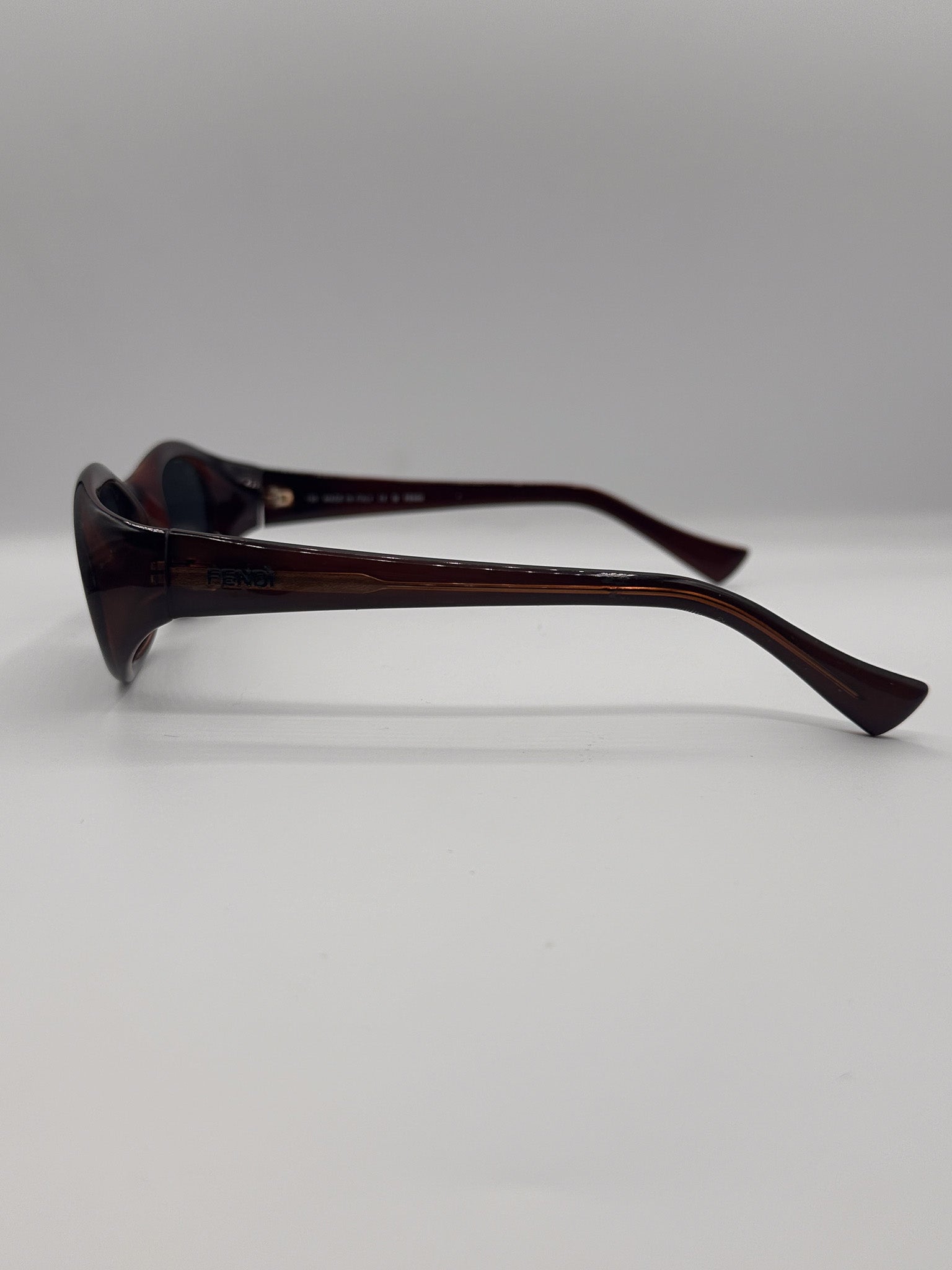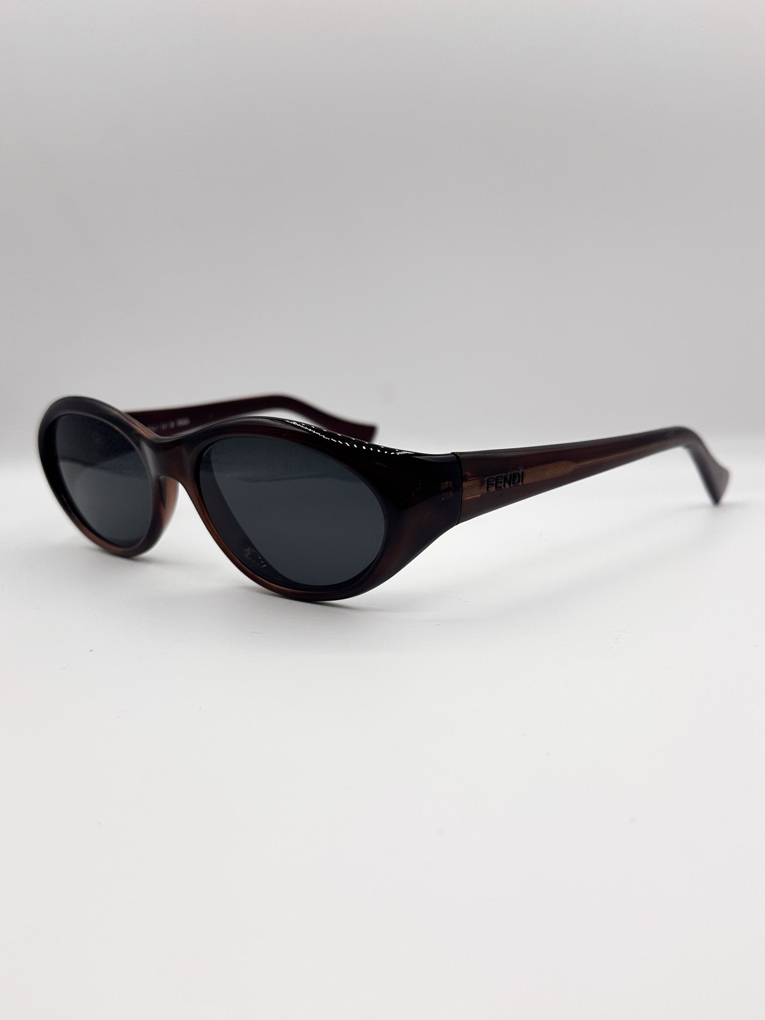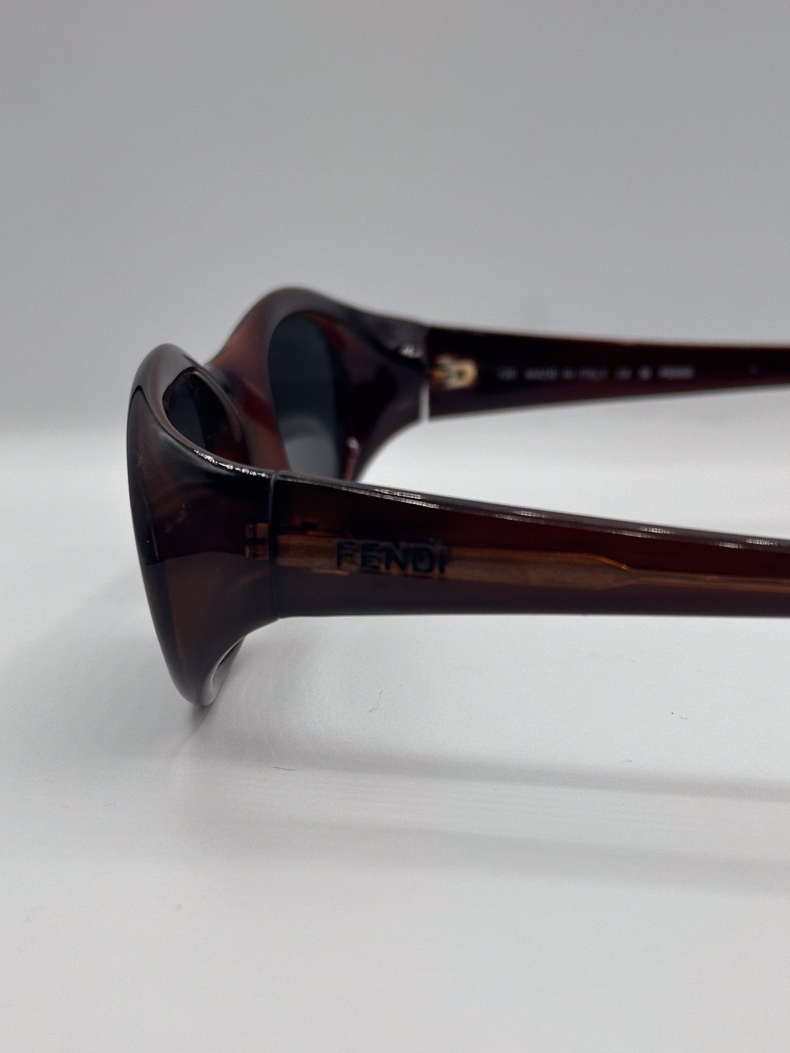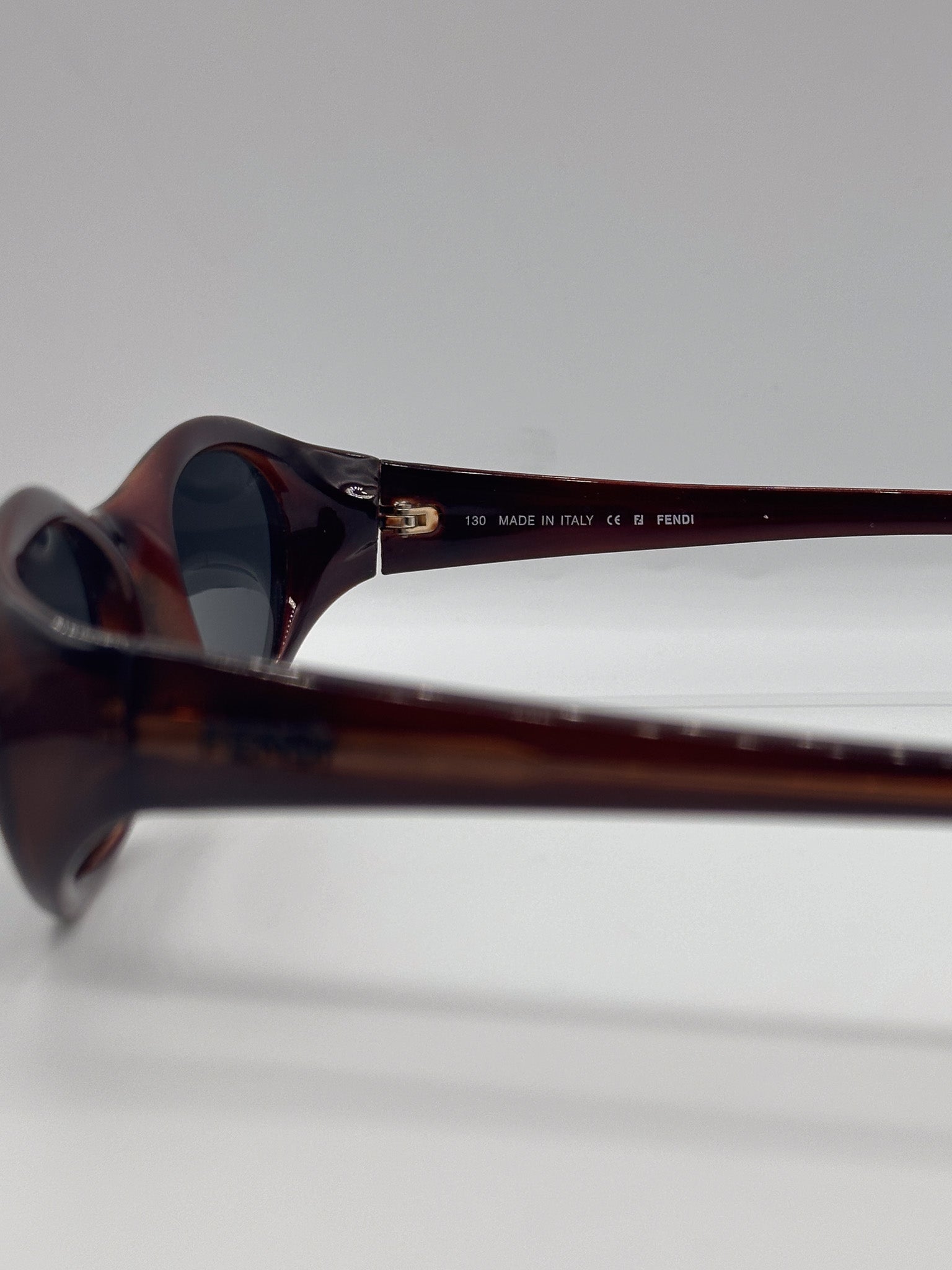 1980s Fendi frame. Rounded horn-rimmed geometric frame with brown polarized lenses. Acetate with fine, glossy finish. Vintage yet feels brand new.
