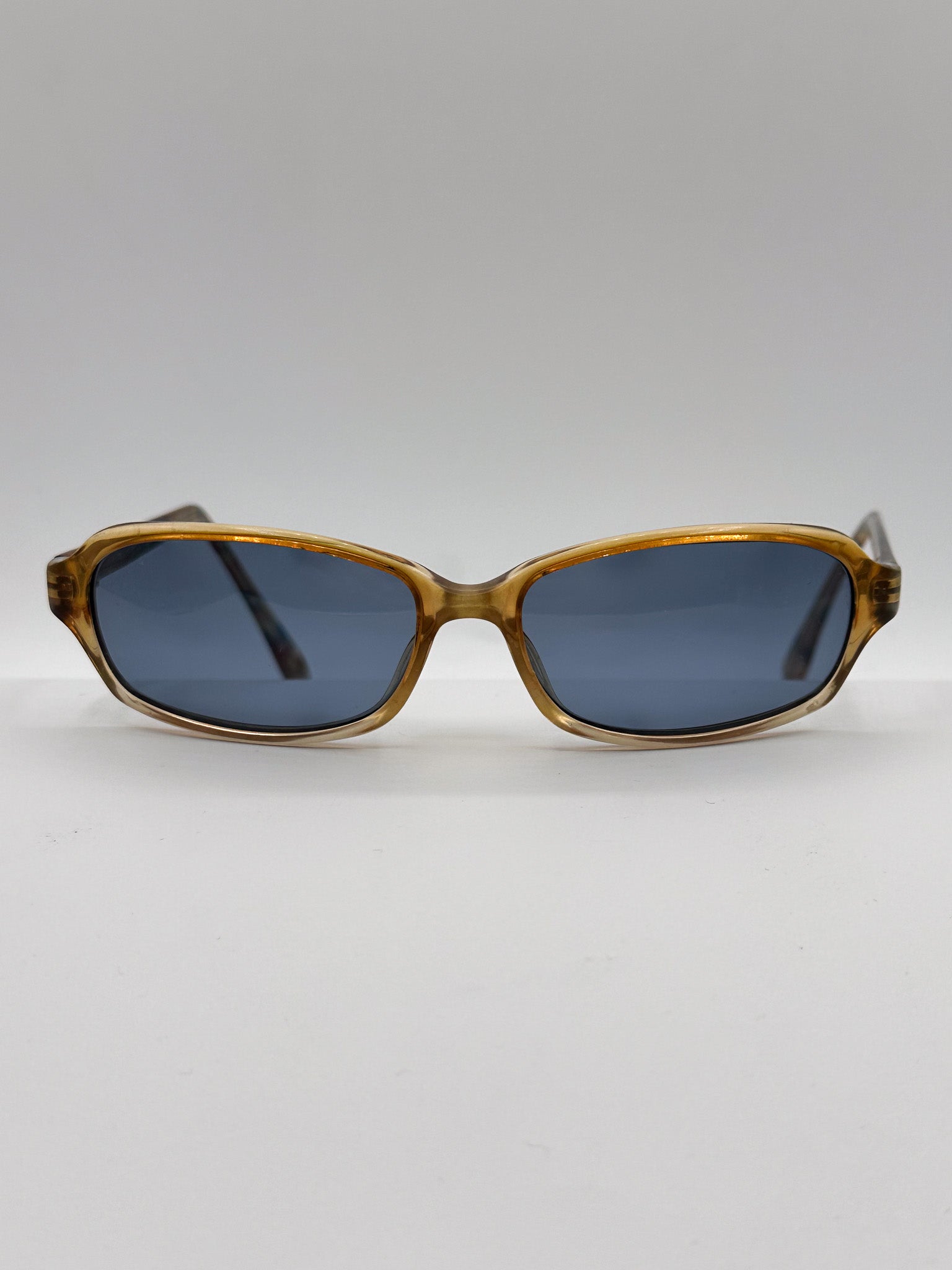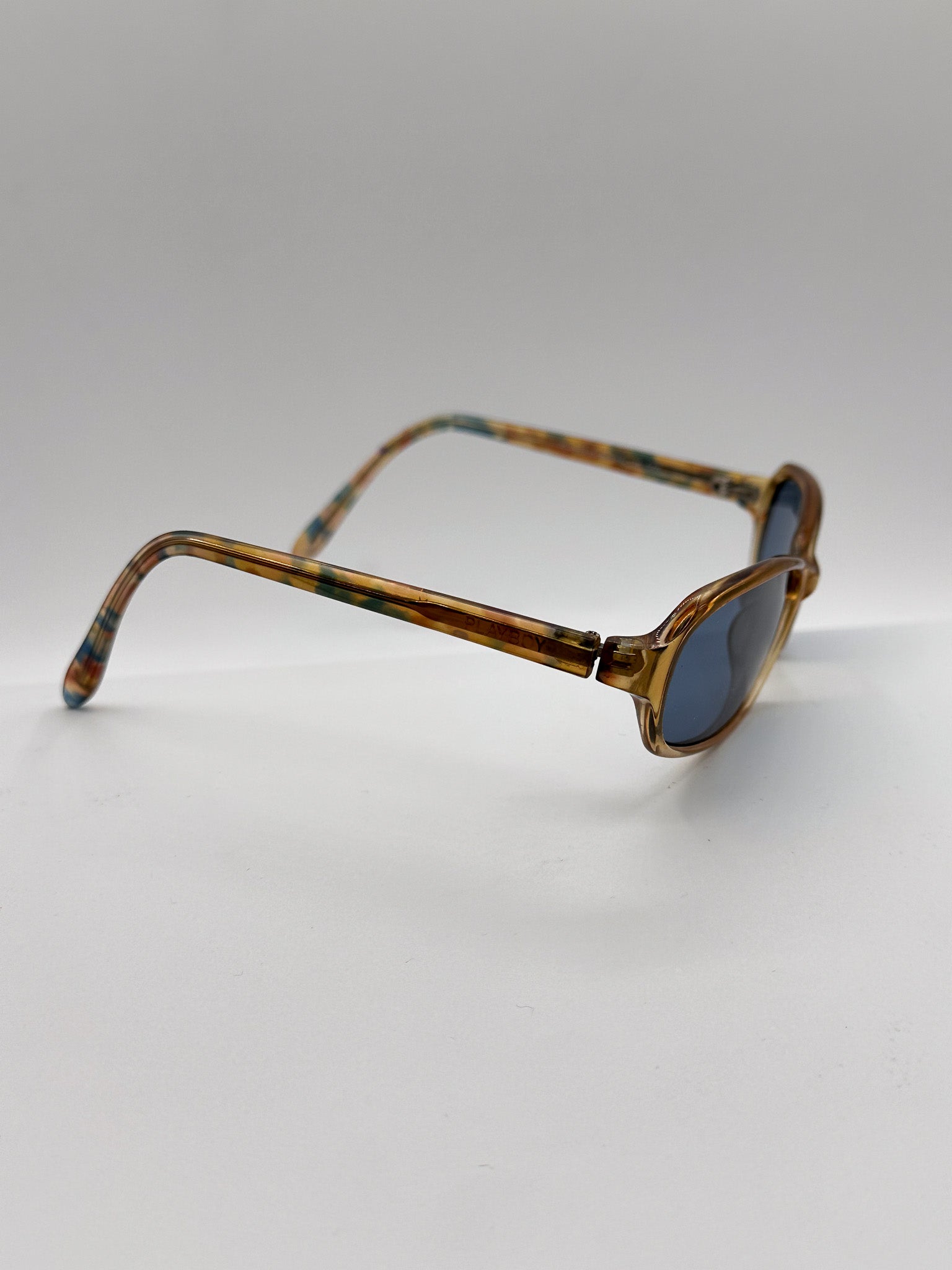 Yellow and blue merge together to create this distinctive, stylish rectangle frame. Made of acetate, newly replaced CR-39 lenses. Scratch resistant and UV-protected.