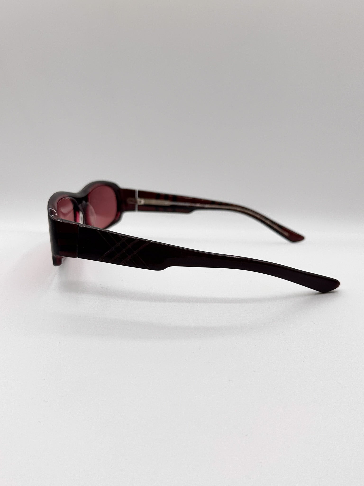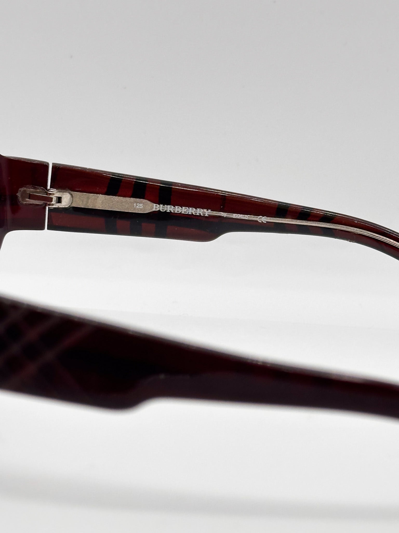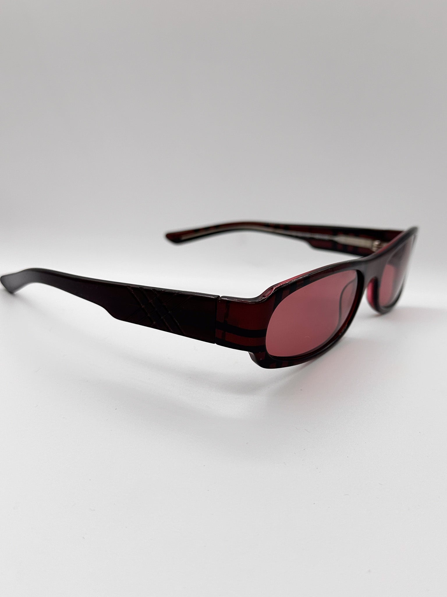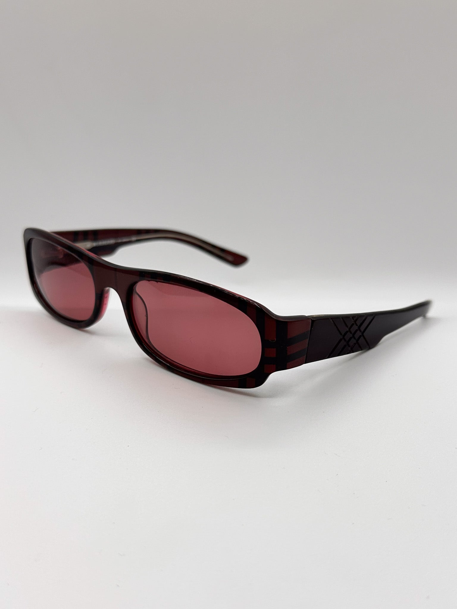 Early 2000s/late 1990s Burberry frame with brand new burgundy lenses. Made in Italy, remodeled in NYC.