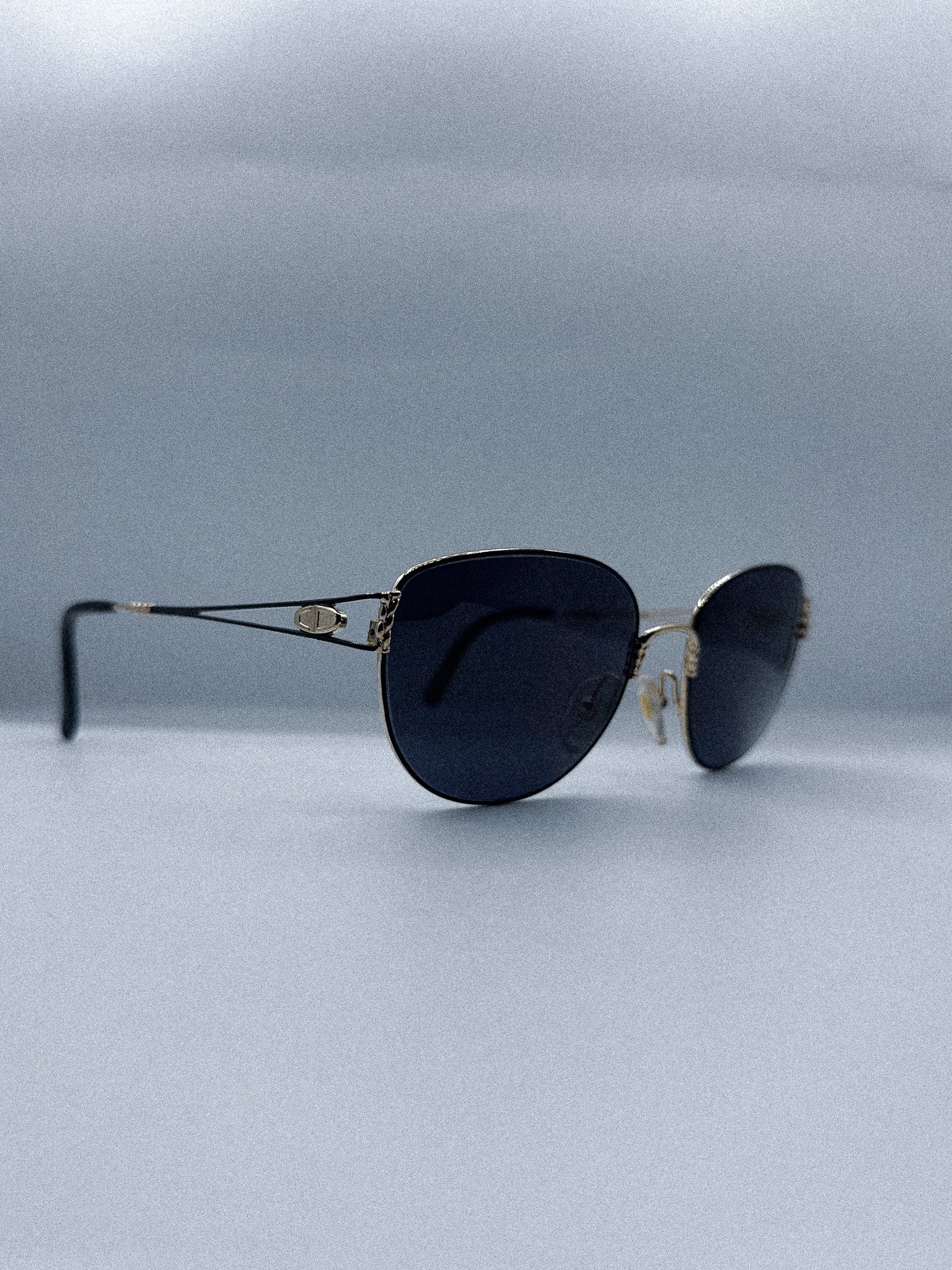 Made during Dior’s golden era of eyewear innovation, this frame reflects the elegance of 1980s femininity with a dash of sharp edge. The butterfly silhouette and deep navy lenses feel timeless, while the gold monogram arms mark it unmistakably Dior. Crafted by Optyl, whose lightweight yet resilient materials revolutionized high-end eyewear during the decade.