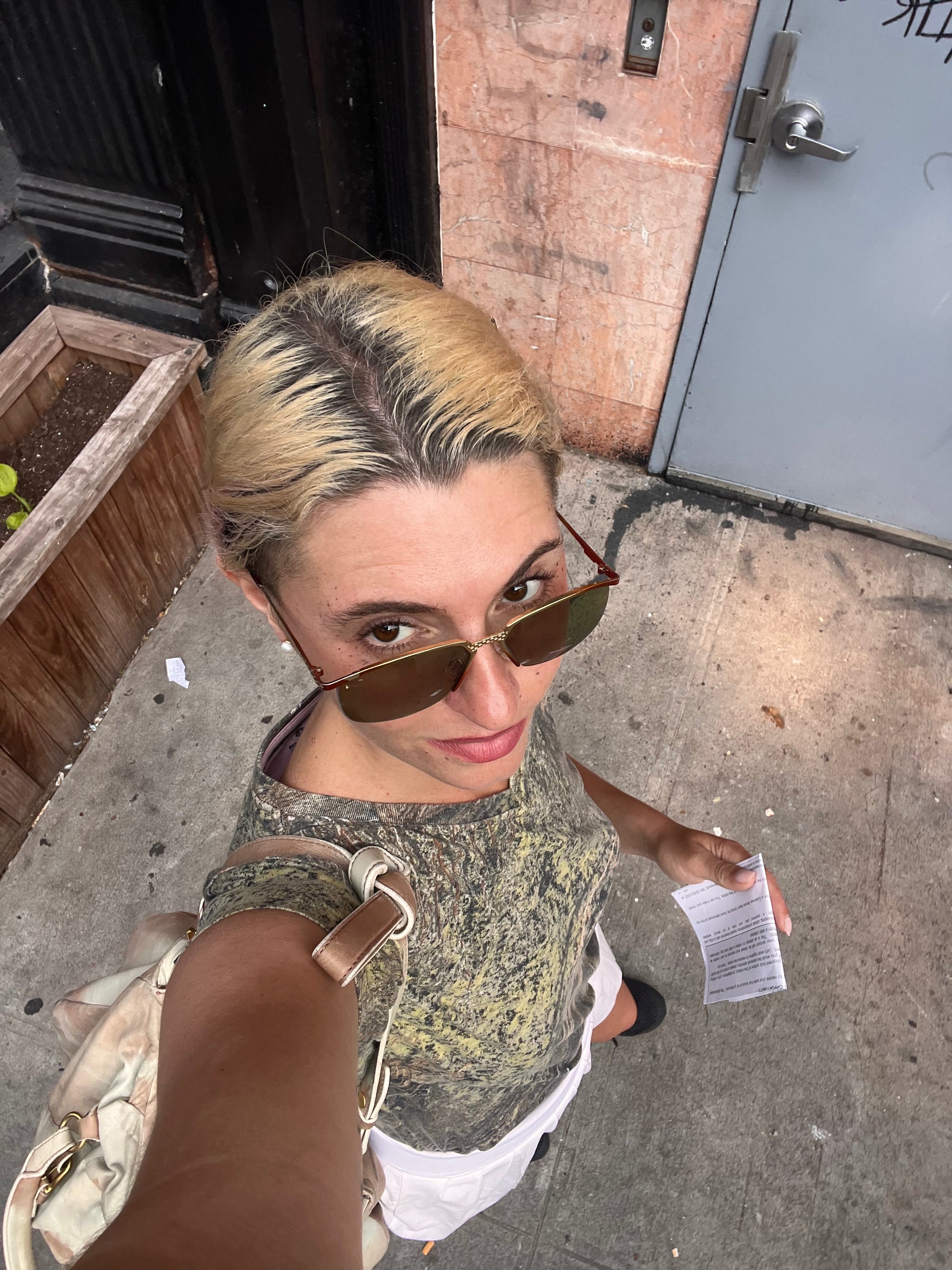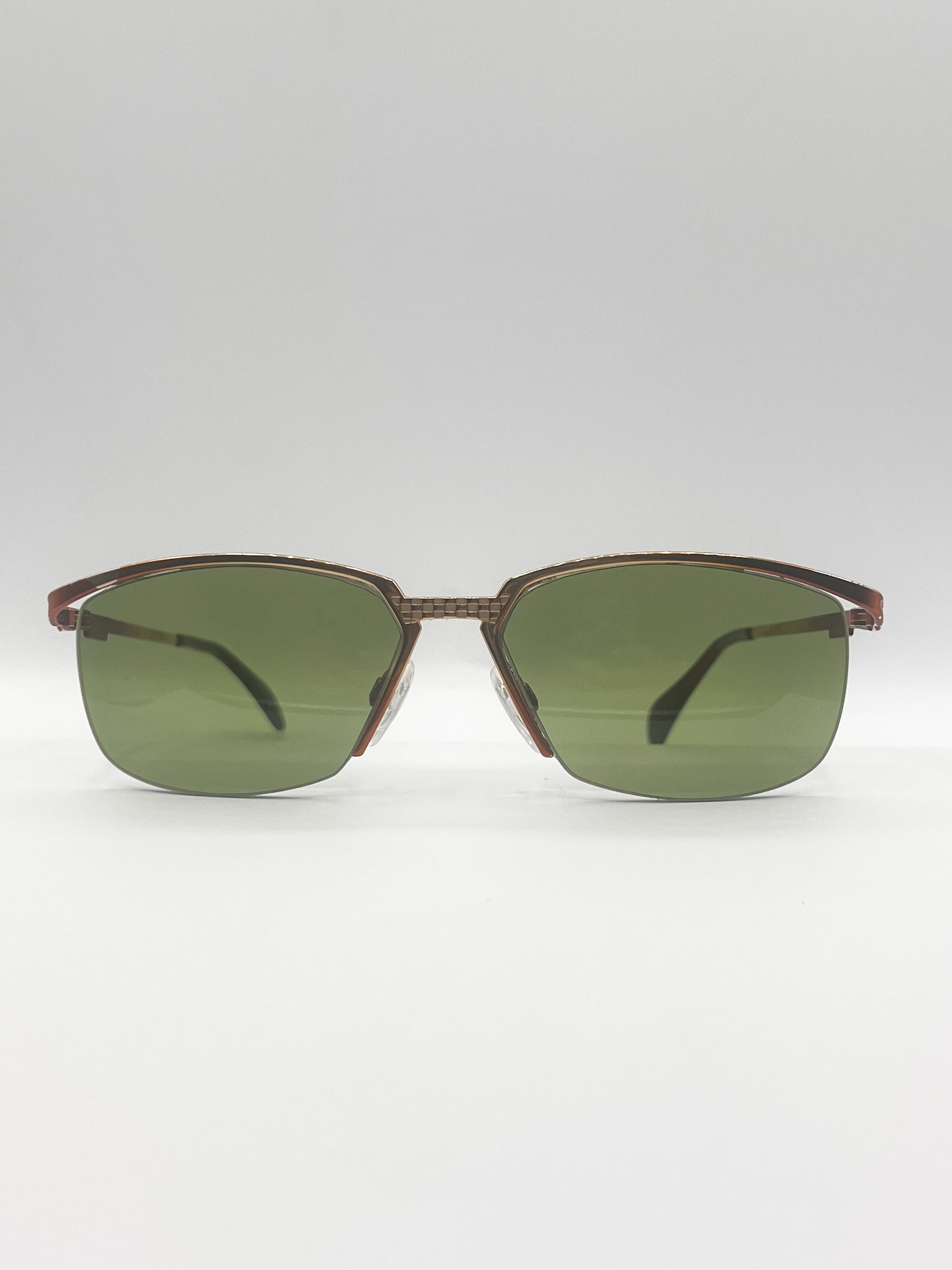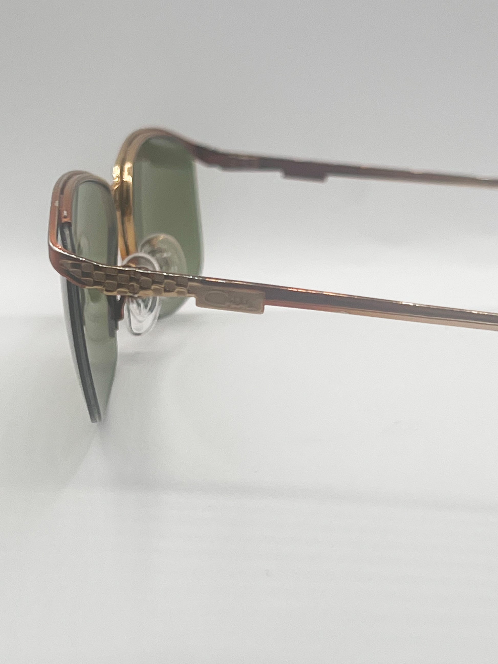 Gold-plated Cazal frame with chainlink nose bridge. Bottle green lenses remodeled in NYC 2023.