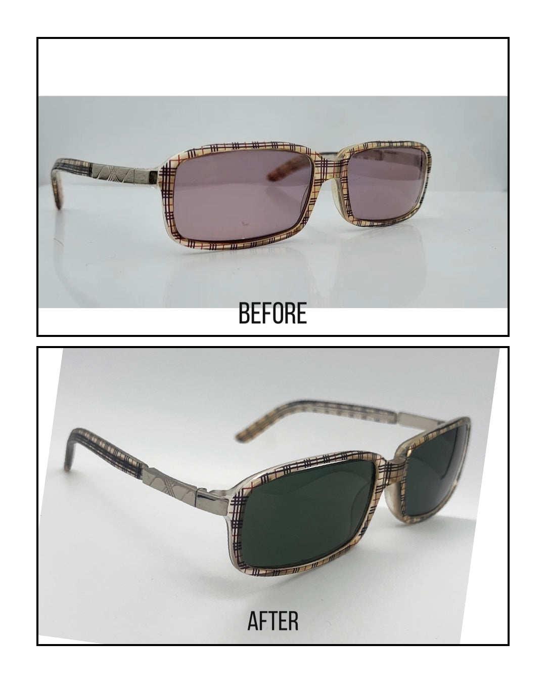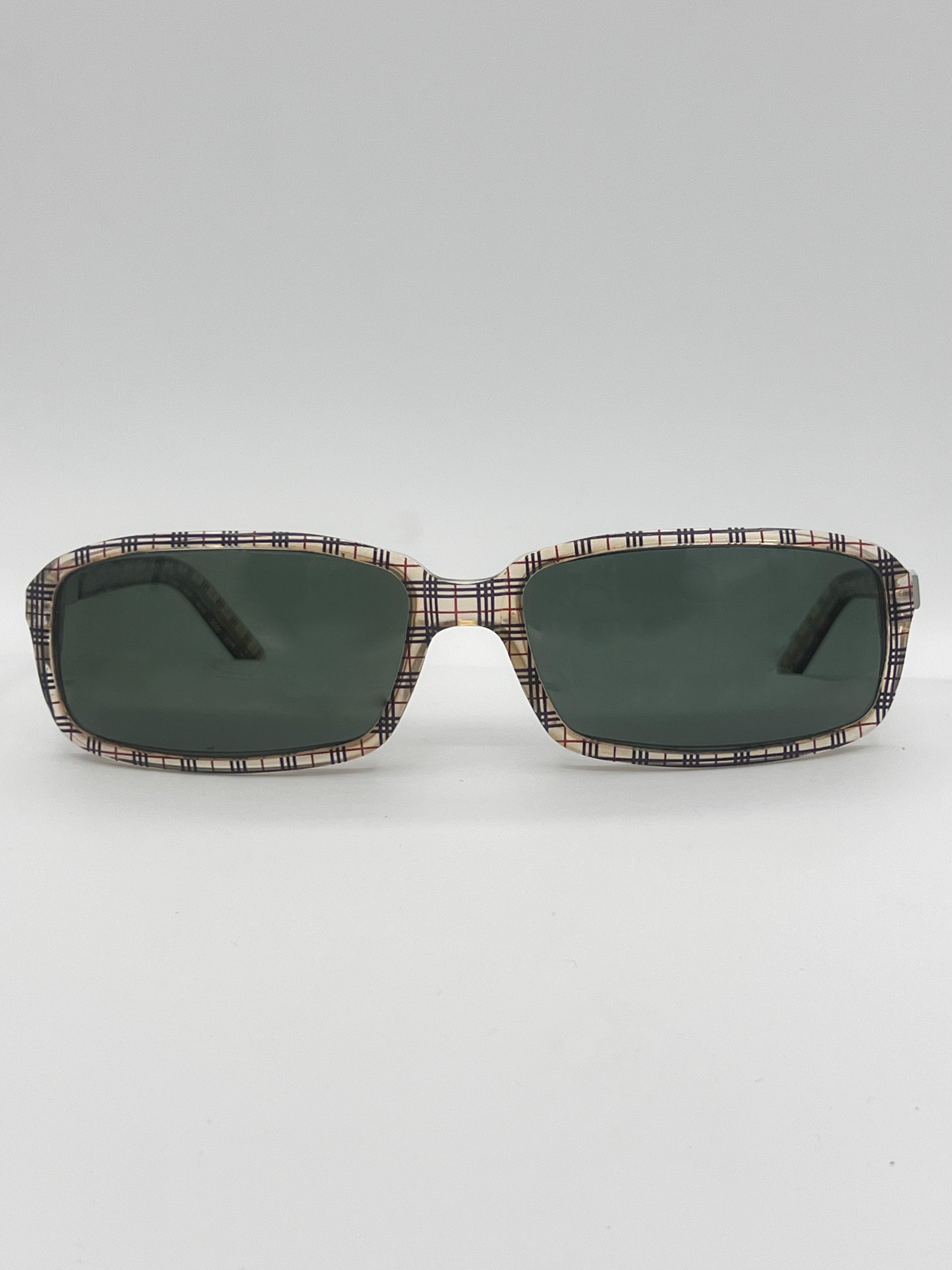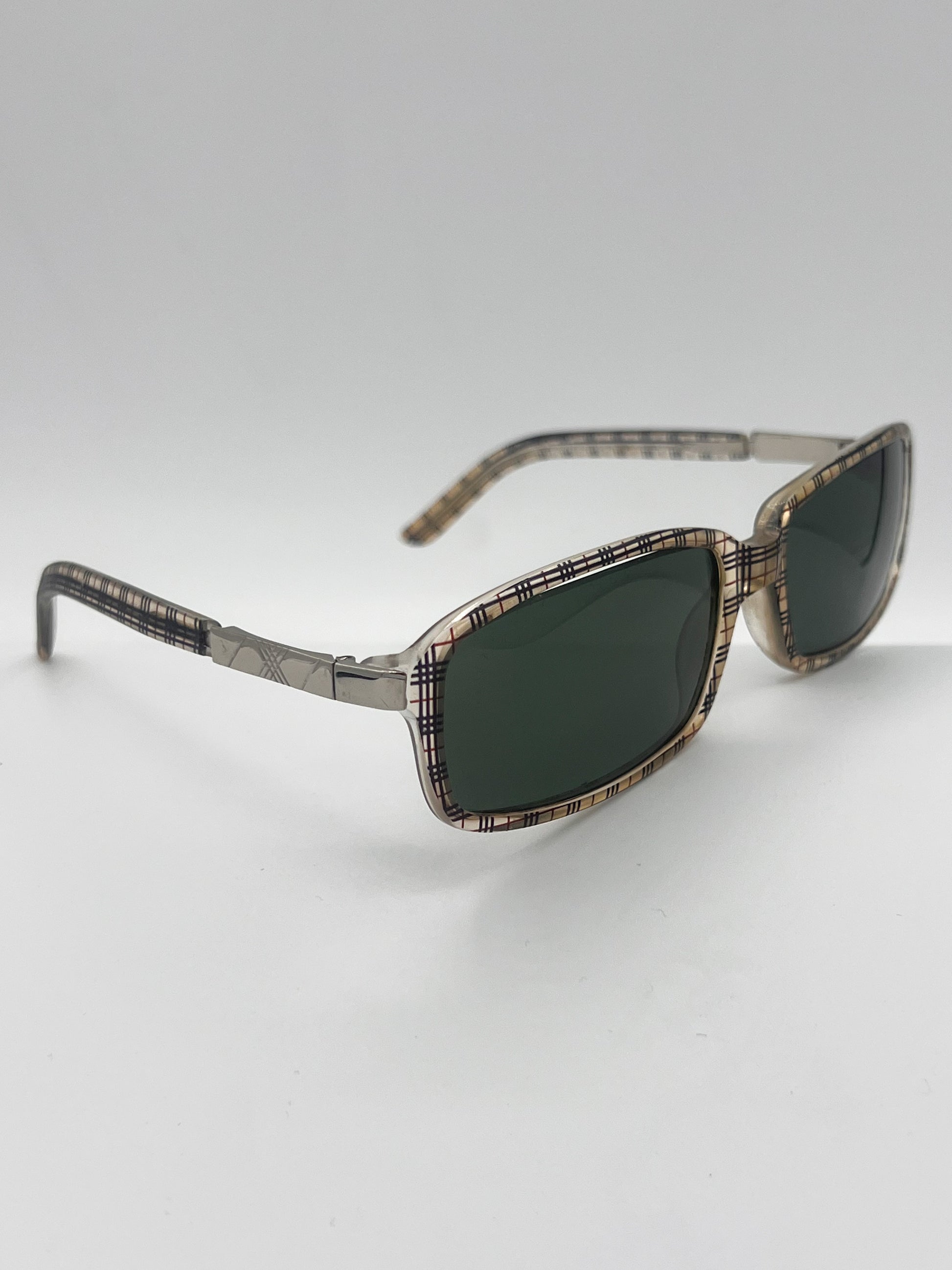 Late 1990s/early 2000s novacheck rectangle glasses with green polarized lenses. Wider frame for masculine face.