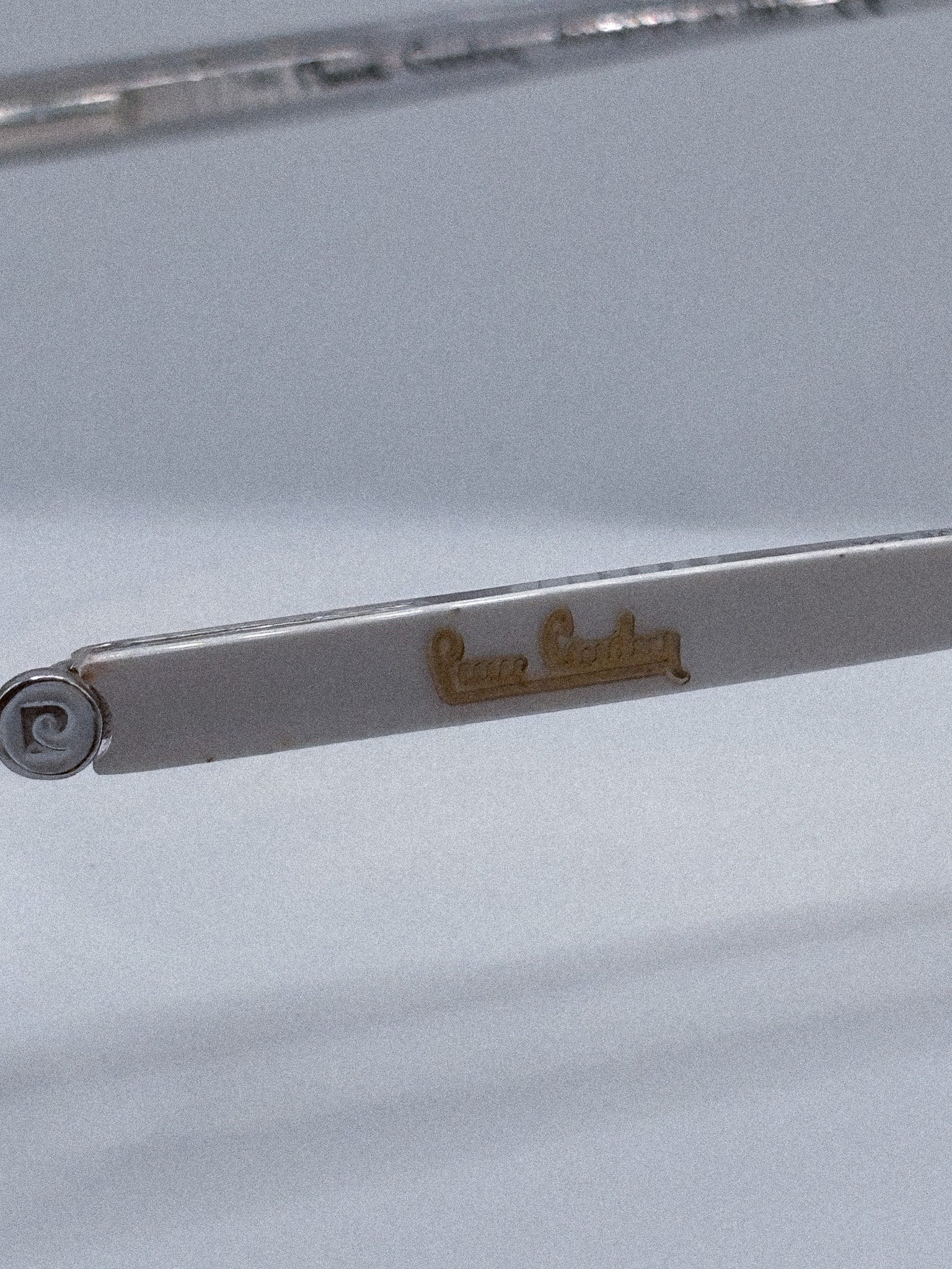 These 1990s Pierre Cardin eyeglasses showcase an elegant interplay of geometry and minimalism, reflecting the refined Italian approach to design from the era. The clear lenses highlight the meticulous frame construction, while subtle lines and contours convey a quiet sophistication that balances intellect and style.
