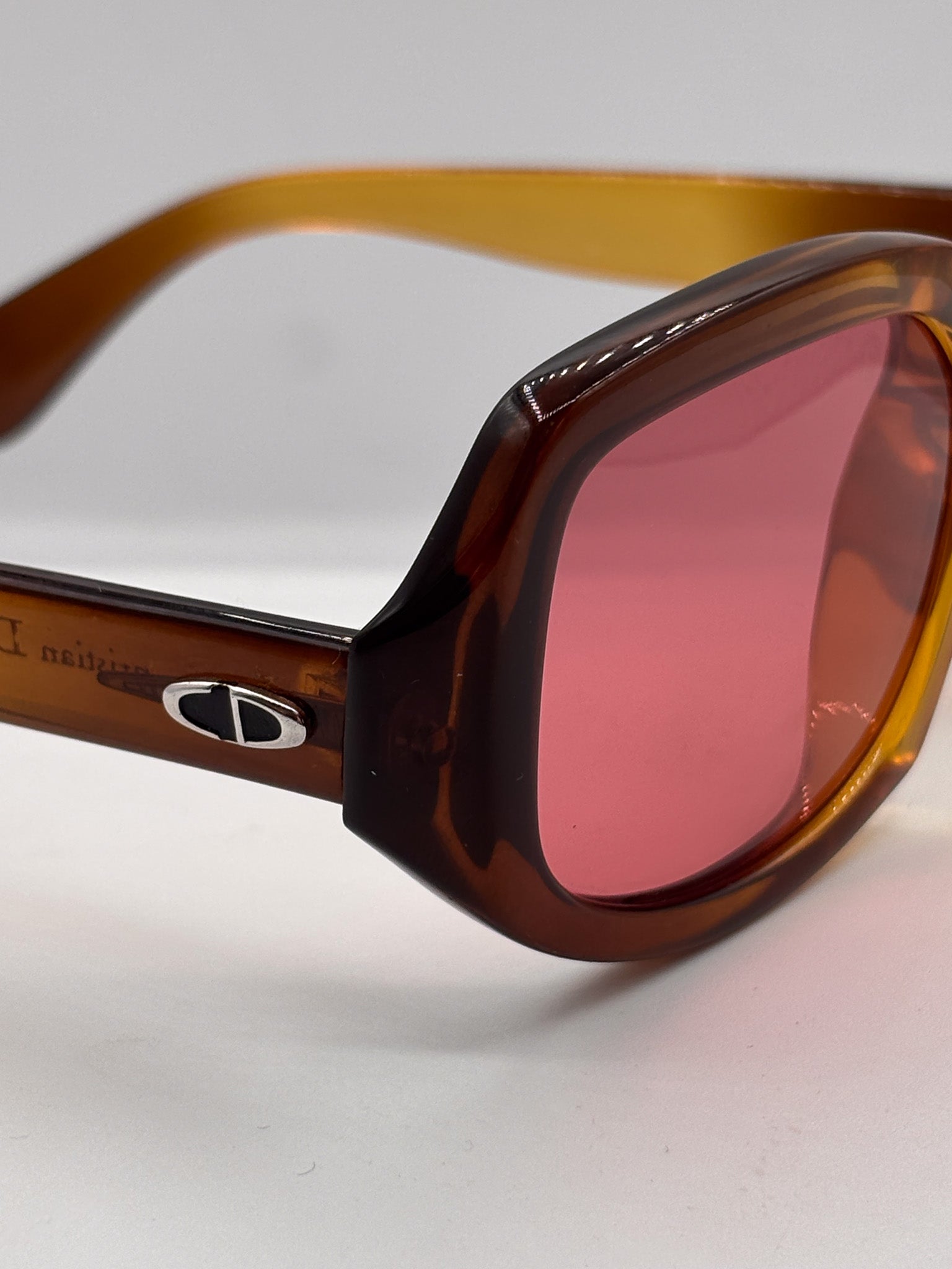 Original brown lenses add a warm vintage tint—evoking a time when eyewear was as much about attitude as it was about function. The design is daring yet refined, a perfect example of Dior’s legacy in shaping high-fashion accessories.