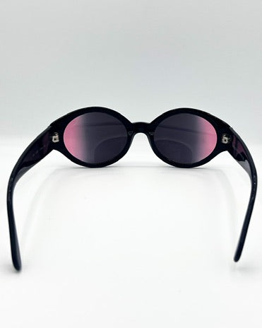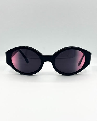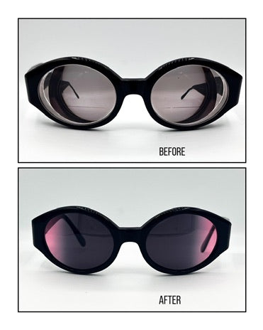Vintage Anne Klein oval frames with pink-to-black gradient lenses. We tried to replicate the shape of the original prescription lenses in the glasses. Made in Italy, remodeled in NYC.
