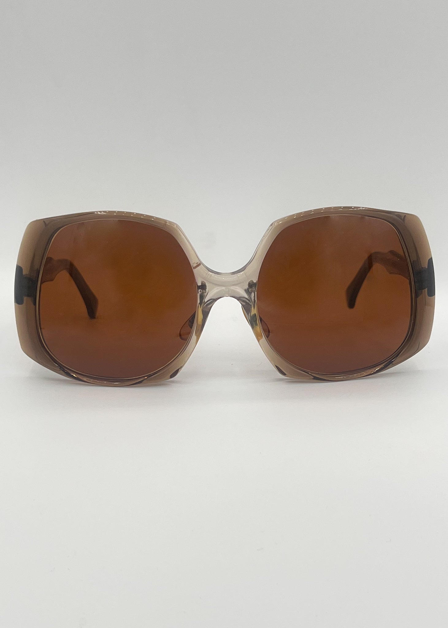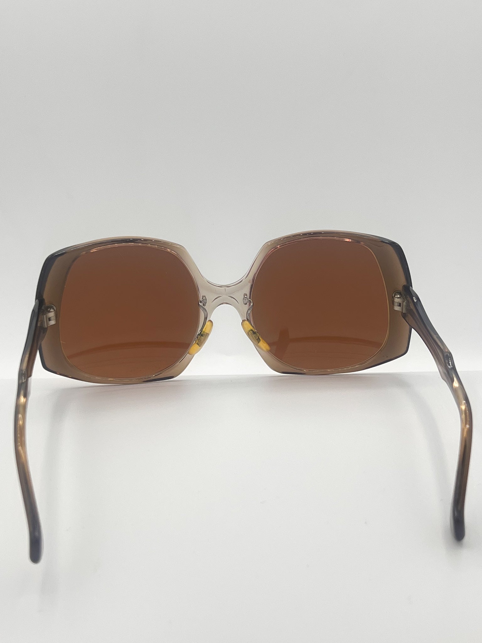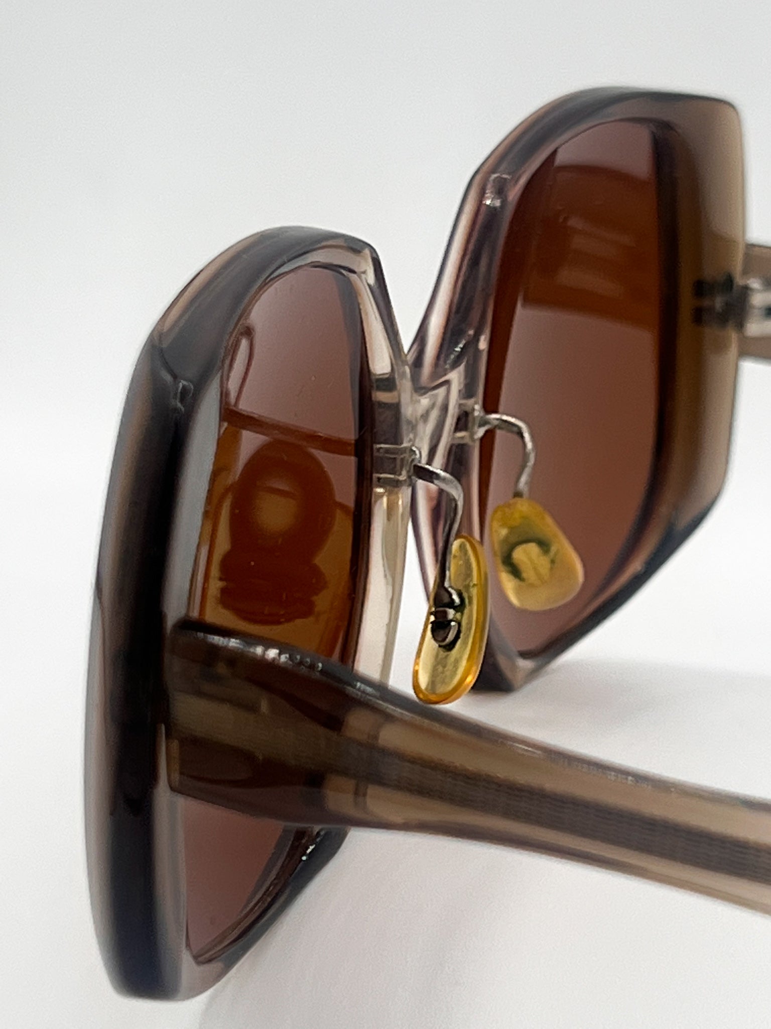 1970s oversized rounded frames with nose pieces. Brown to clear gradient with brown UVA lenses.