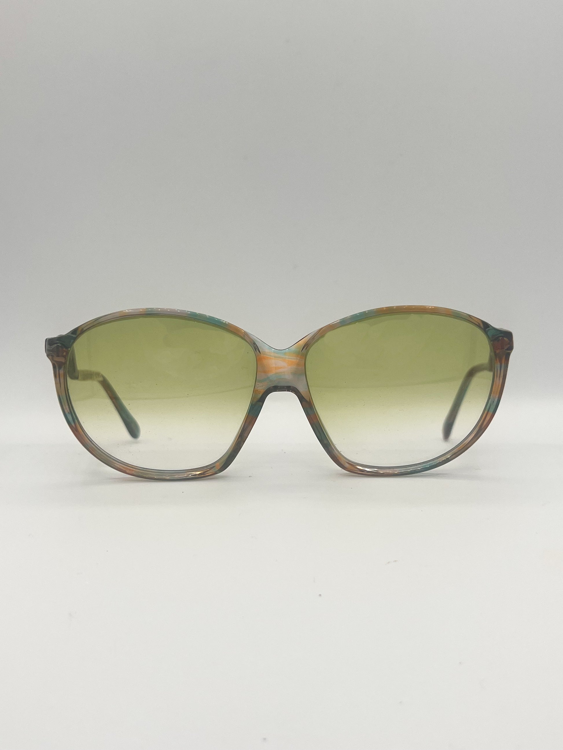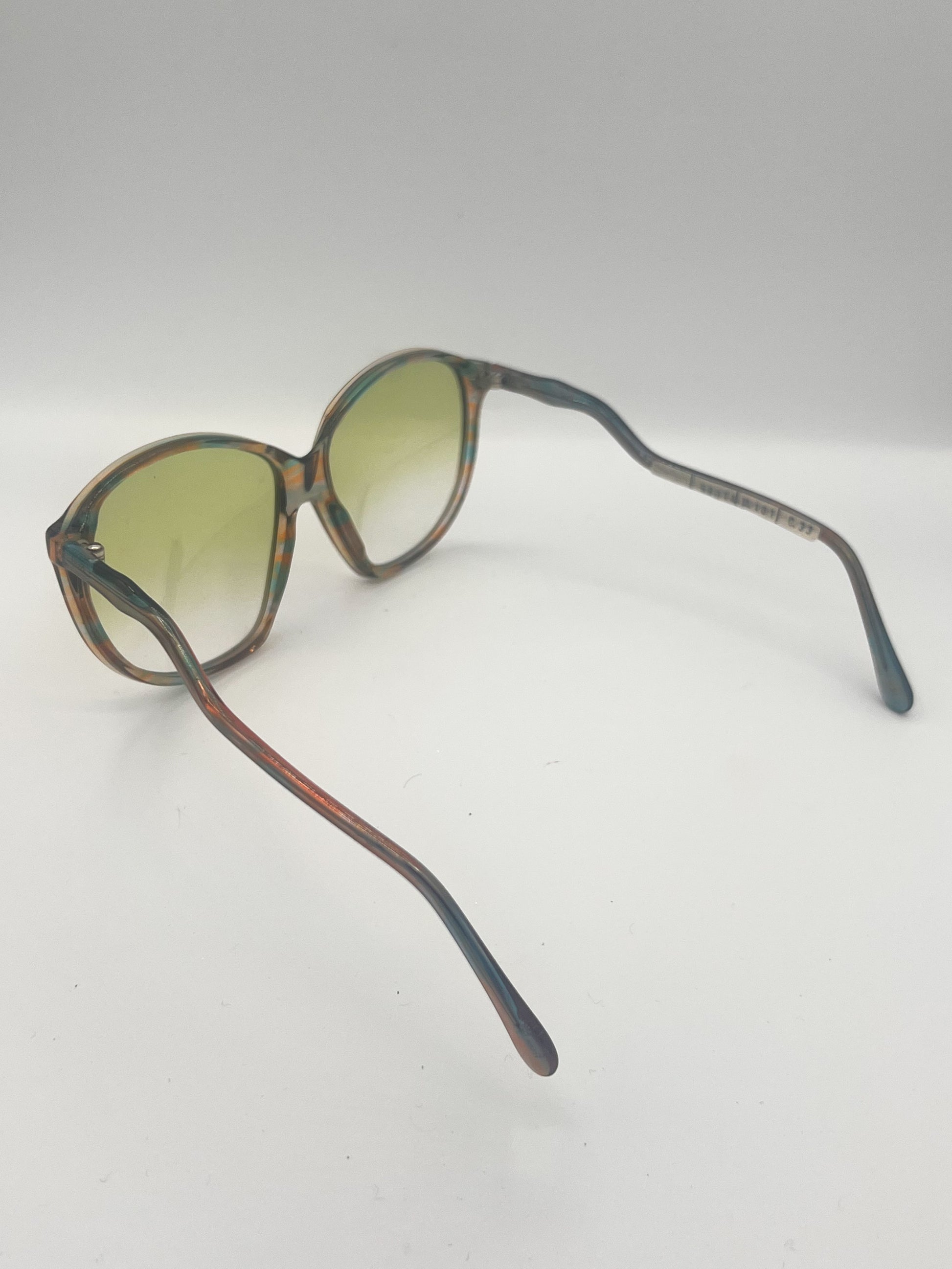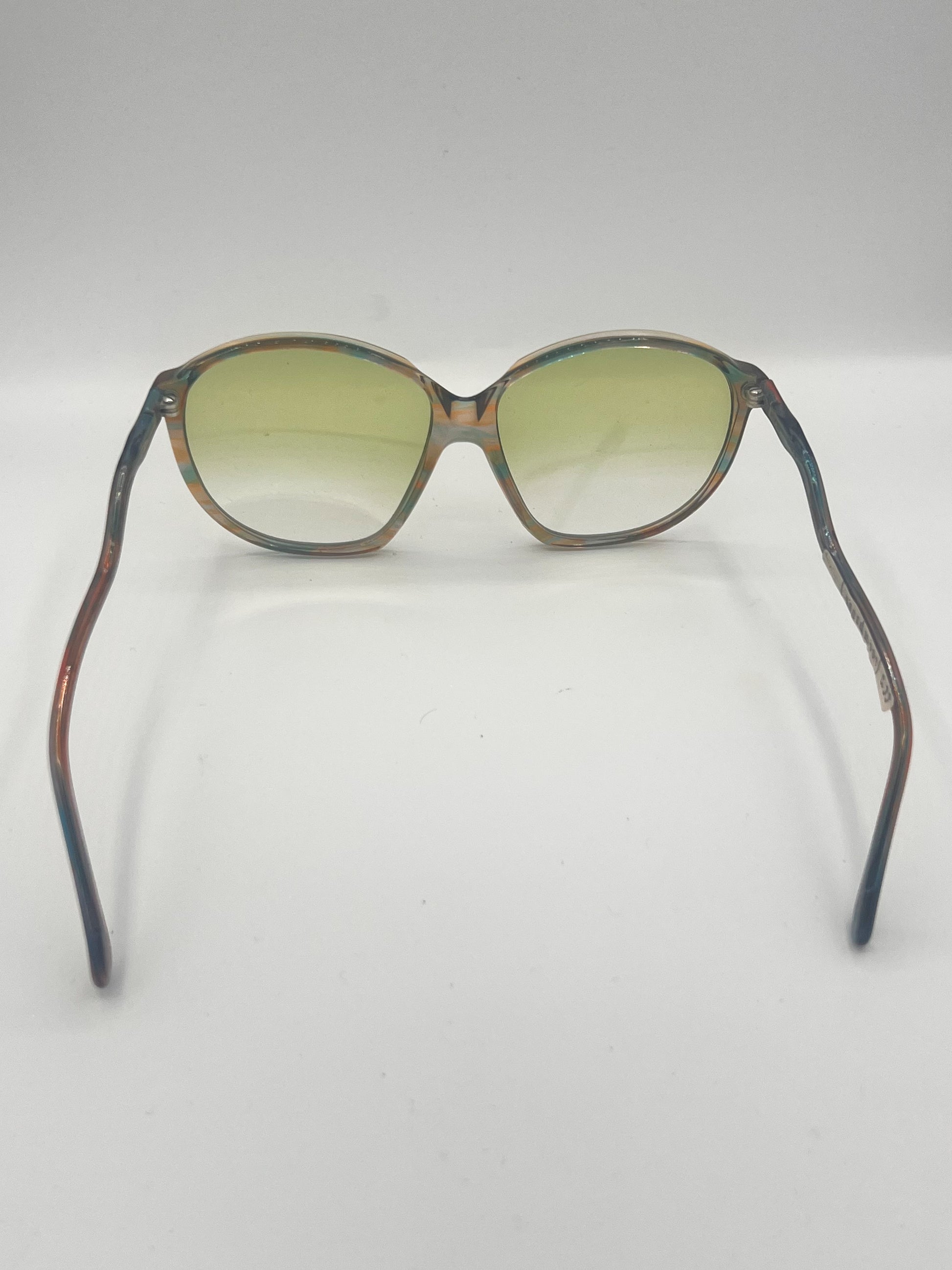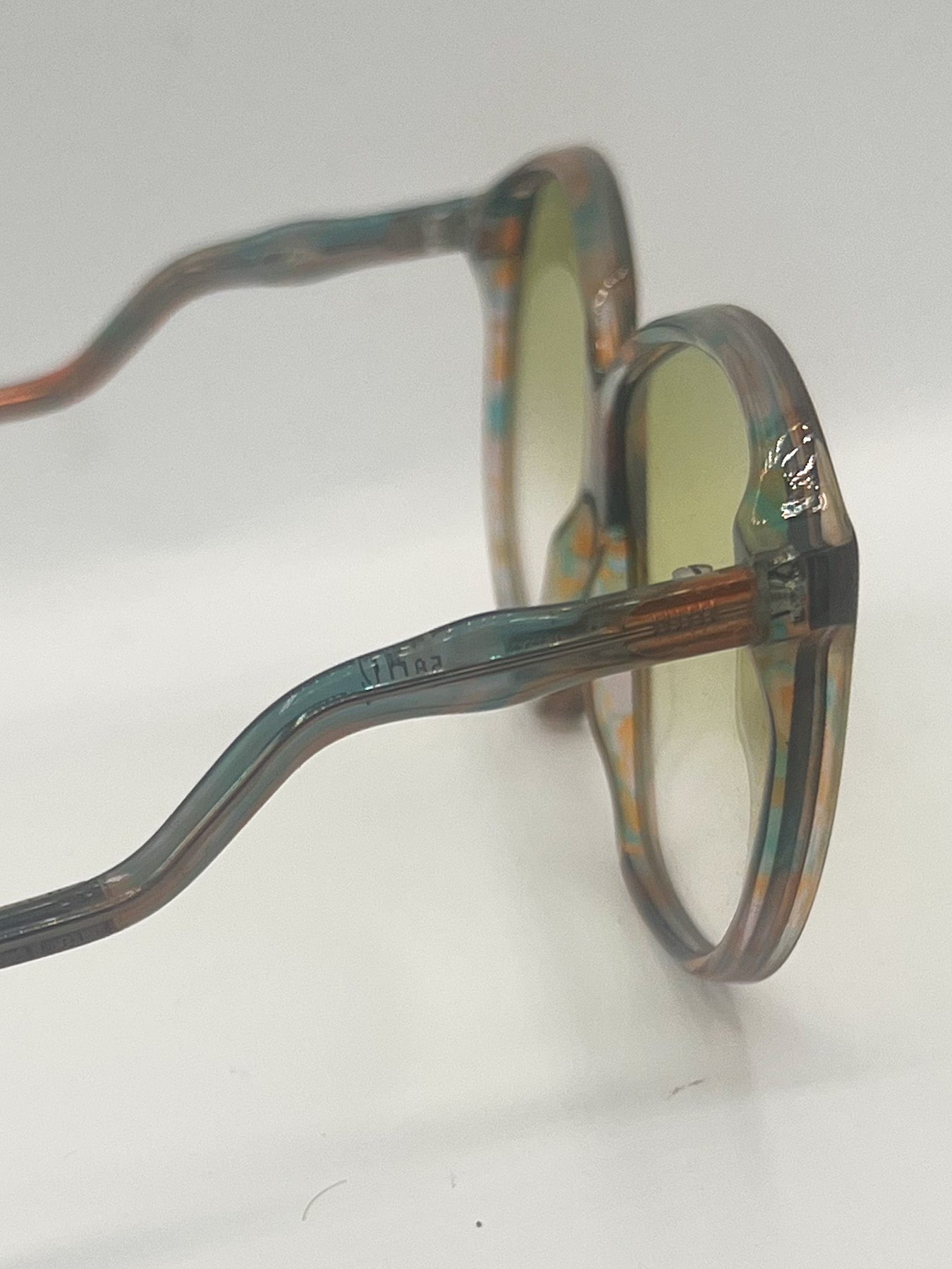 Playful frame silhouette with octagon eye pieces and green lenses to complete a full body color scheme. No signs of wear or visible flaws.