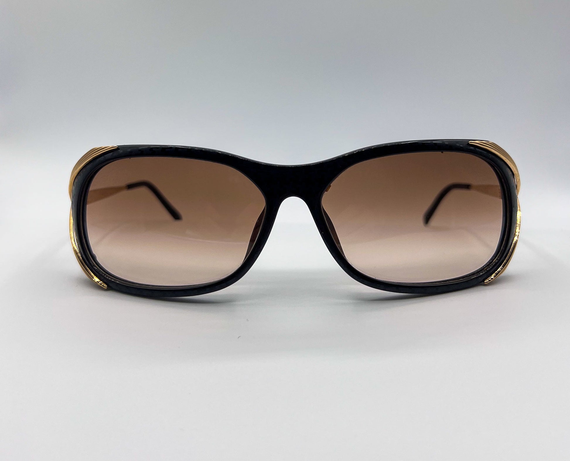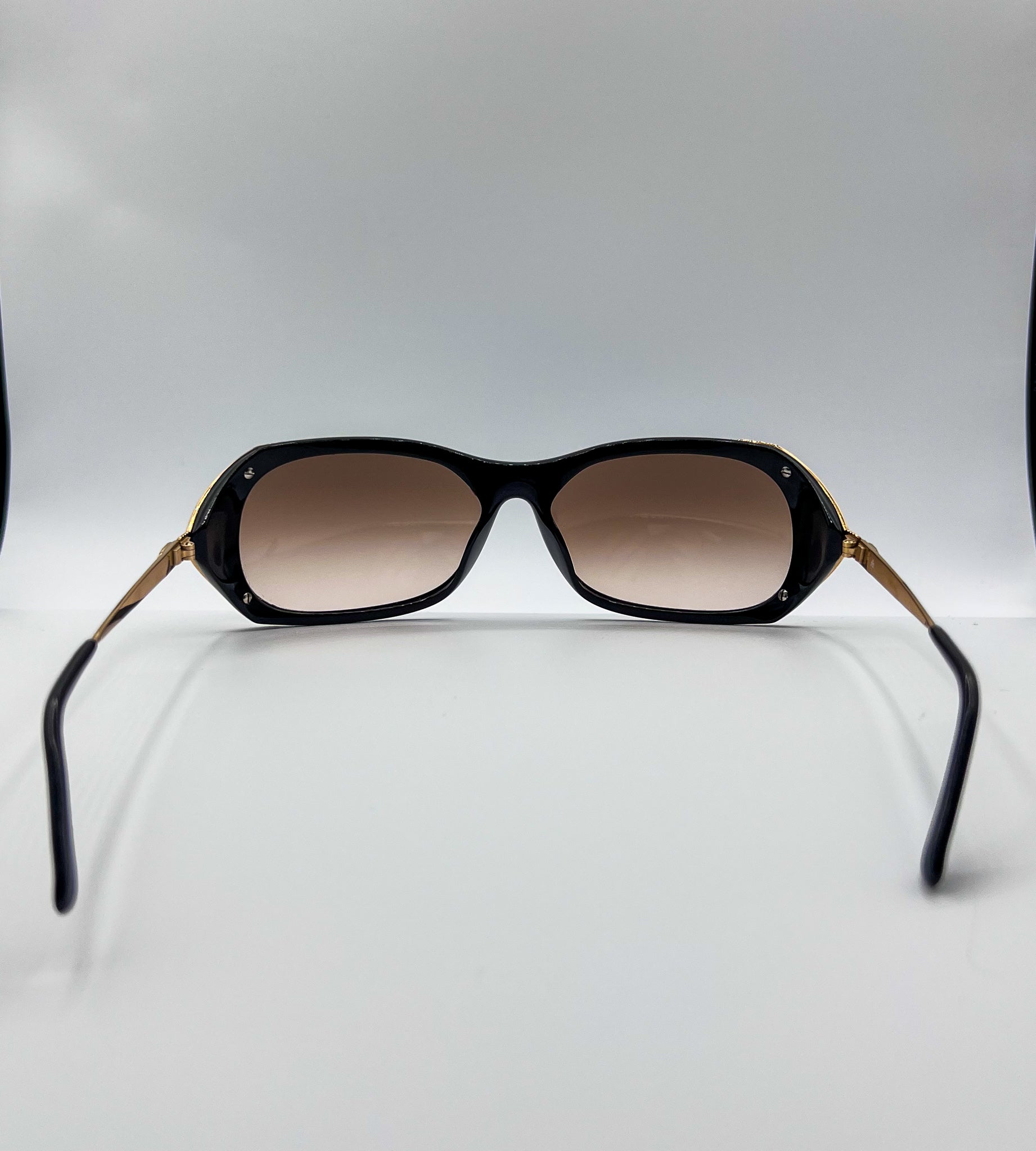 GLASSES ARE COMPLETE WITH BLACK GRADIENT UV-PROTECTED LENSES.