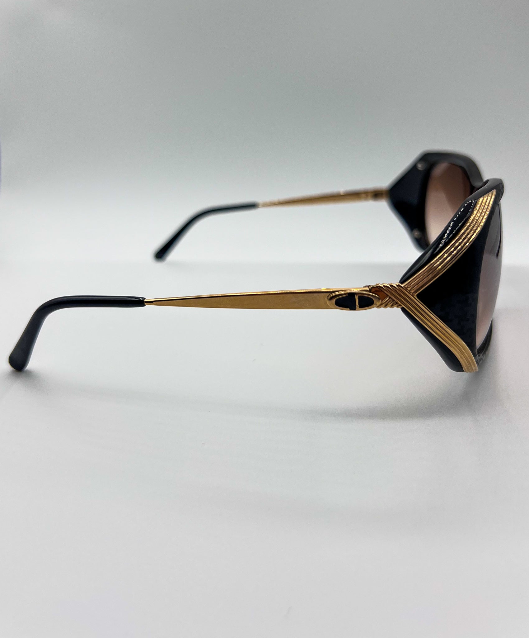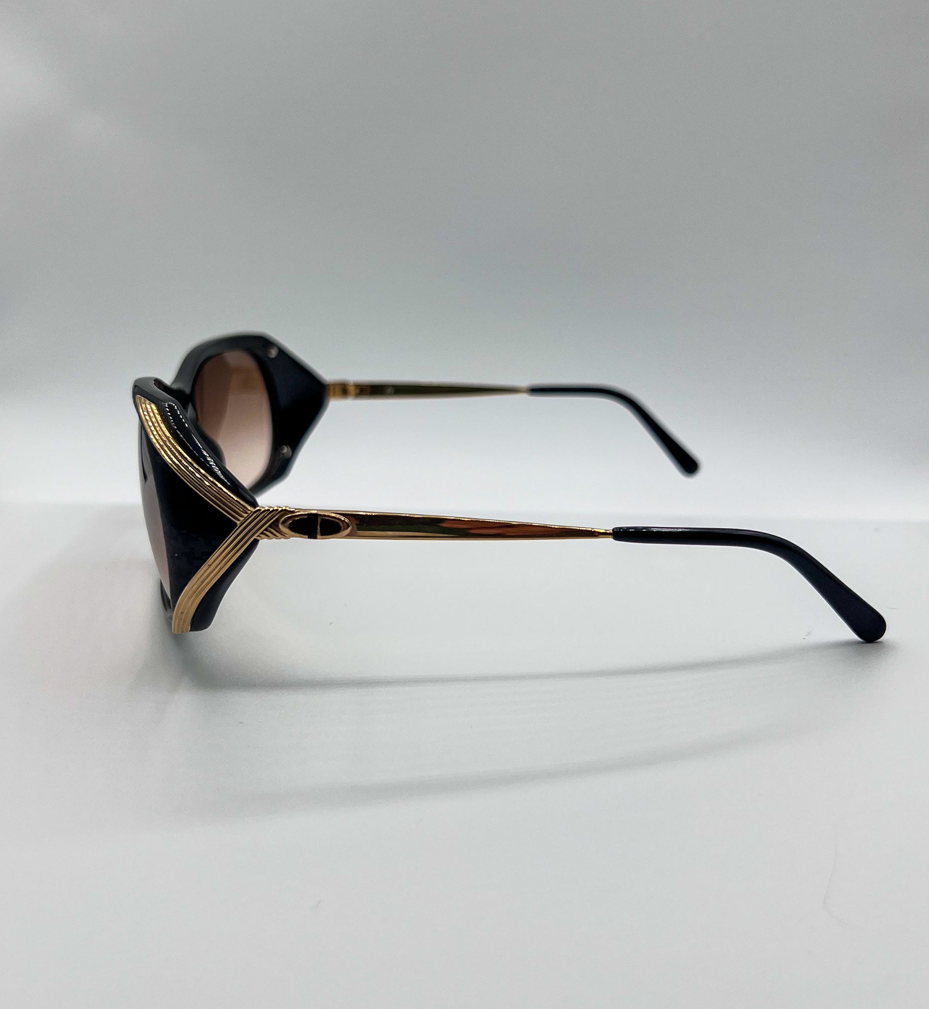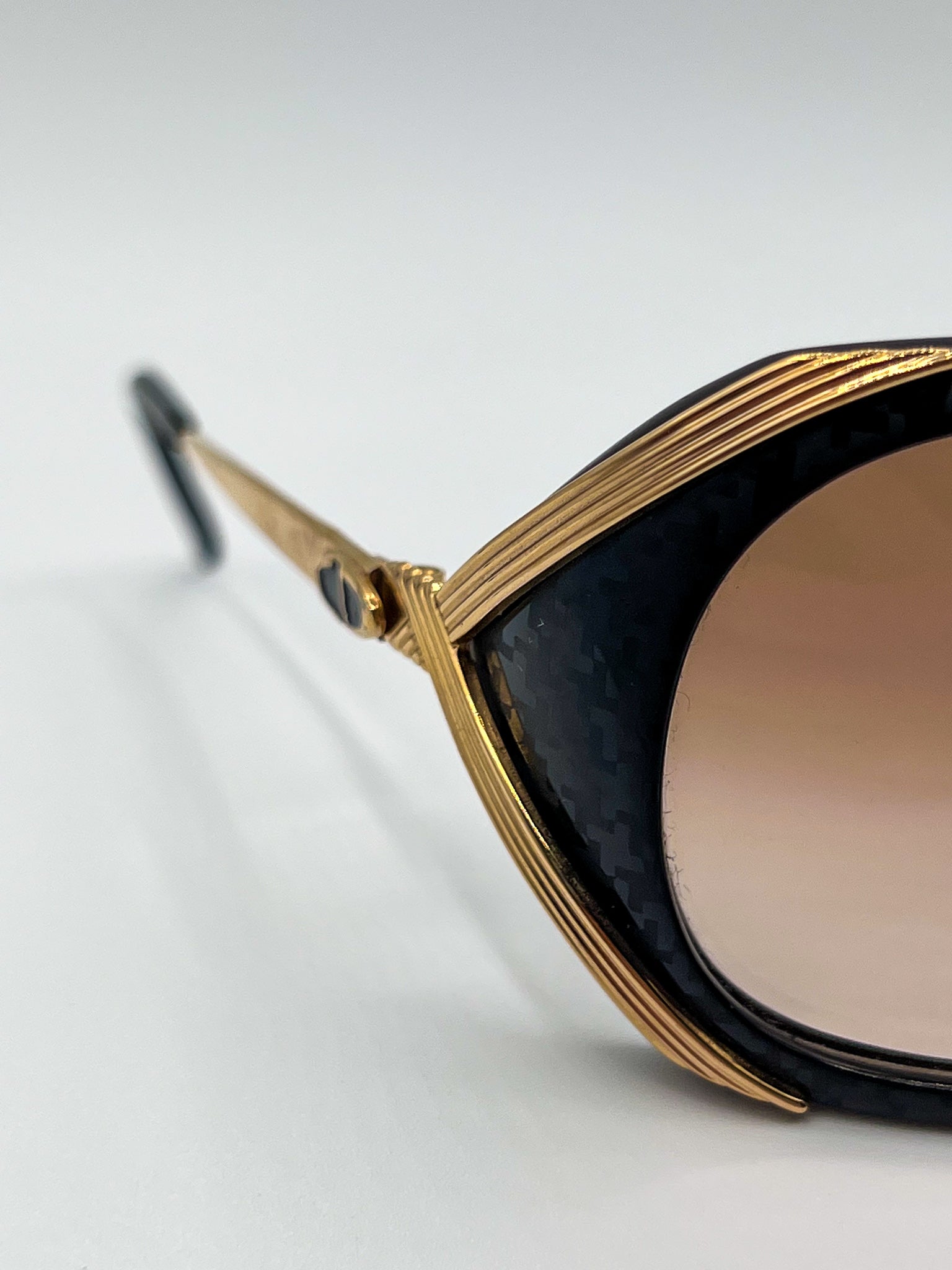 ORIGINALLY MANUFACTURED IN AUSTRIA BY CHRISTIAN DIOR IN THE 1980S. BLACK HOUNDSTOOTH PATTERN ALONG FRONT FRAME COMPLETE WITH GOLD EAR PIECES. "CD" DETAILING AROUND EAR HINGE.