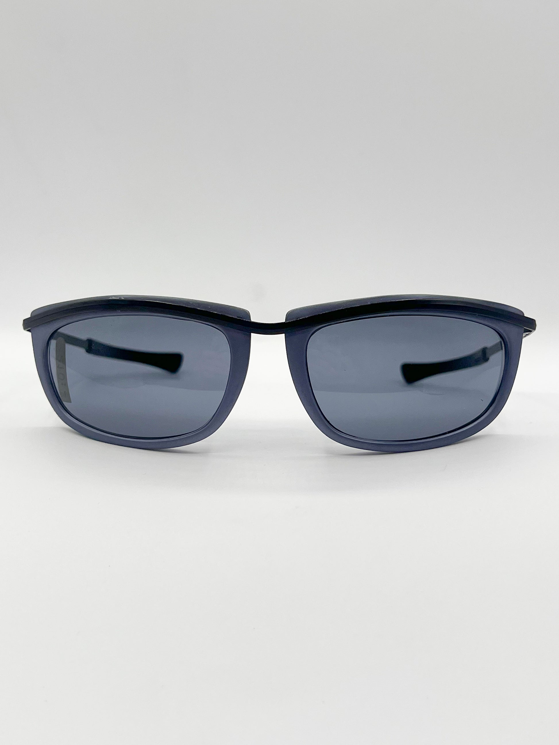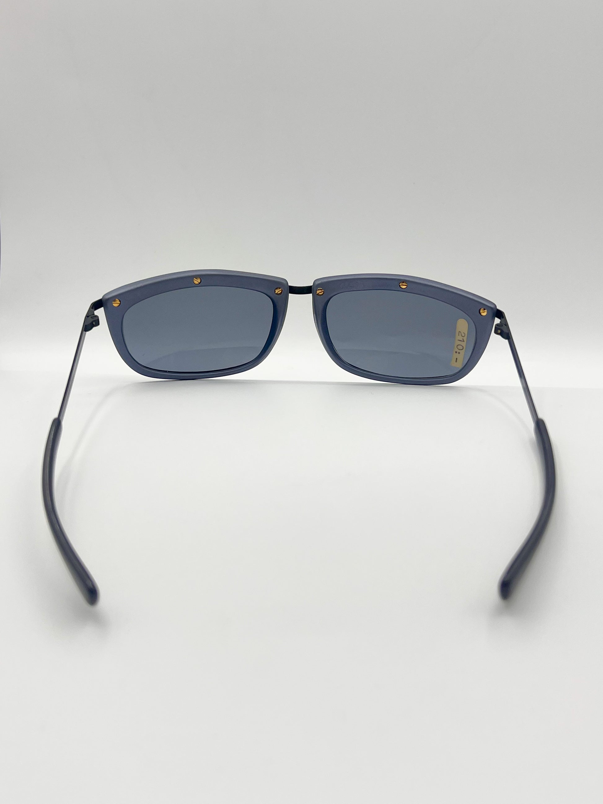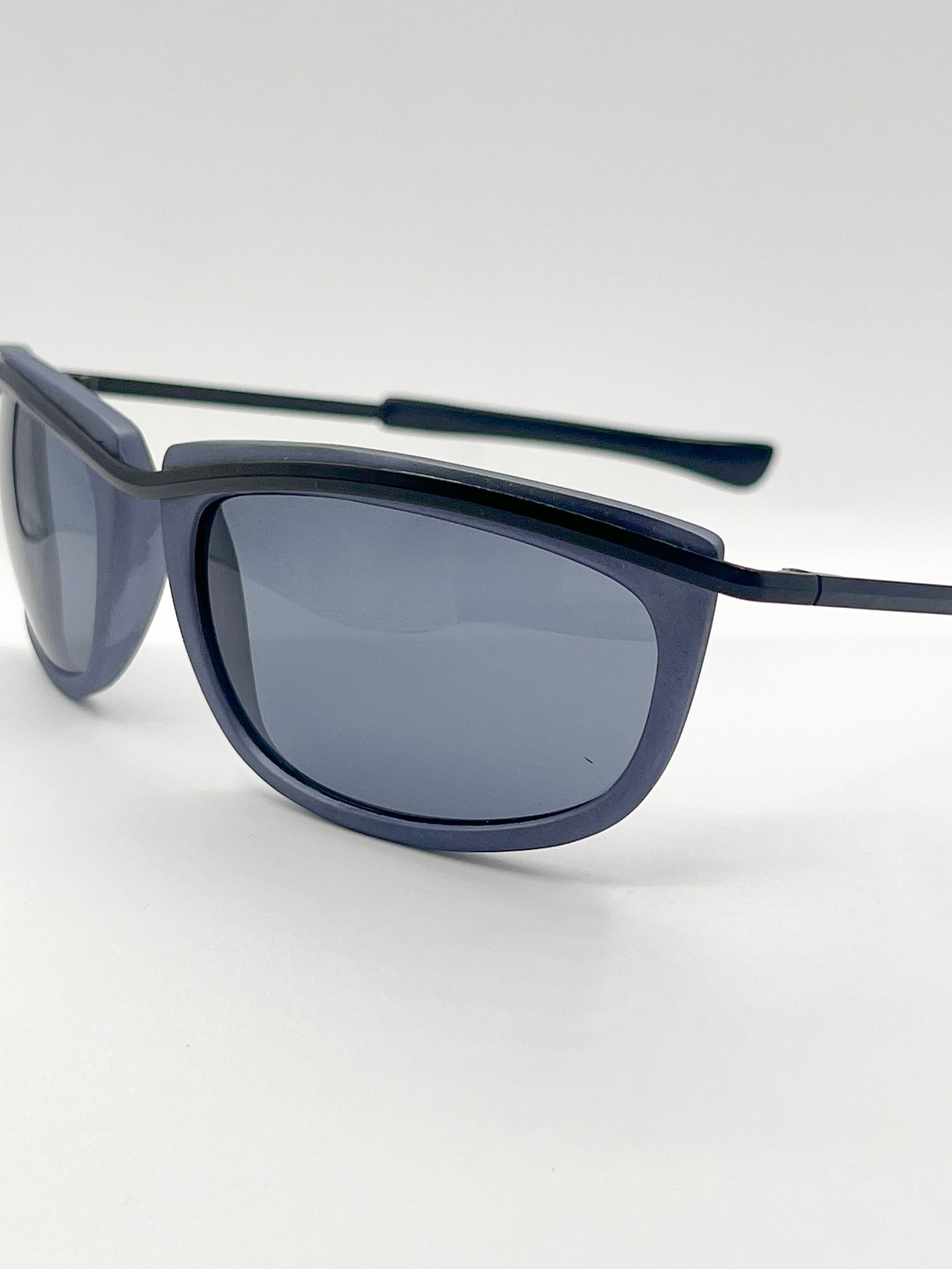 Made in France in the 1980s. Plastic/metal have a unique relationship in this layered frame — metal bridge upon plastic frame. Original black lenses.