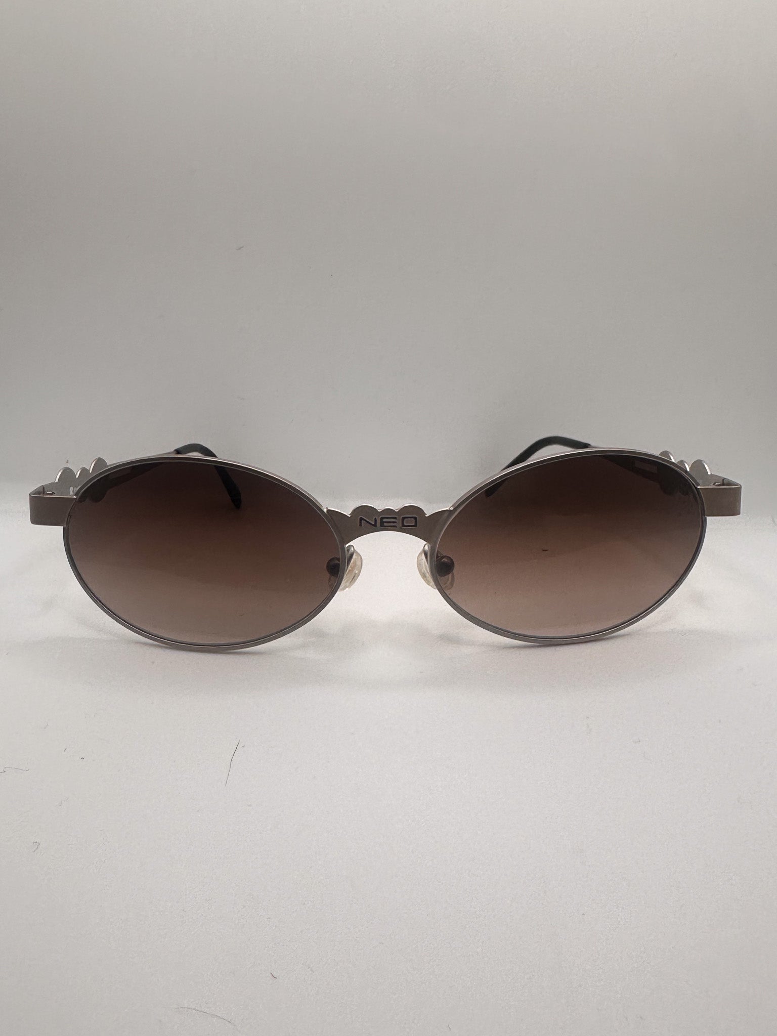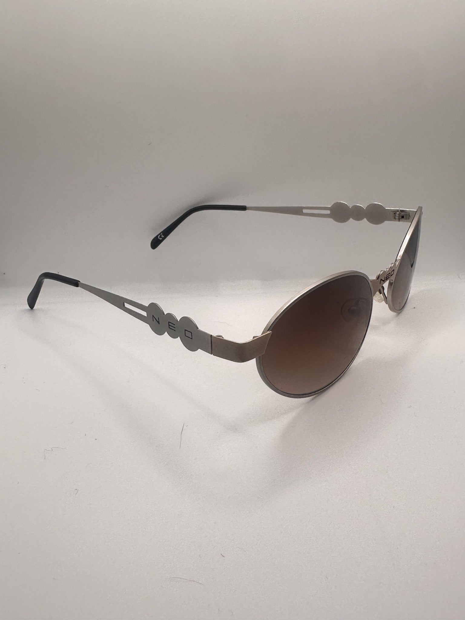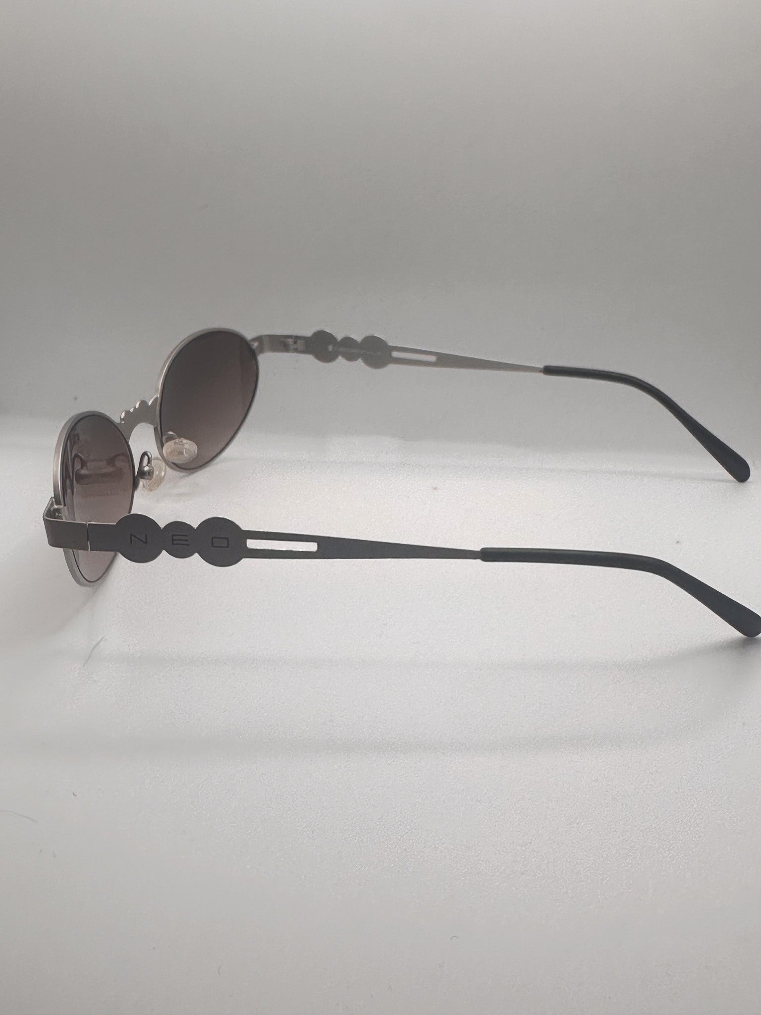 Oval silver 1980s Neostyle sunglasses. Gorgeous silver, thin titanium frame with "Neo" across nose bridge. Brand new Zeiss lenses. Sourced in Berlin, Germany.