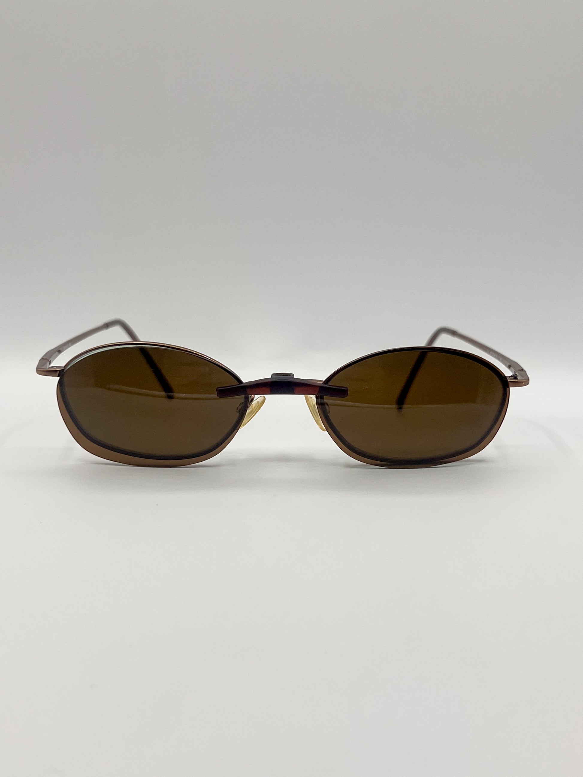Altair Sunlites, Made in Japan, 1970s. These lightweight frames have new lightly tinted aquatic green lenses, complete with a polarized clip-on for when that sun hits. We love these because they are so versatile!