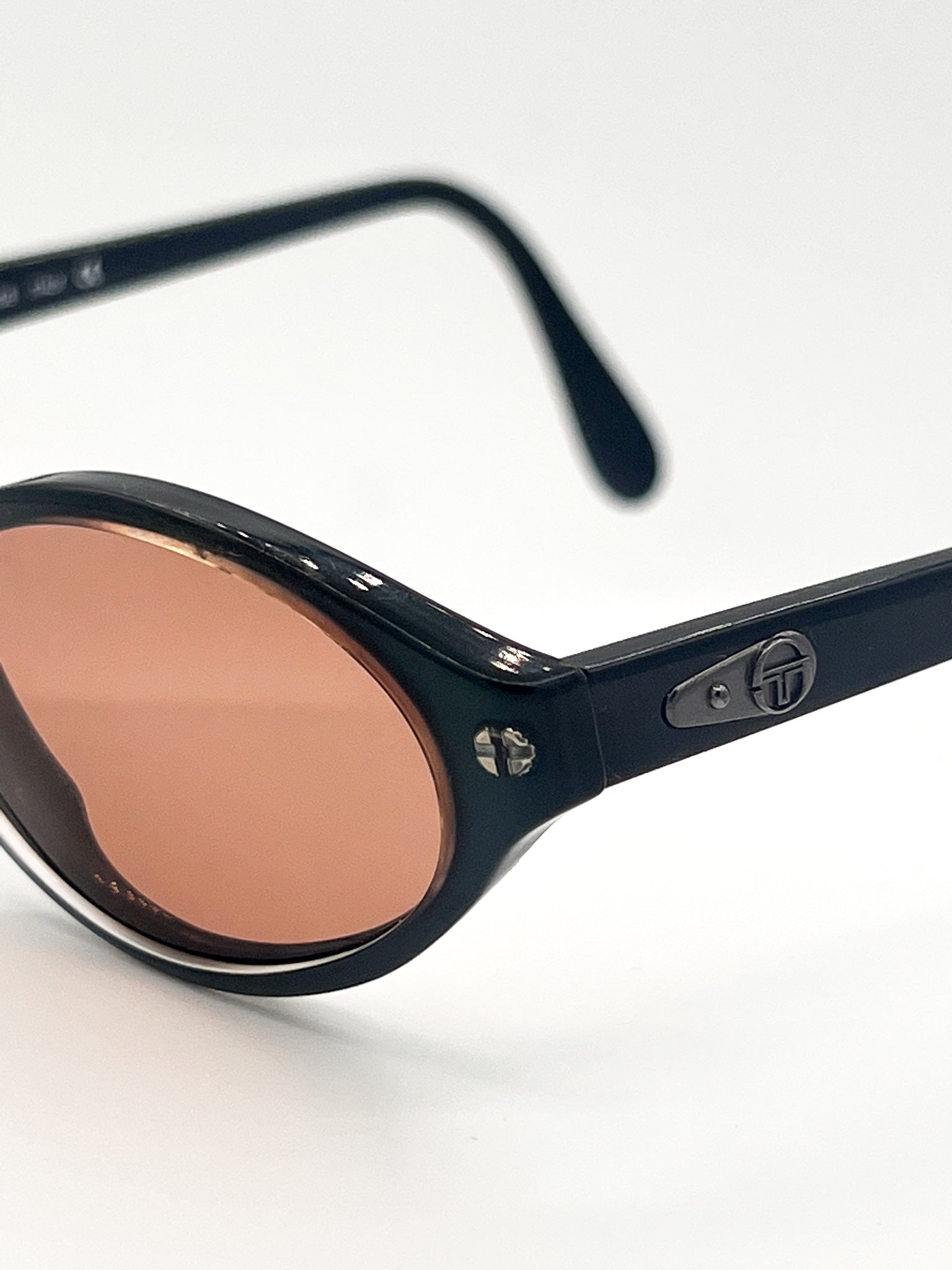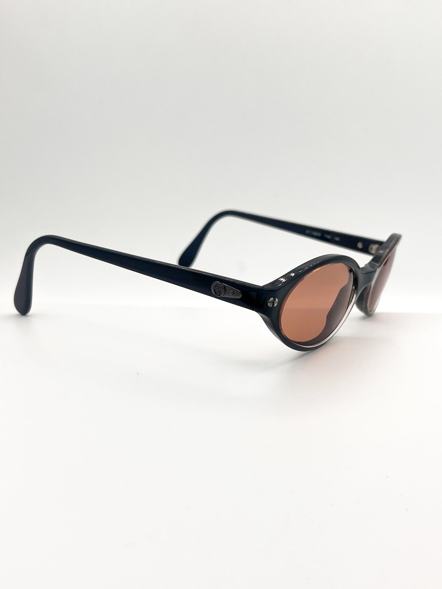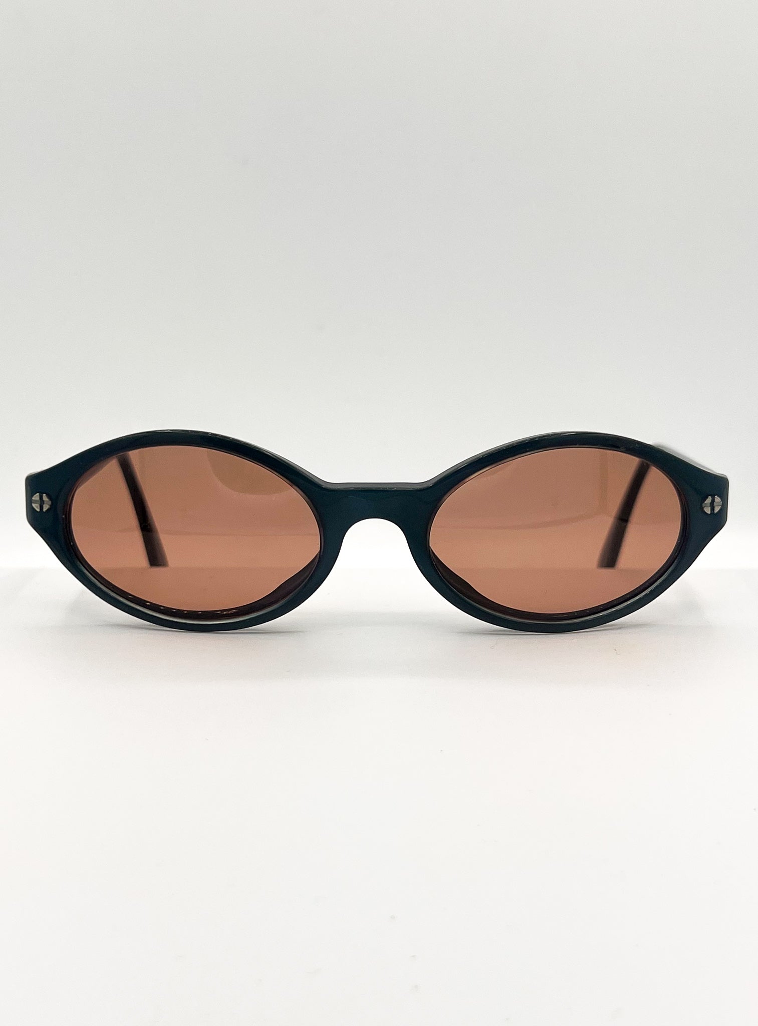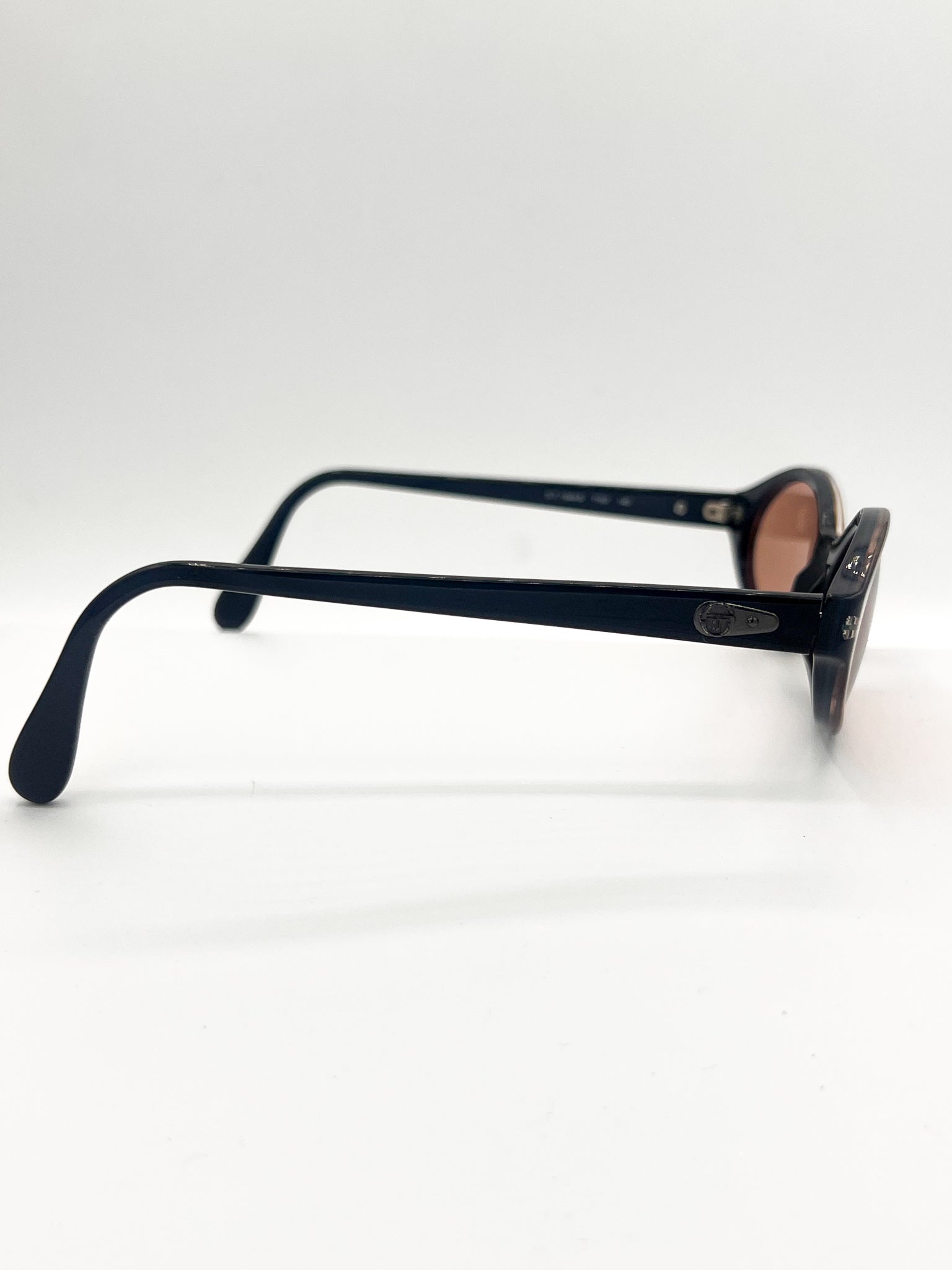Vintage Sergio Tacchini, made in Italy. Ocean blue frames remodeled with burnt orange lenses. UV-protected and chic as hell.