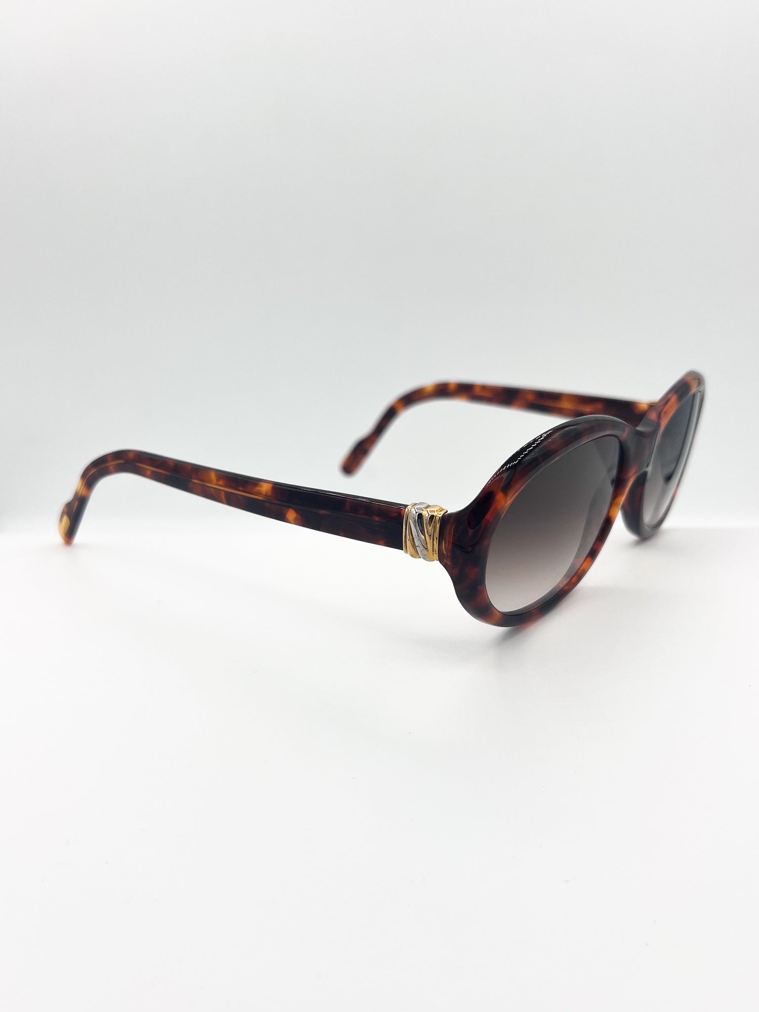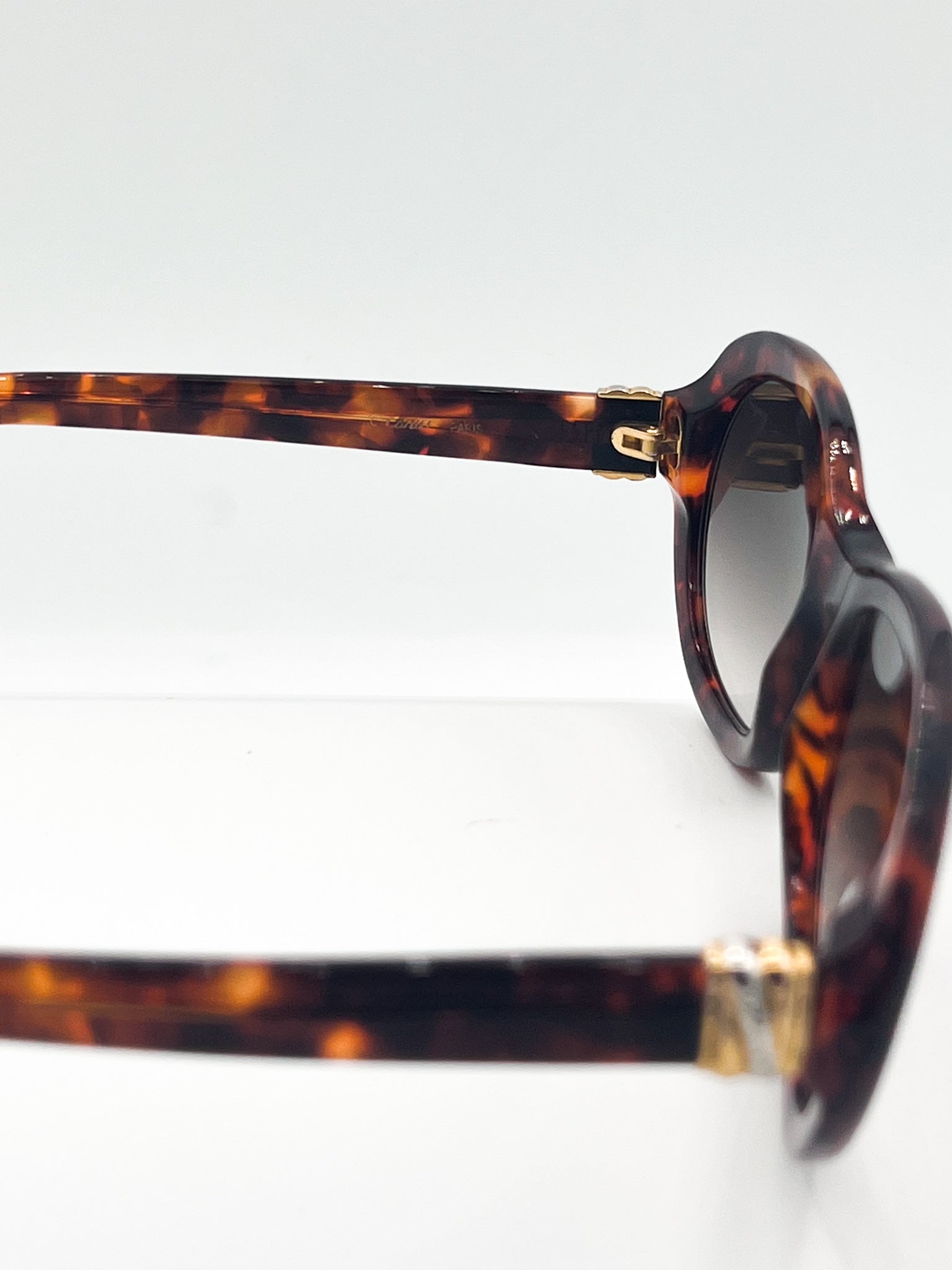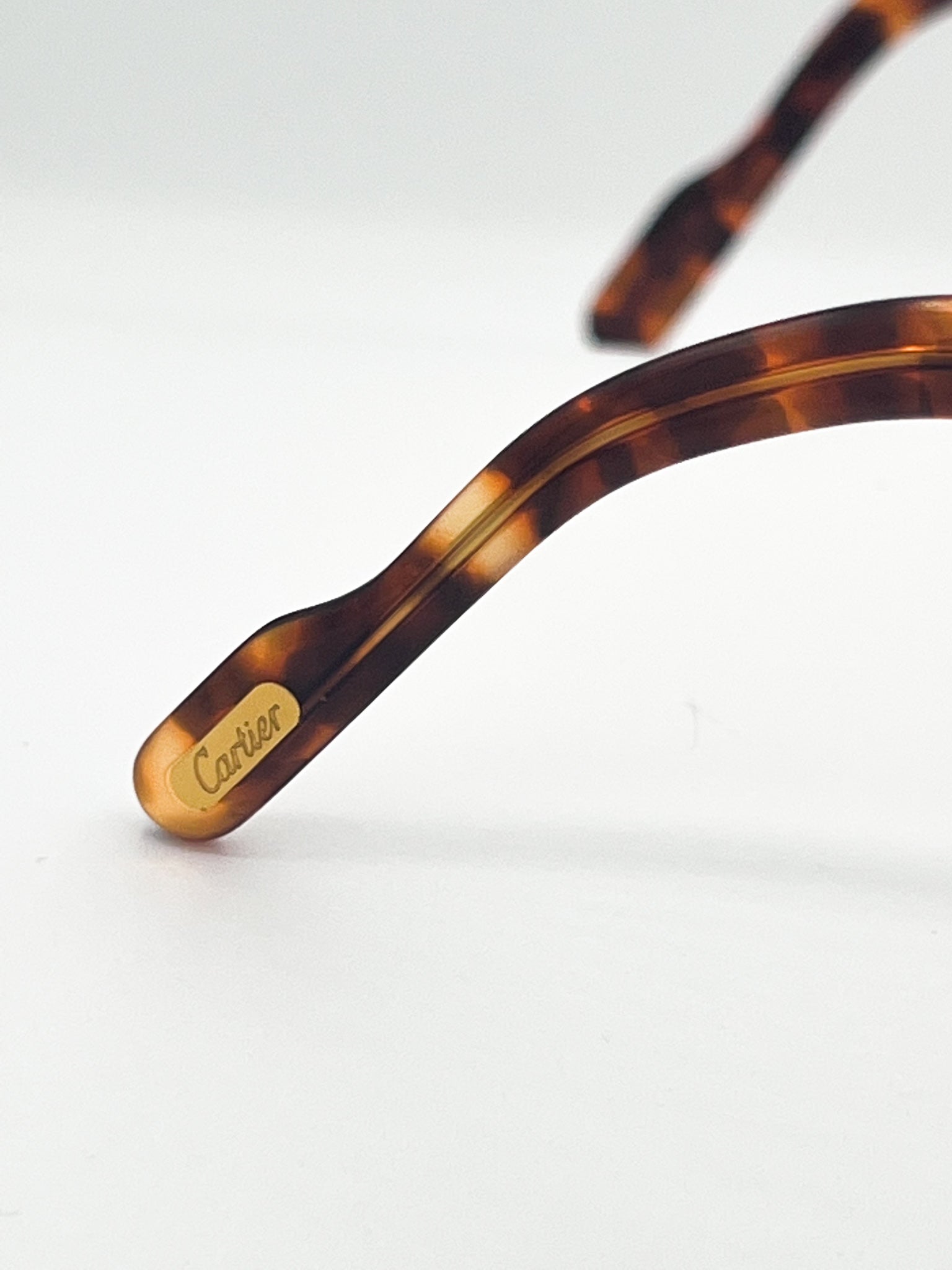 Vintage Cartier glasses, made in France. These frames boast gold-plated hardware and black lenses.