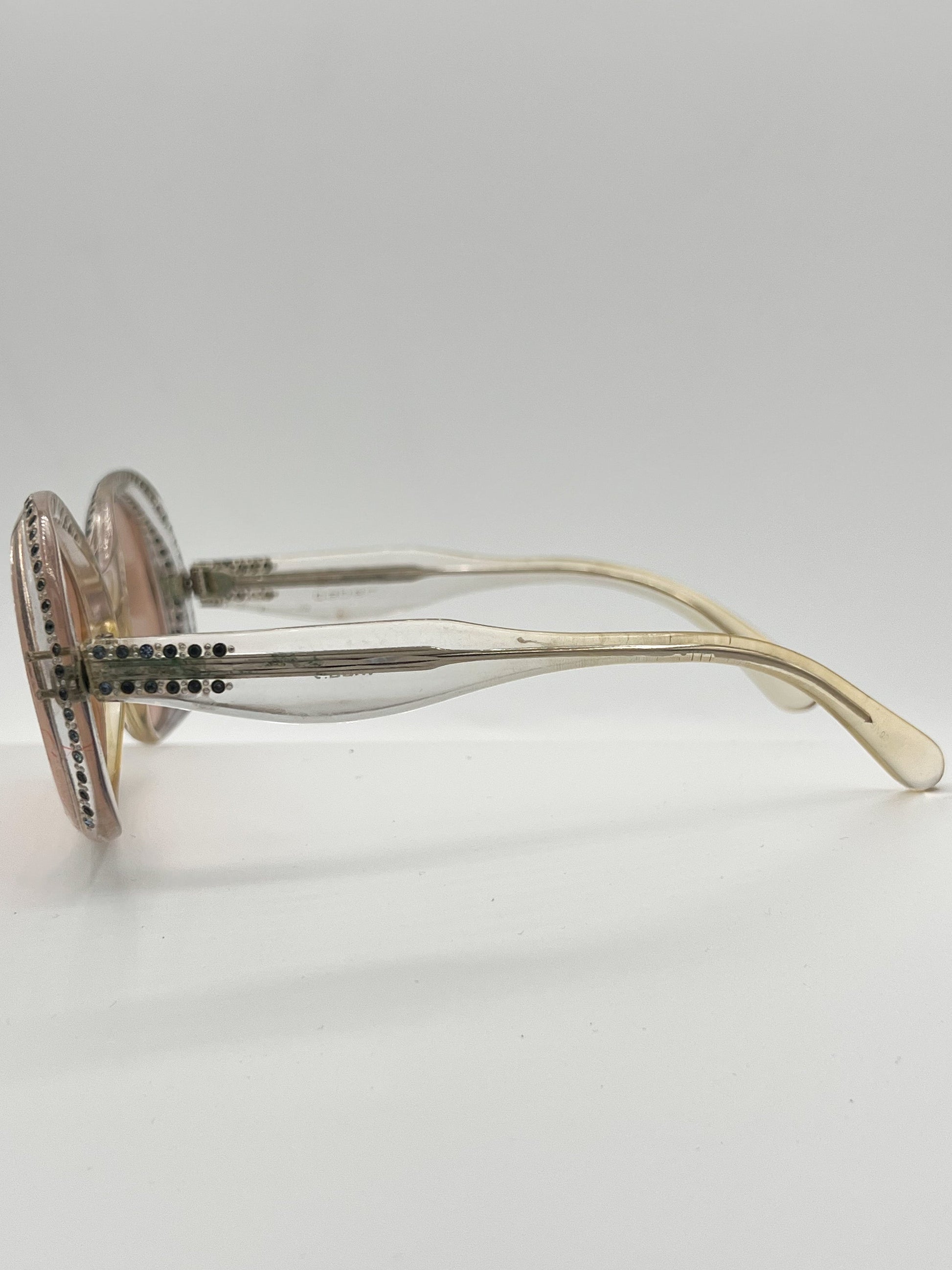 1960s oval frame, eyes embellished with light blue crystals. Light pink lenses. A true fairy dream. Made in France.