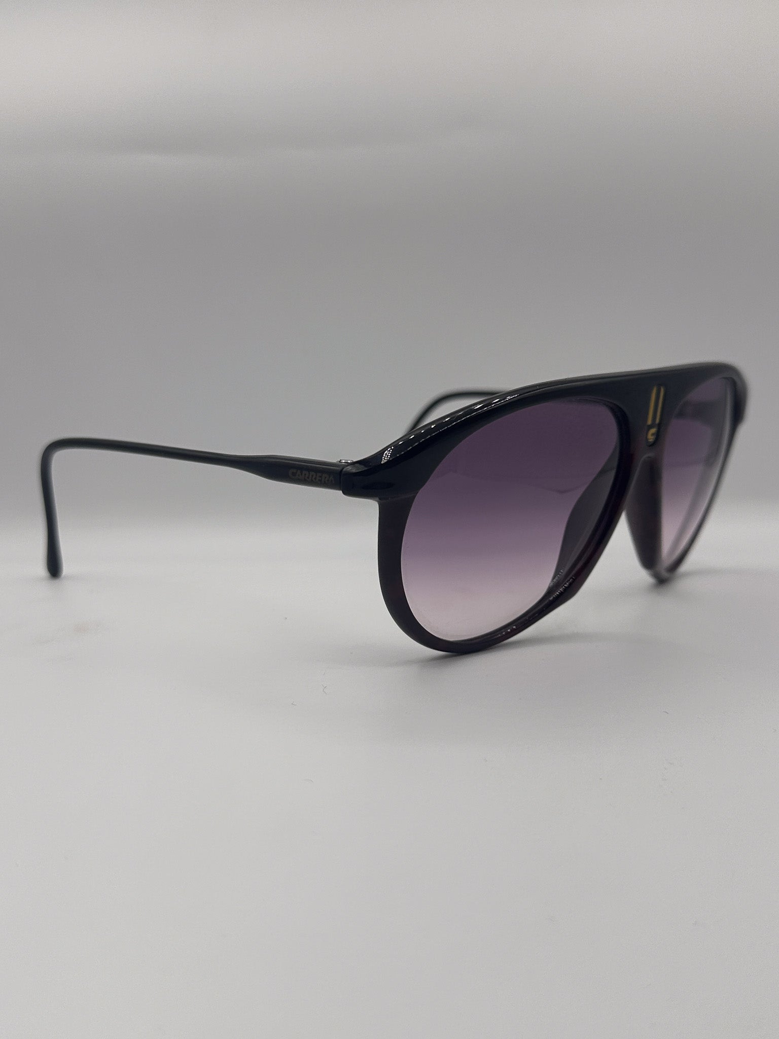 Introducing "Purple Hues," an exquisite pair of Carrera tortoise aviator sunglasses that blend retro sophistication with modern versatility. Crafted in the 1980s as part of the Carrera-Optyl collaboration, these frames feature a unique shape designed for a comfortable fit, complemented by stunning purple gradient lenses. Made in Austria, these deadstock sunglasses are a rare find for those who value timeless elegance and exclusive design.