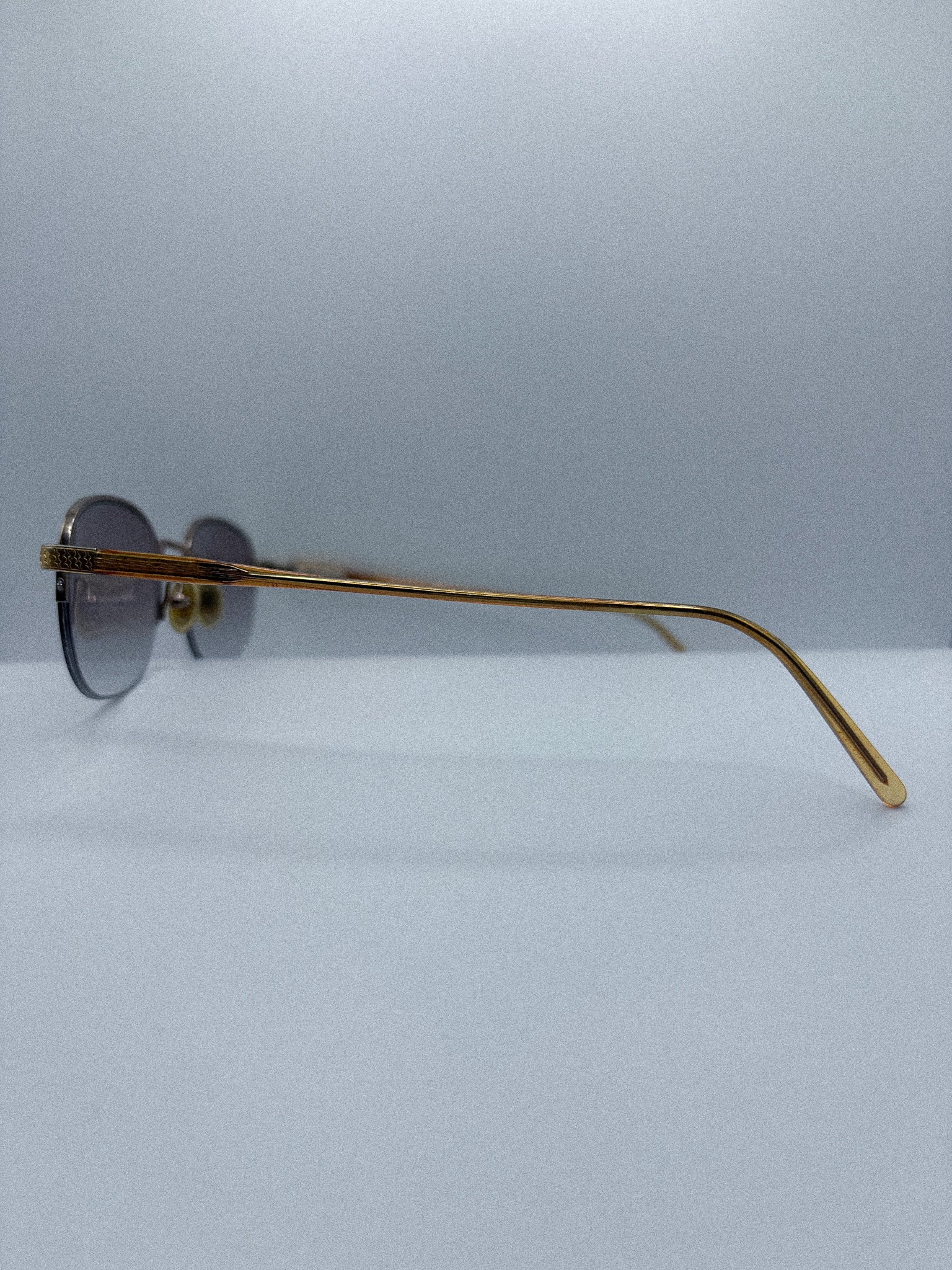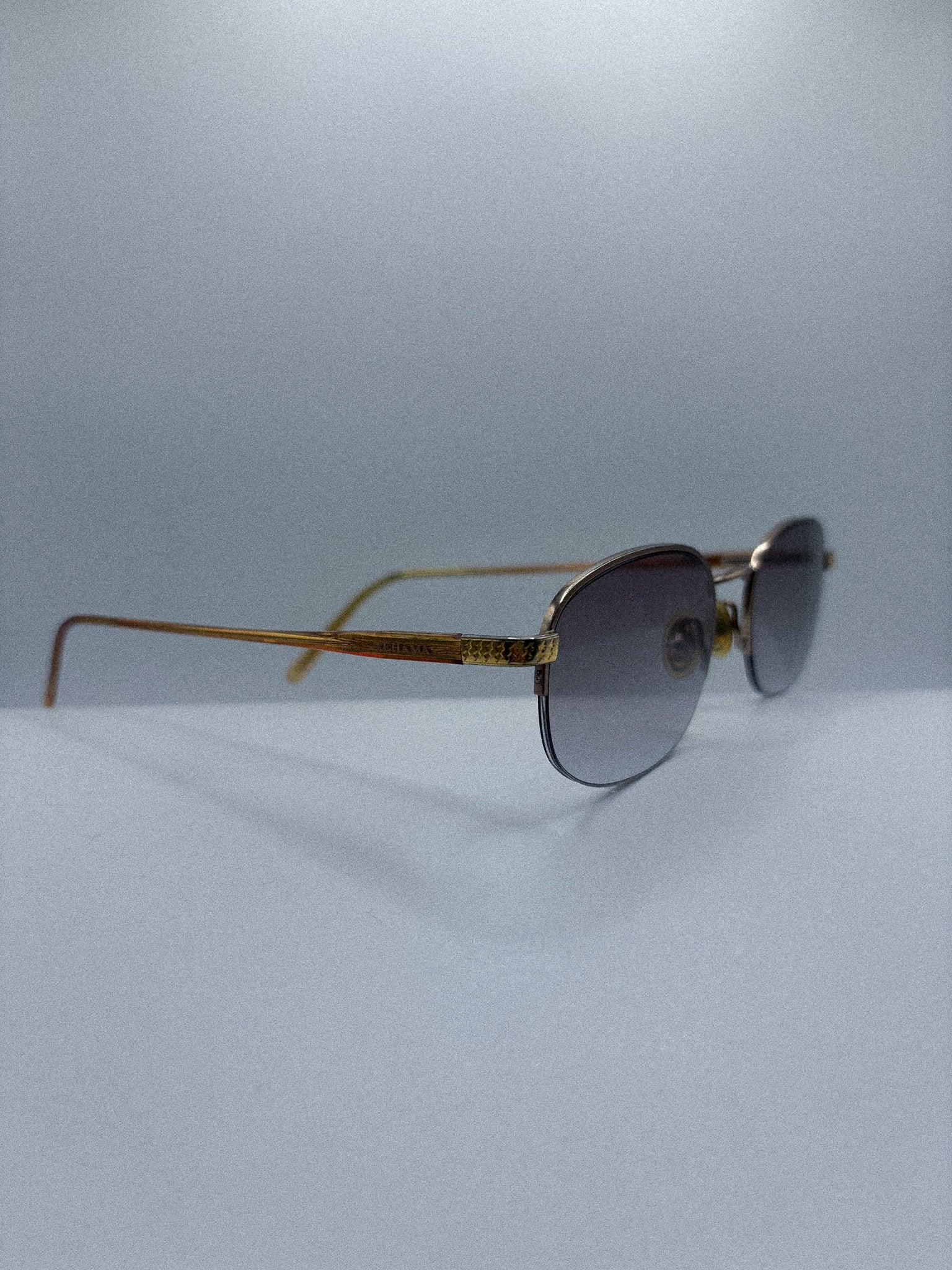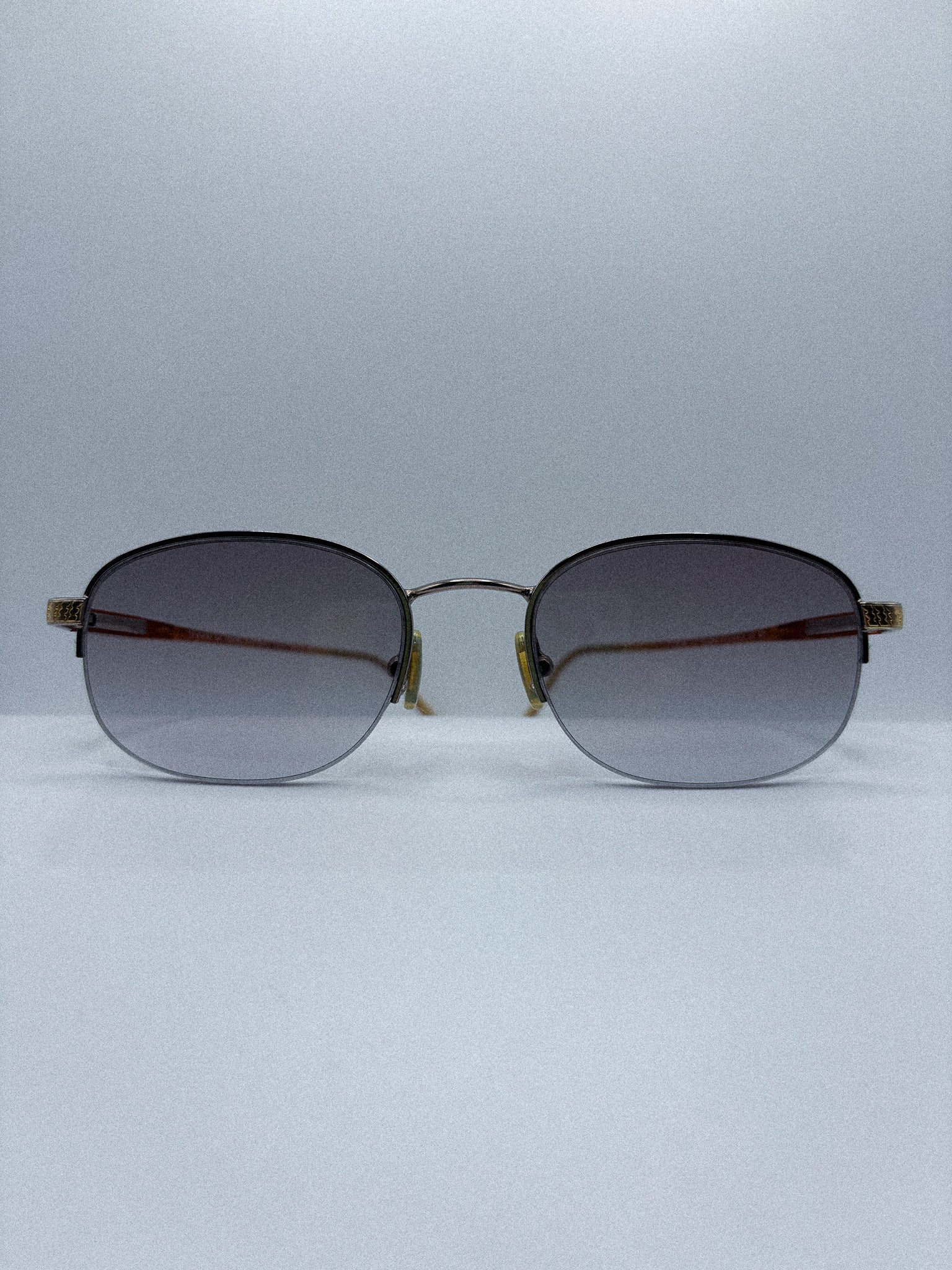 The grey gradient lenses create a gentle fade of light, offering a composed, almost meditative visual tone.