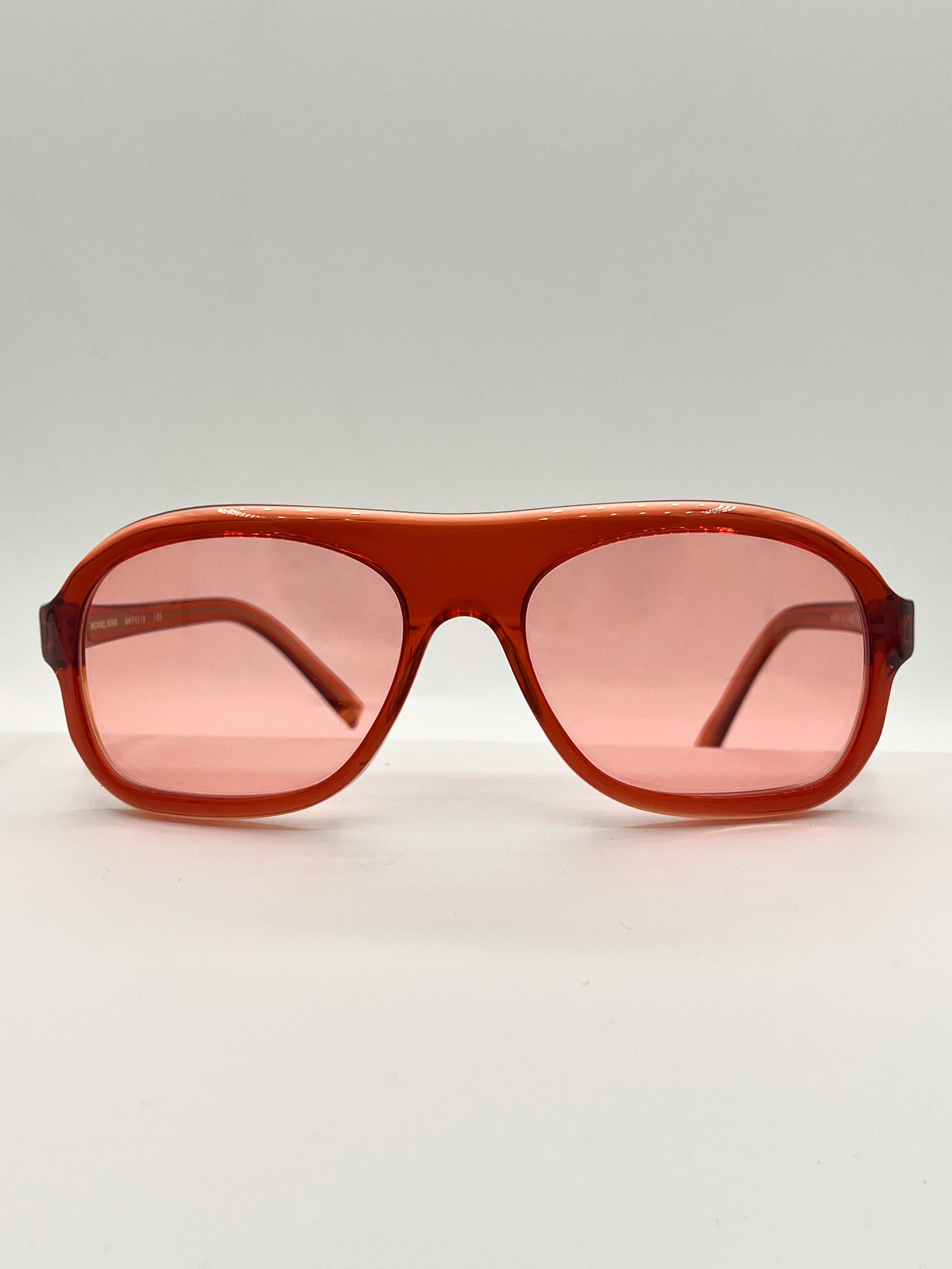 Pink acetate aviator frame with floating nose bridge. Remodeled with lenses to match. Some of Michael Kors very first eyewear. Made in Italy.
