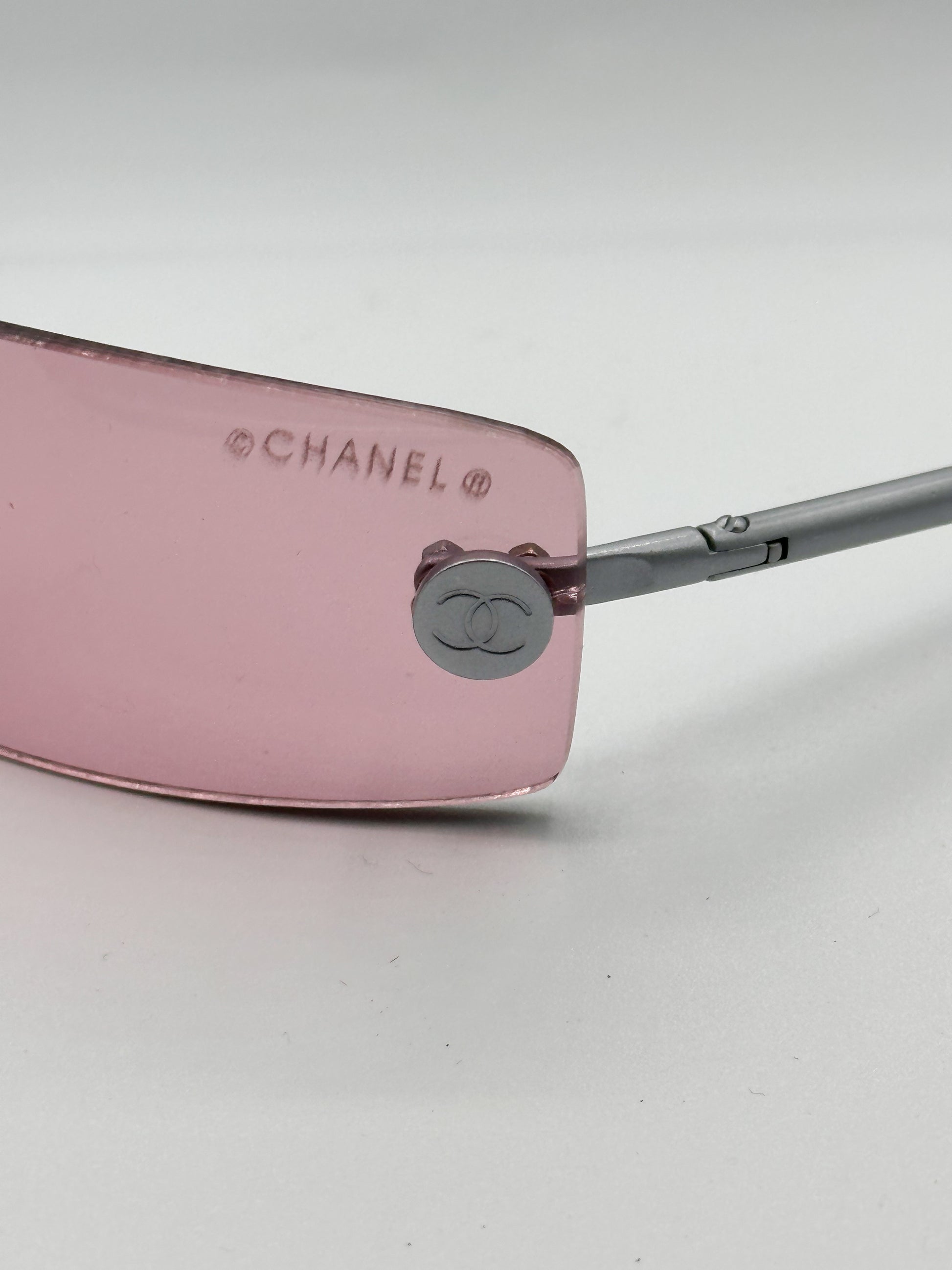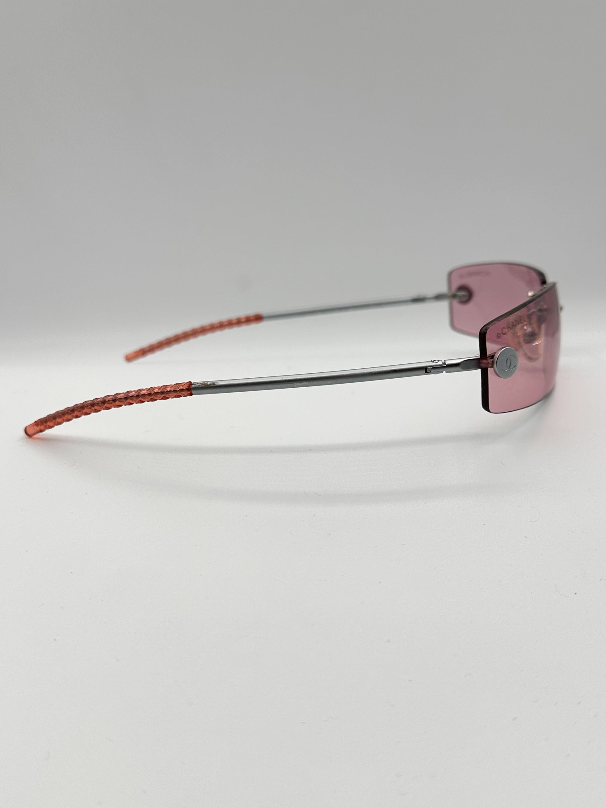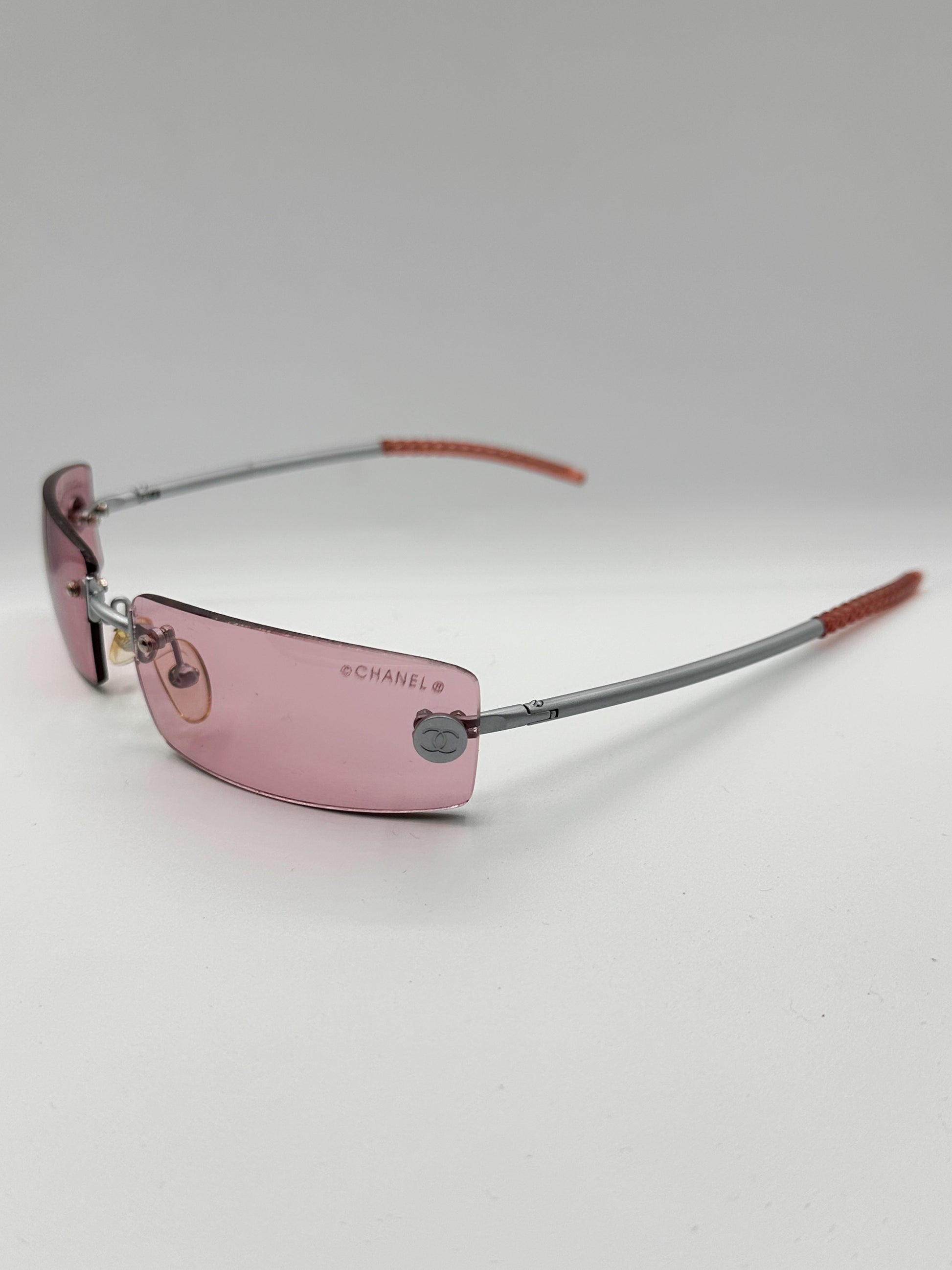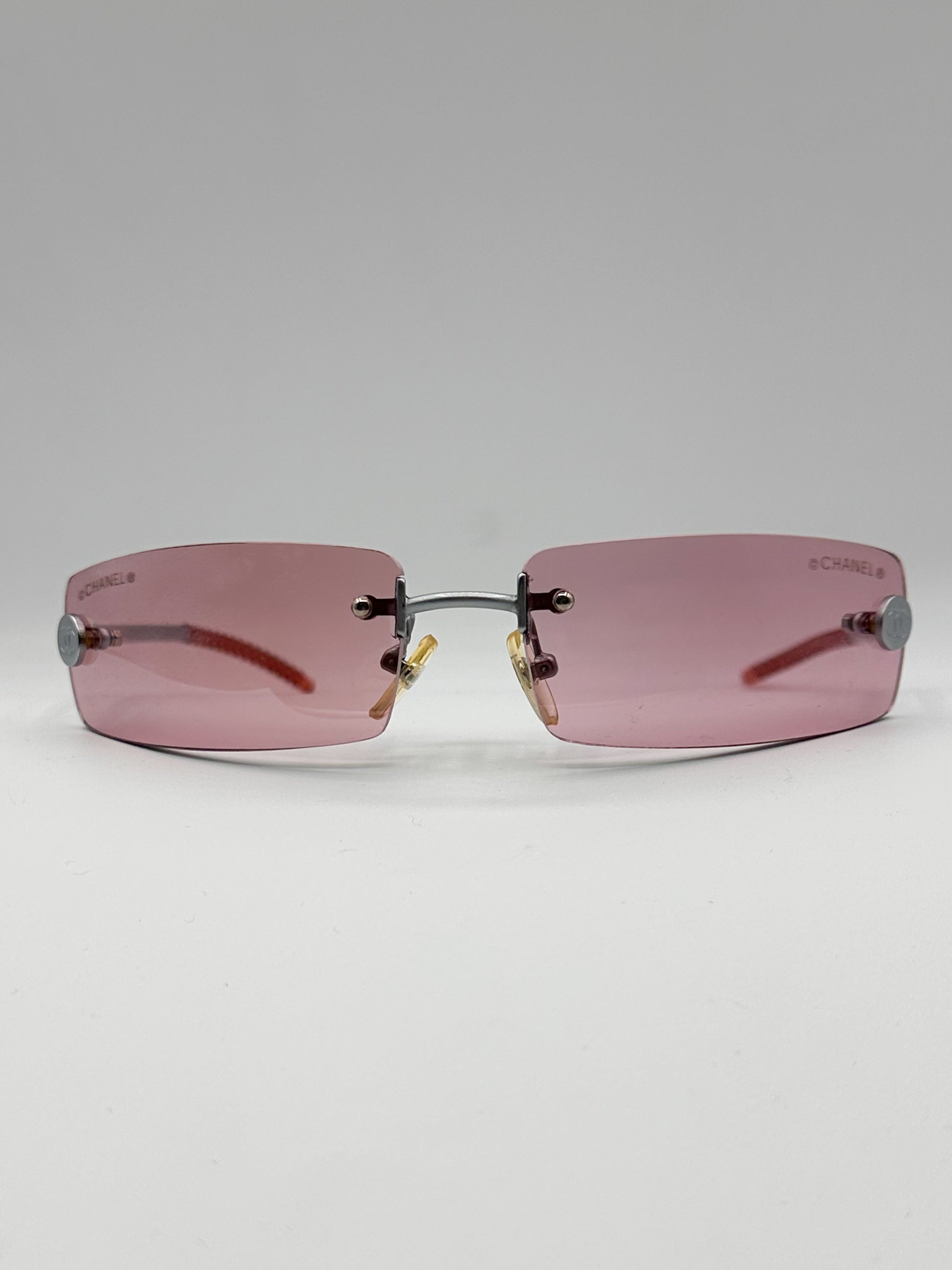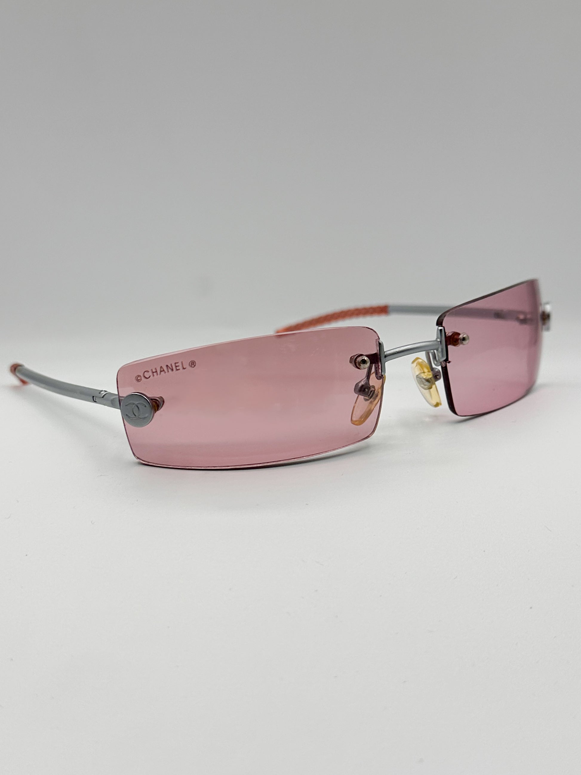 Beautiful, dainty, lightweight yet sturdy 1990s Chanel pink rimless frames. Polycarbonate pink lenses. Made in Italy.