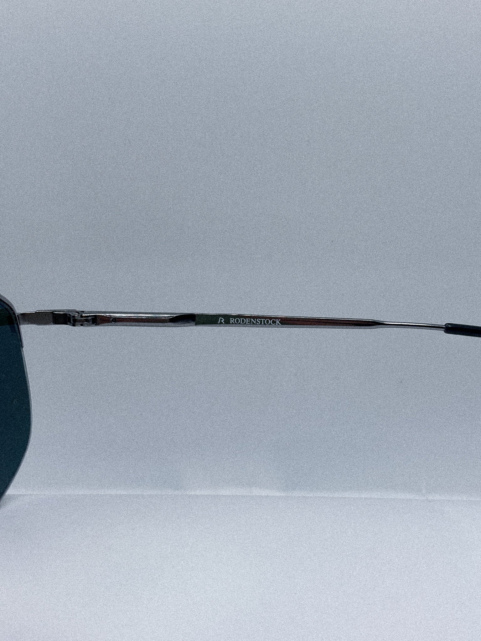 A refined aviator interpretation from 1980s Rodenstock, this frame pairs a precise metal structure with a straight brow bar and deep green lenses that lend a composed, almost introspective tone.