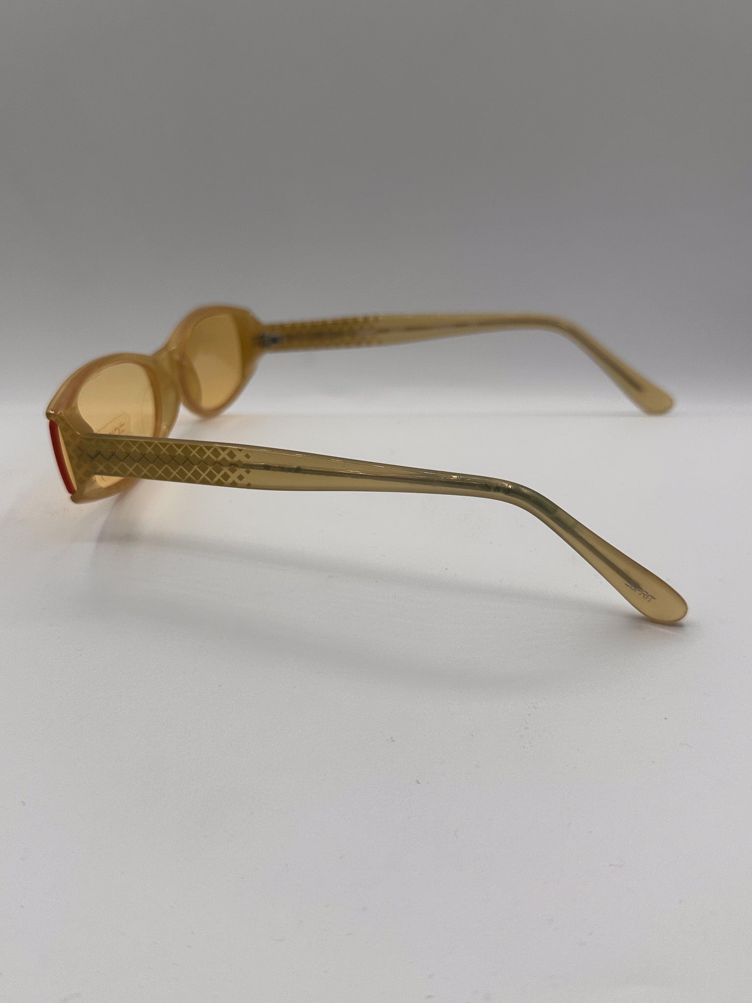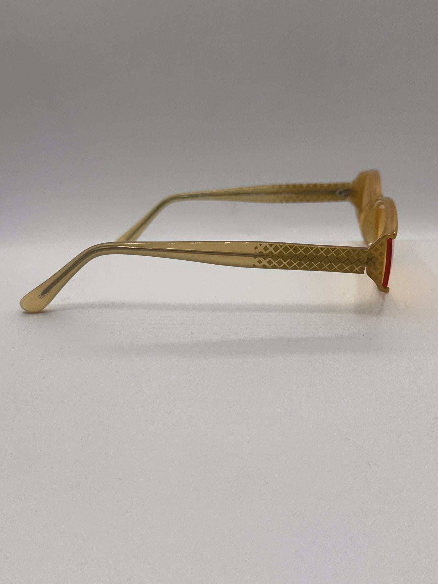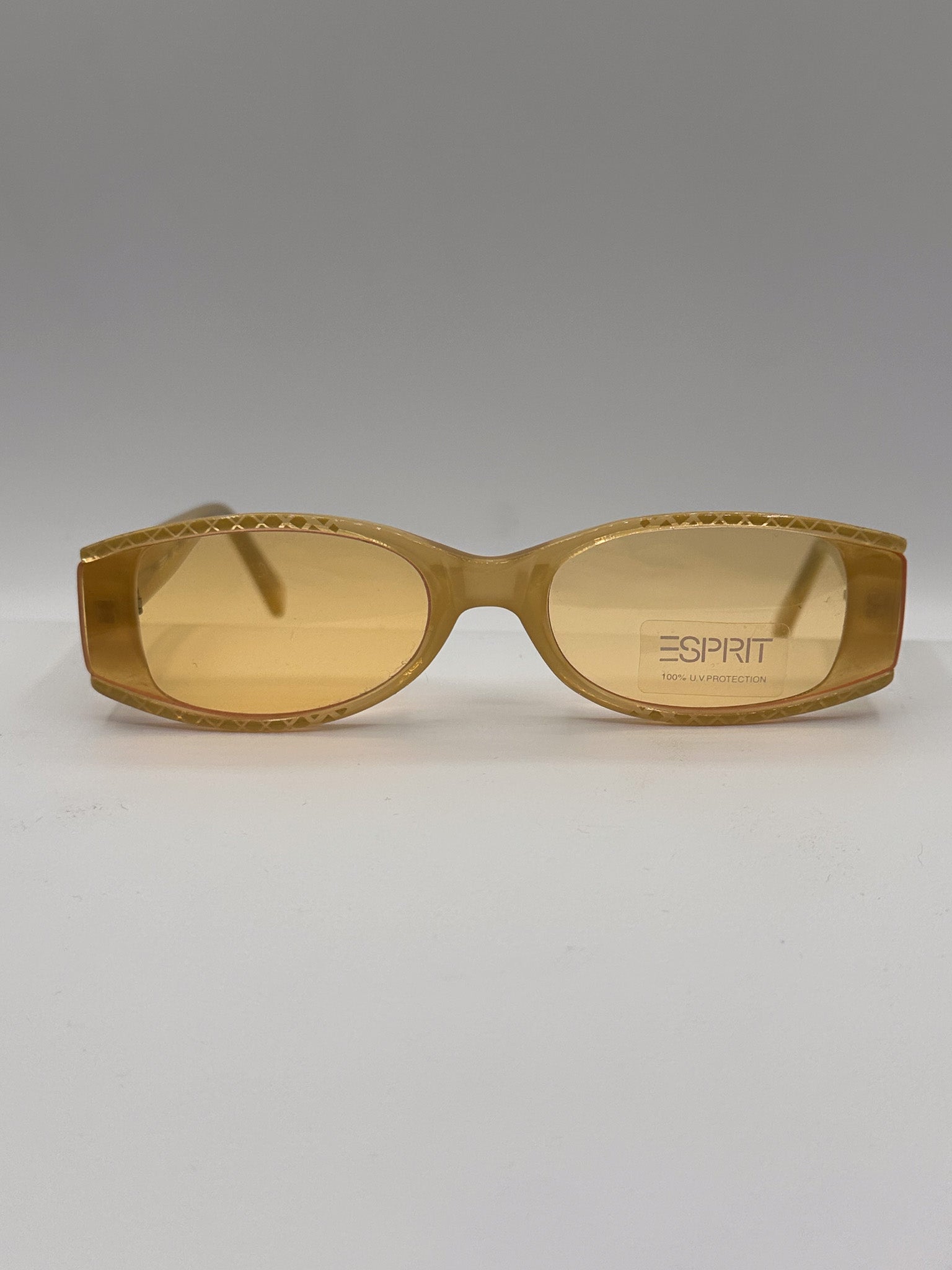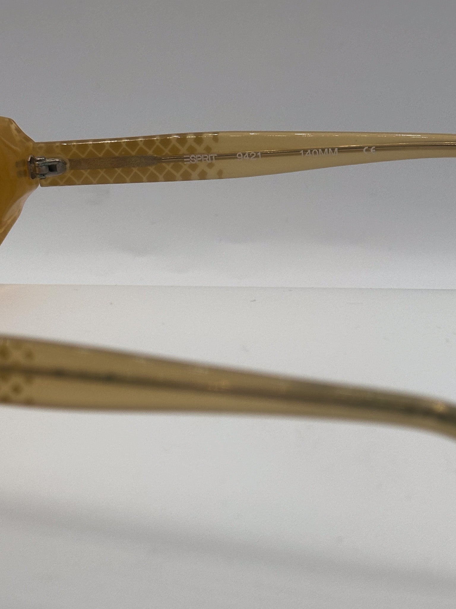 Introducing our vibrant ESPRIT yellow frames with matching yellow lenses, a bold statement piece for those who embrace nostalgia and sustainability. These frames capture the essence of carefree childhood days, reminiscent of cruising down the street on a sunny afternoon.