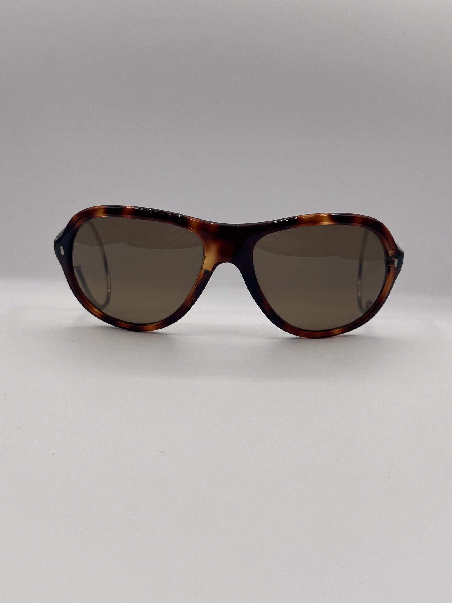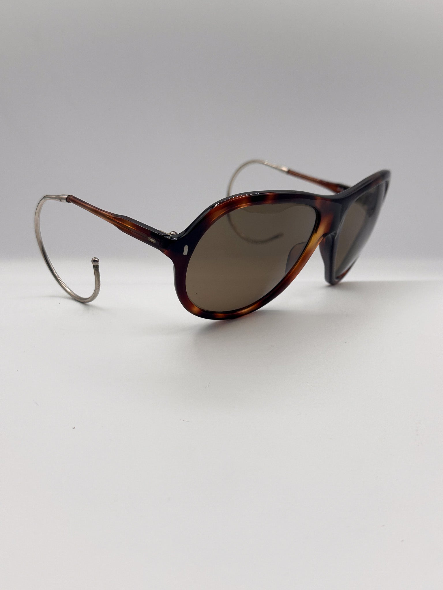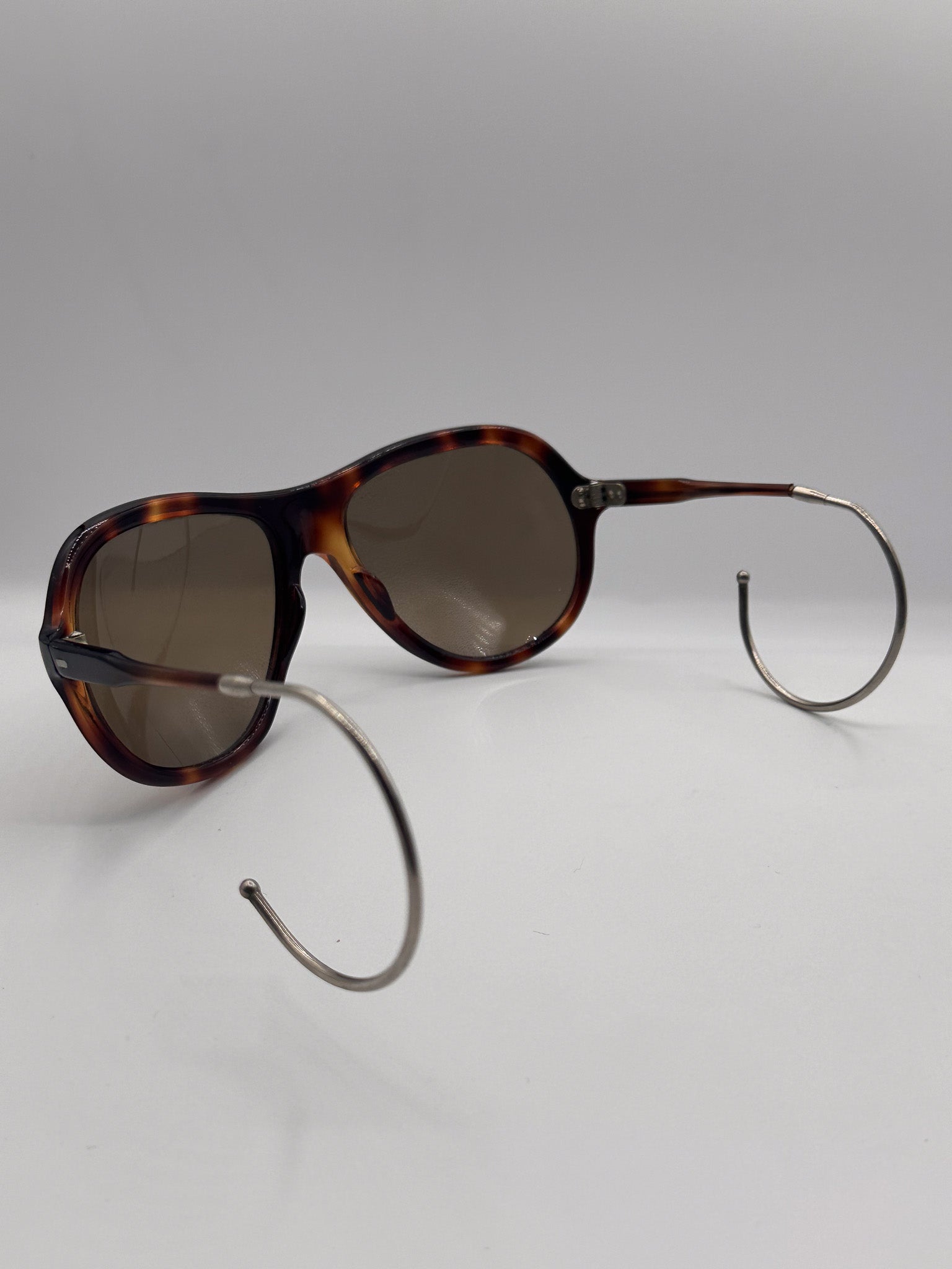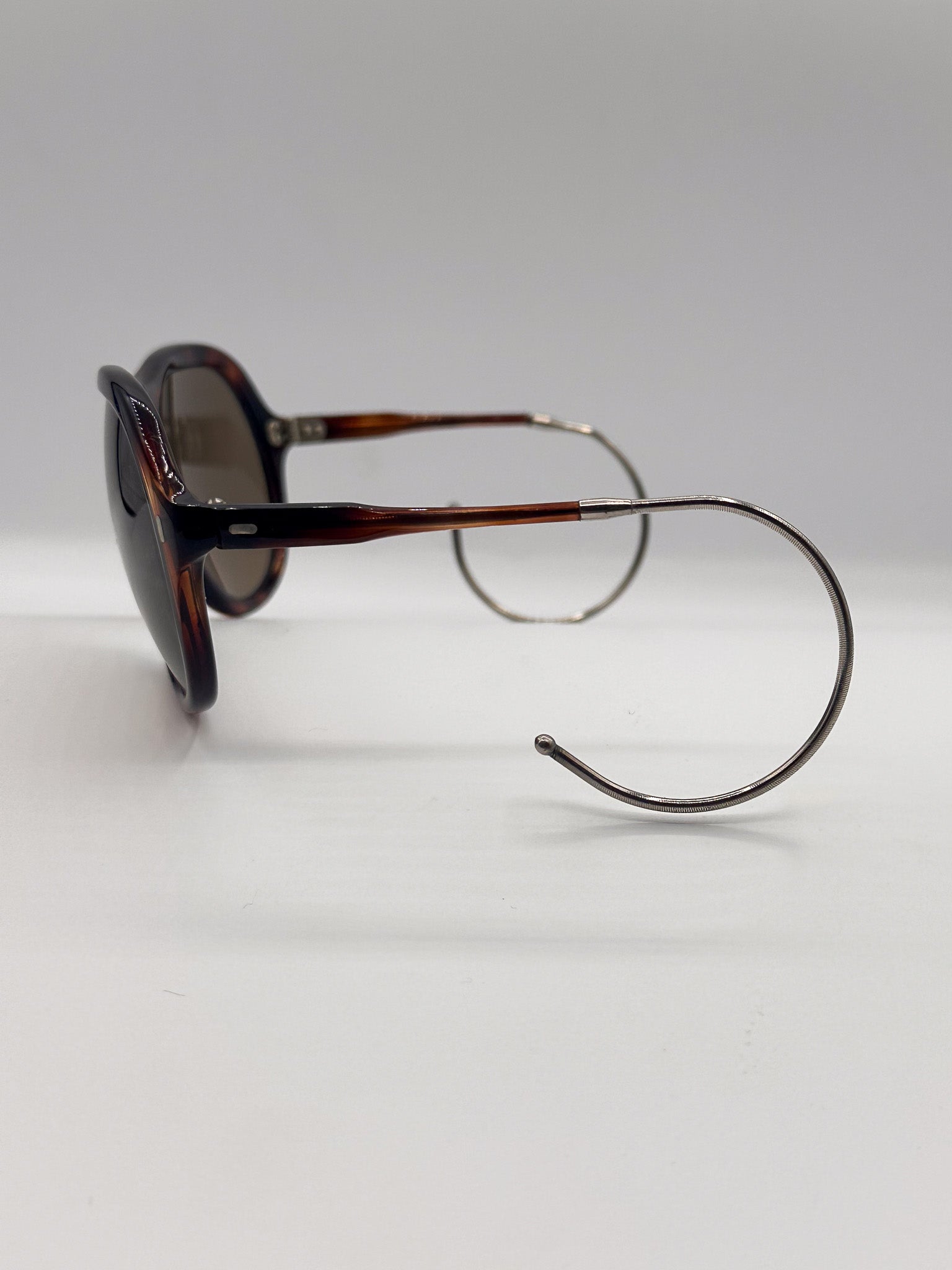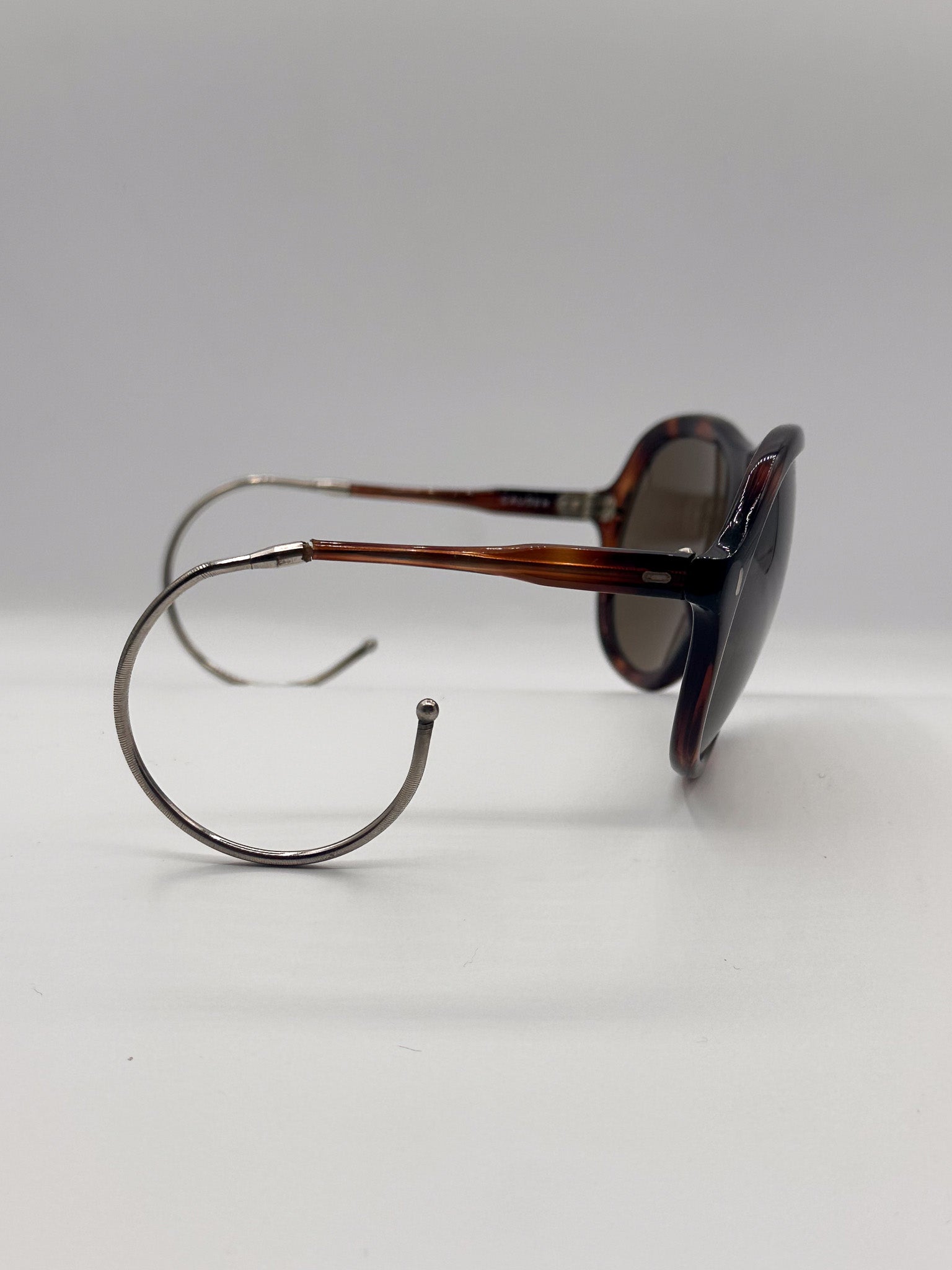 Vintage 1980s wrap-style aviator, acetate frame with original glass polarized lenses. Cauder, made in France.