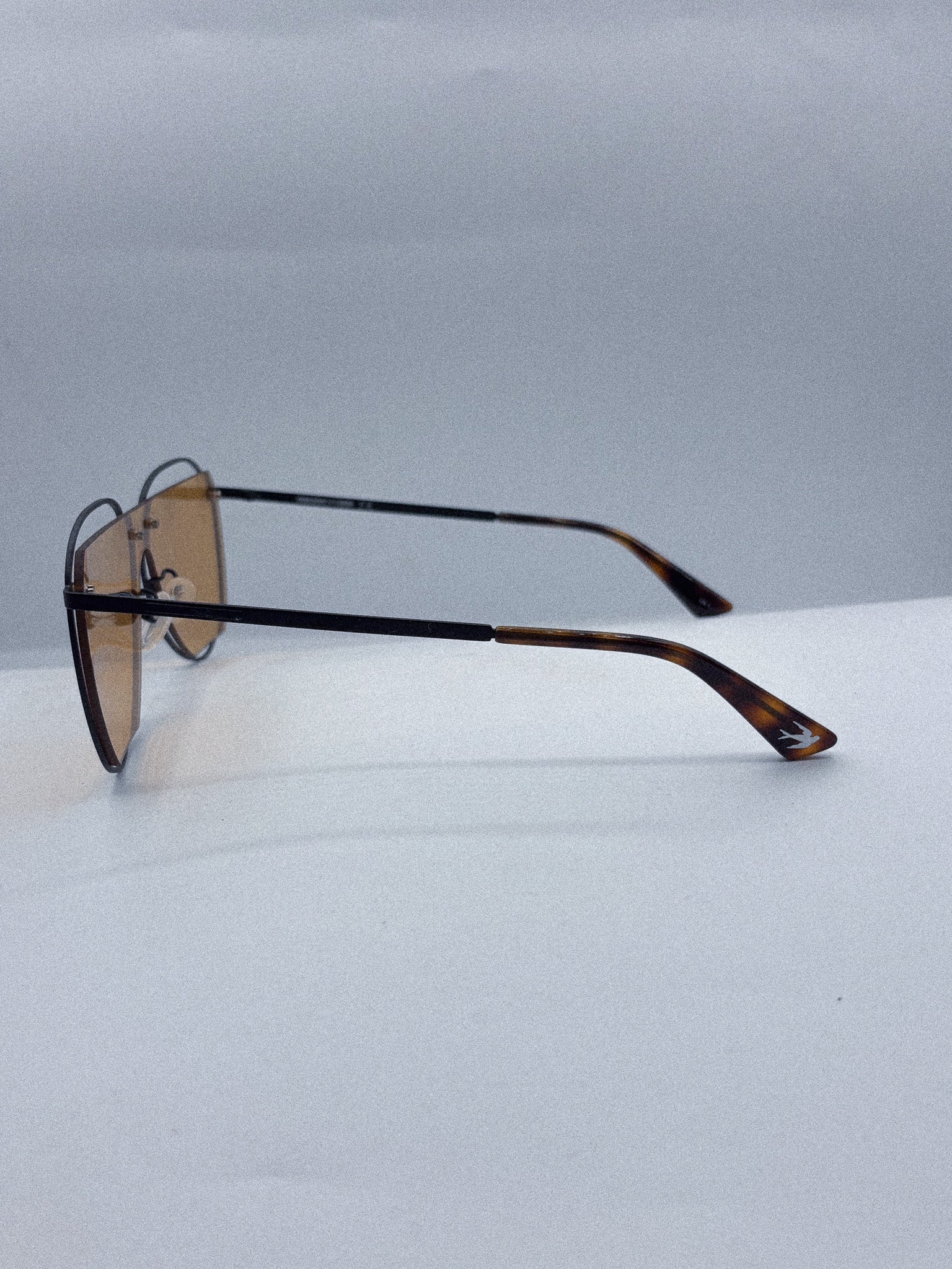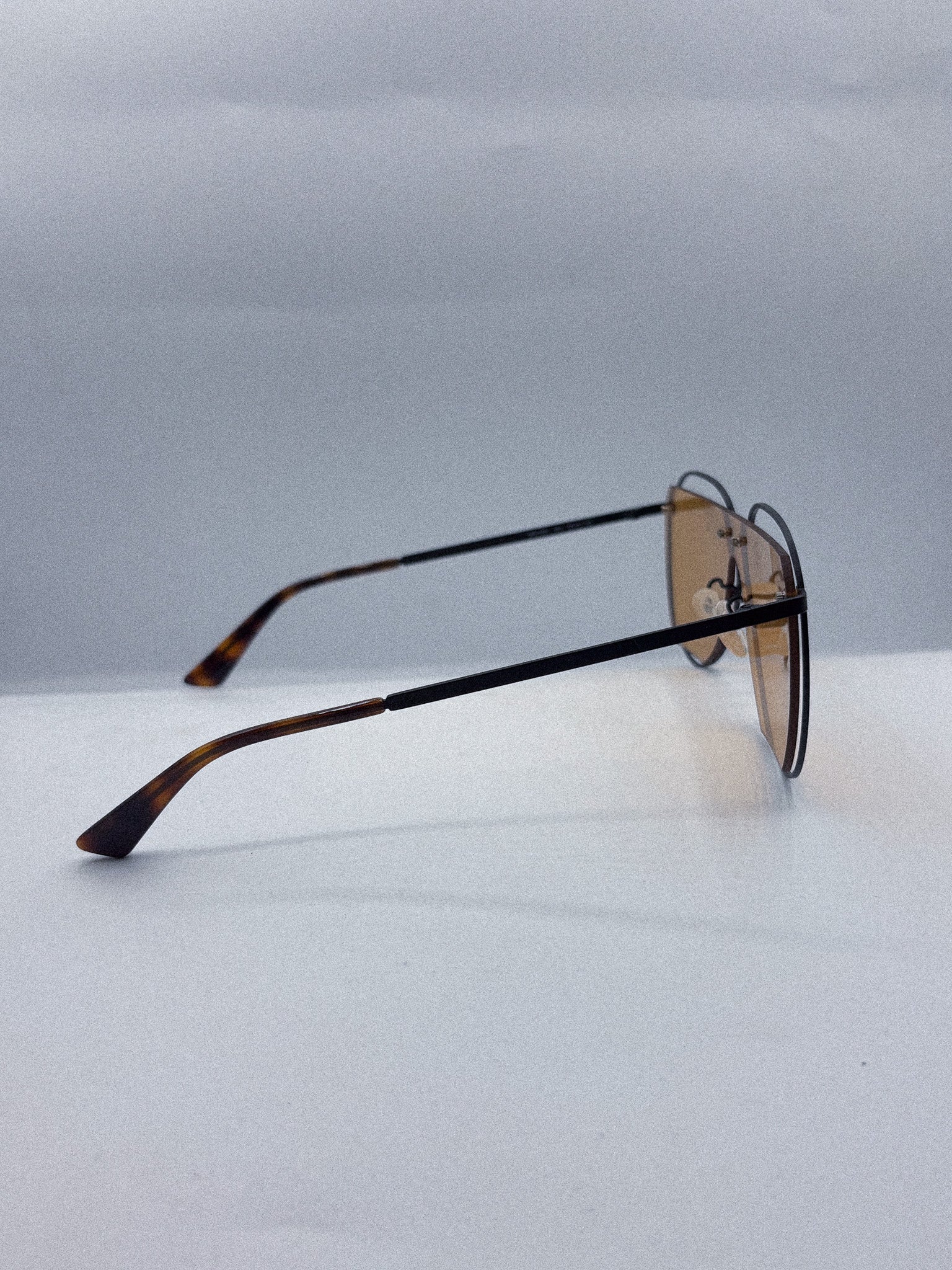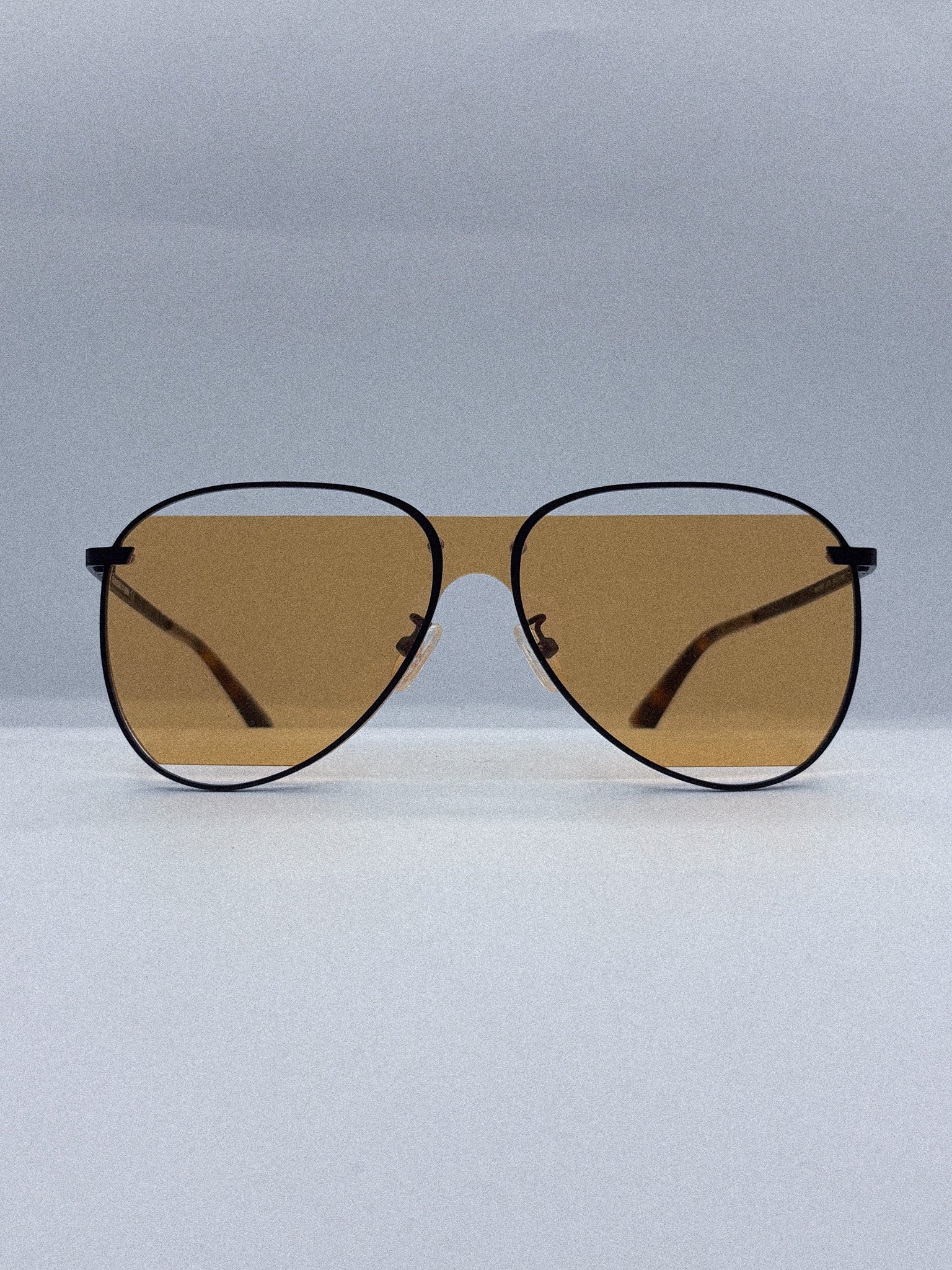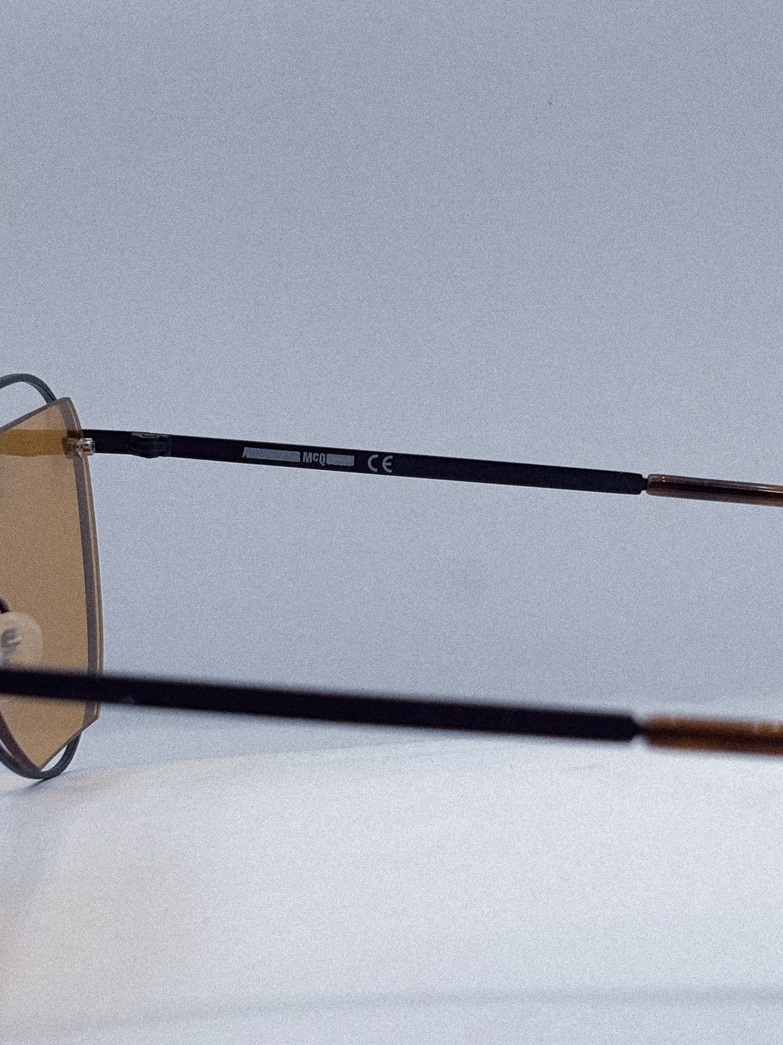 Refined yet bold, these Alexander McQueen aviators feature a minimalist black metal frame contrasted with warm amber lenses. The oversized silhouette channels effortless confidence, bridging luxury with a subtle avant-garde twist. Designed with comfort in mind, the lightweight build and adjustable nose pads make them as wearable as they are striking.