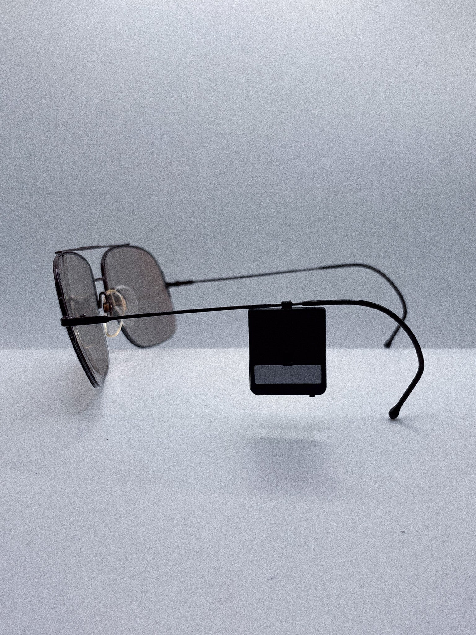 These 1980s Safilo aviators embody Italian refinement with a subtle nod to the era’s effortless cool. The fine wire frame carries a sense of precision and lightness, while the softly tinted black lenses create a moody, cinematic presence.