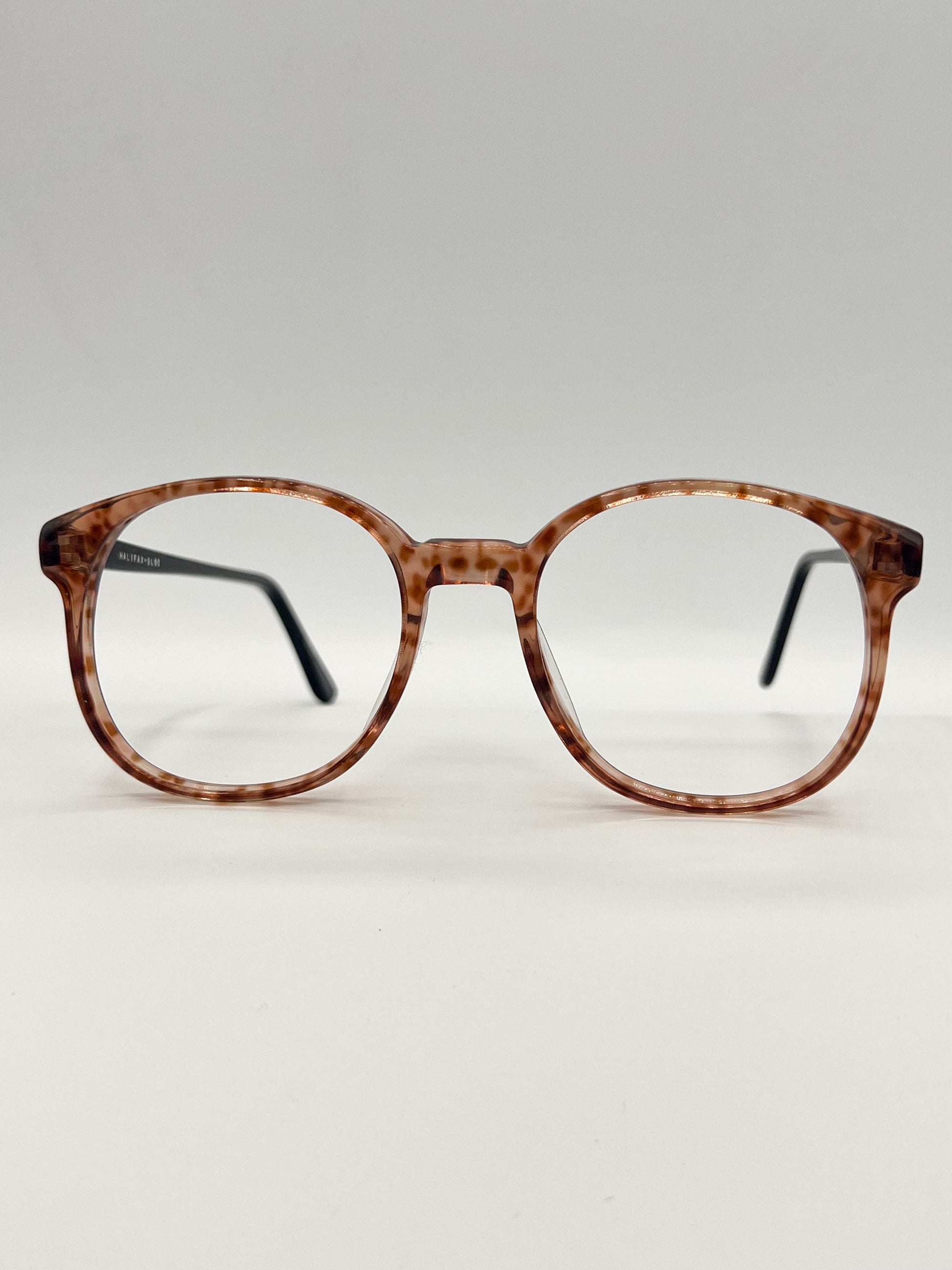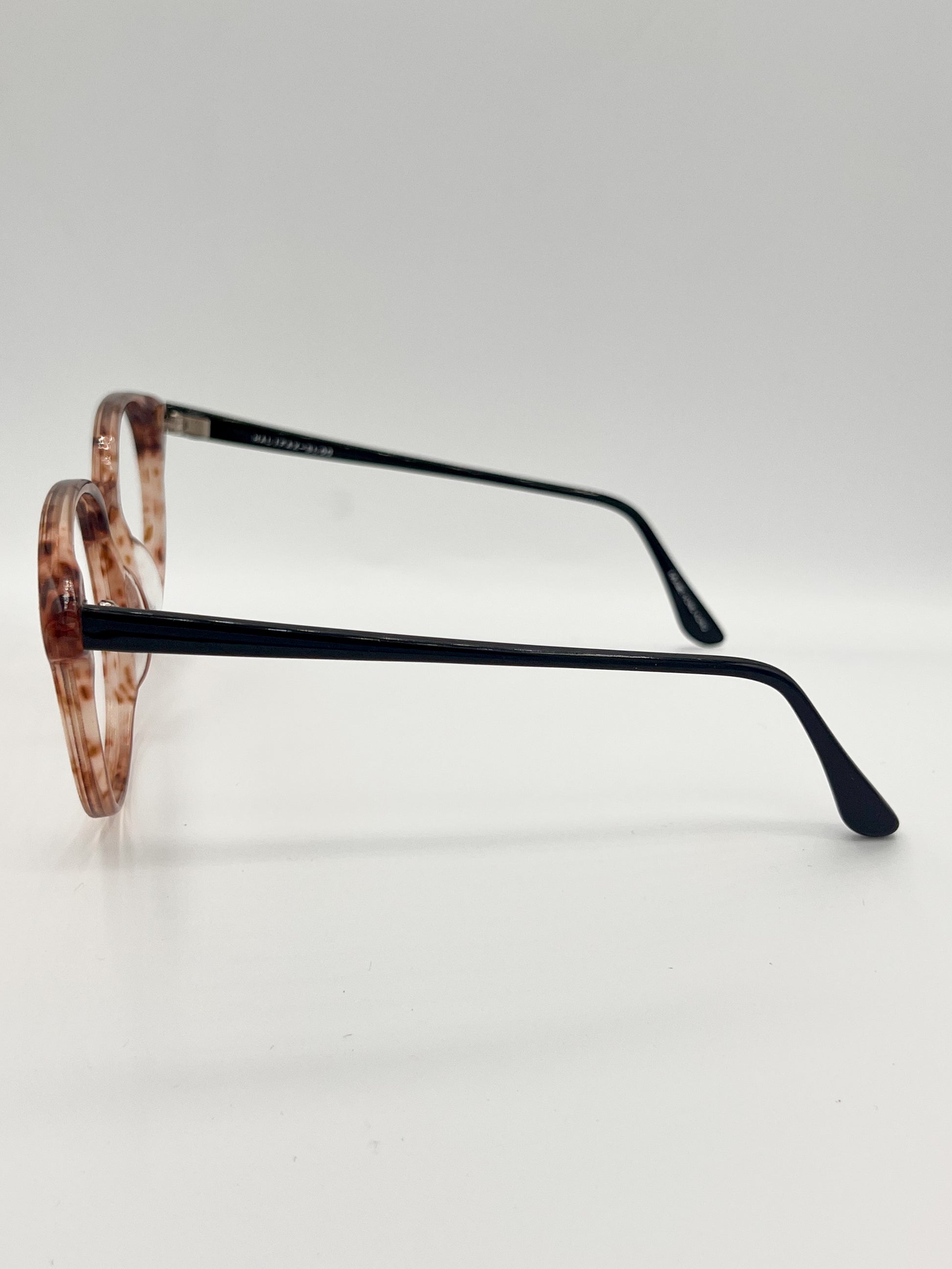 Made in Italy in the 1980s. Round frame with pronounced corner, acetate frame with a brown/tan pattern - similar to tortoise.